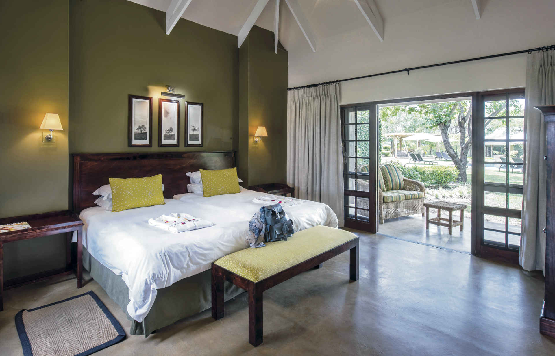 Die 31 großzügigen Zimmer liegen im weitläufigen Garten verstreut. Jedes Zimmer verfügt über ein Bad mit Innen- und Außendusche, außerdem Klimaanlage/Heizung, TV, Safe, Kühlschrank, Kaffee-/Teezubereiter und eine Terrasse. Außerdem gibt es 3 Familienzimmer mit 3 Betten, einer Schlafcouch und zusätzlicher Badewanne, jedoch ohne Außendusche.