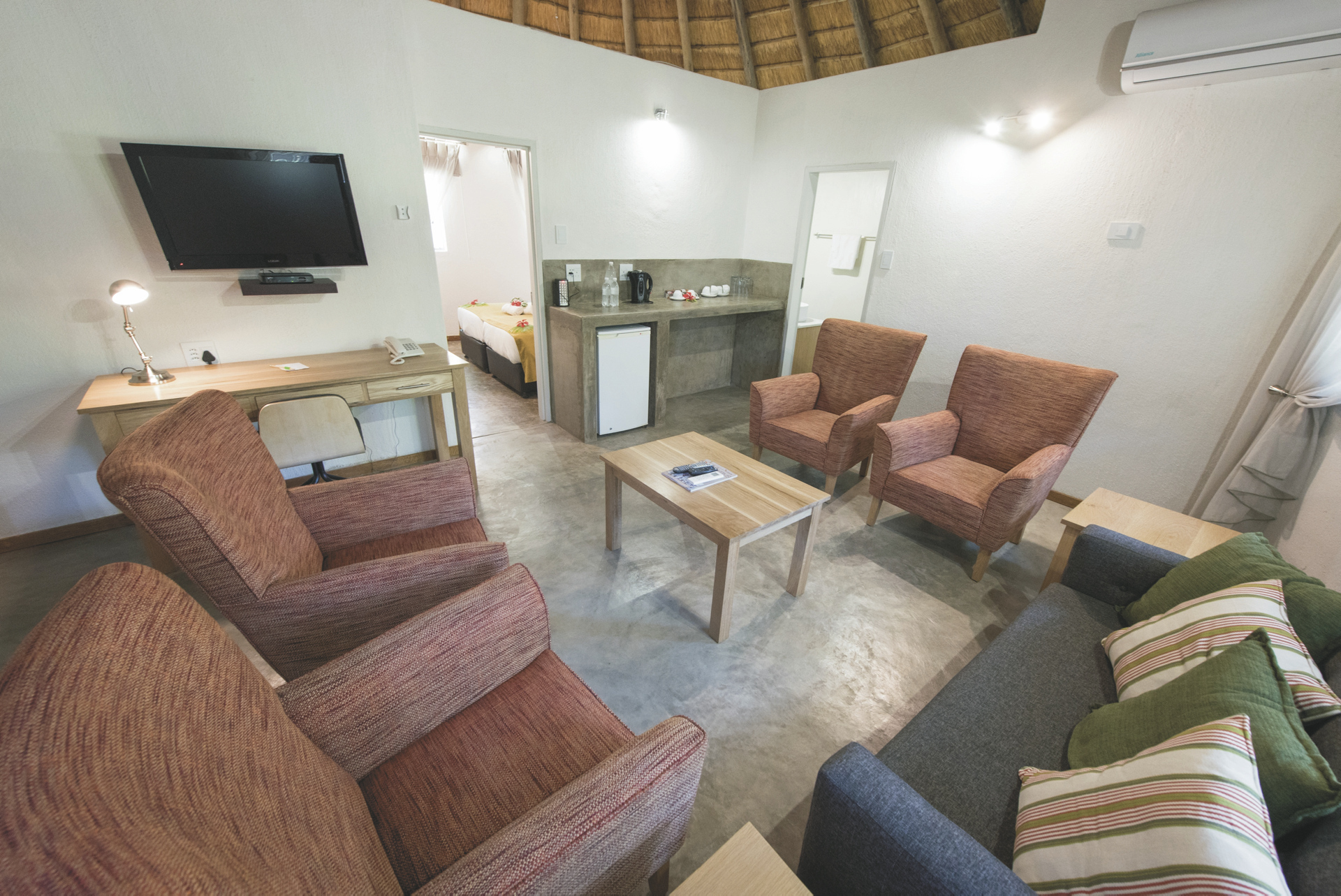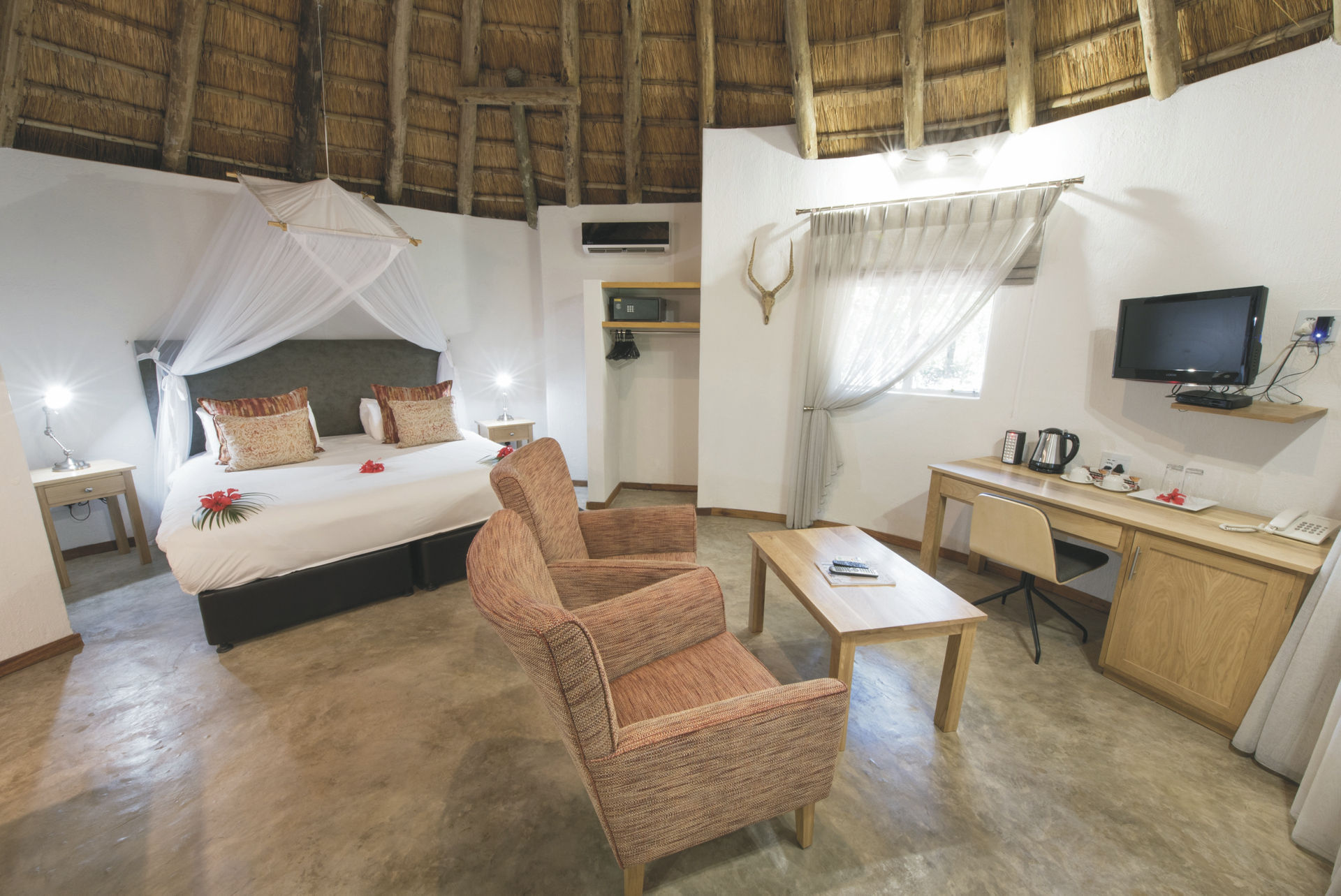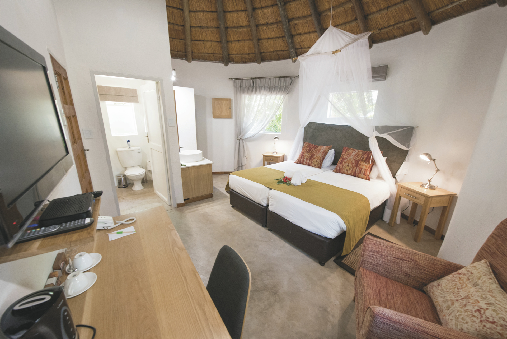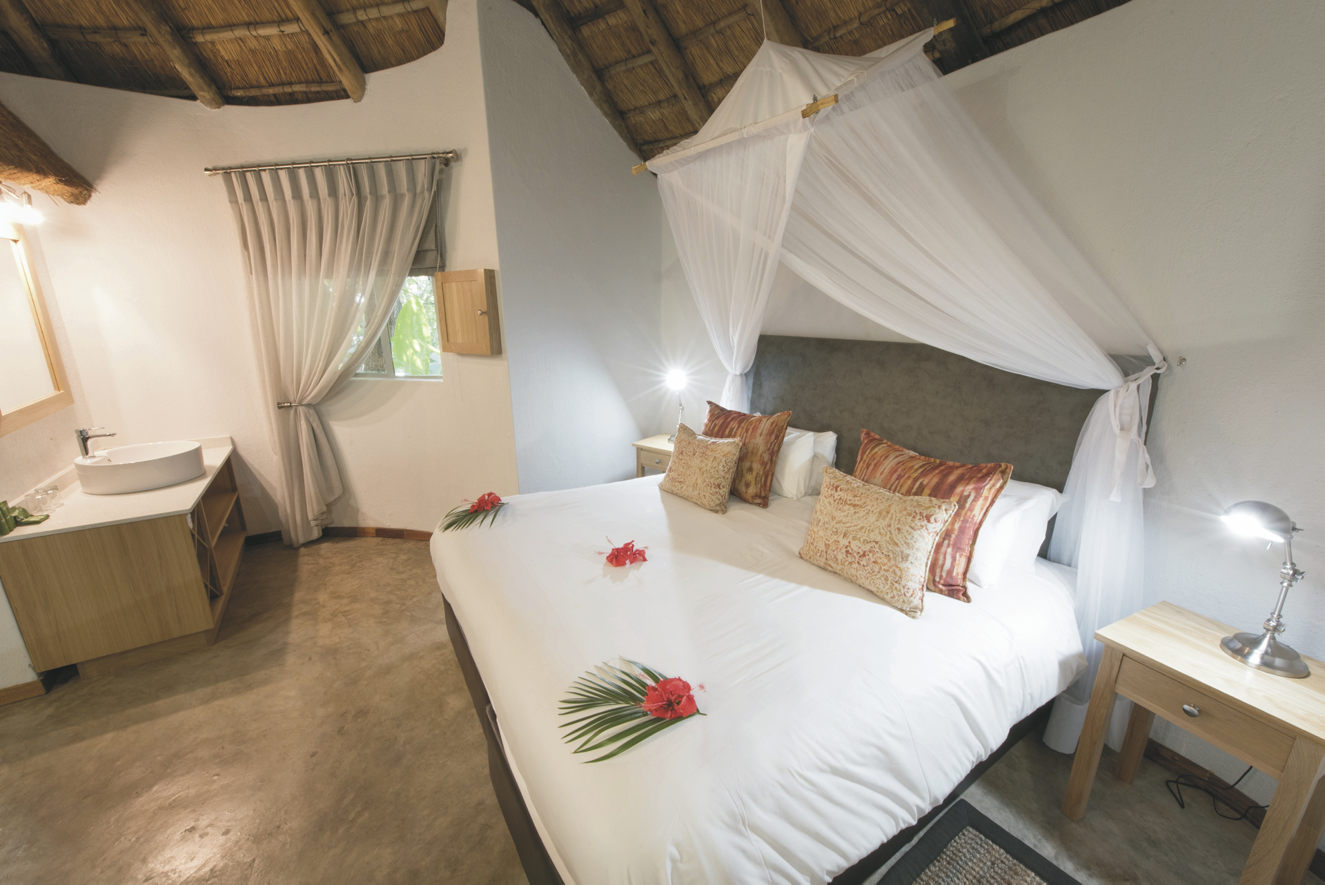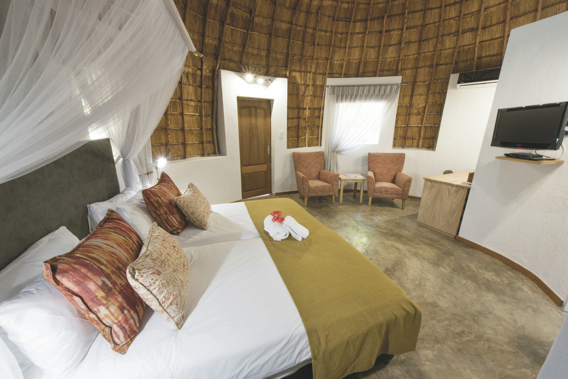 Die 31 frisch renovierten afrikanischen Rondavels mit Strohdach liegen verteilt in der wunderschönen Gartenanlage. Sie verfügen alle über ein eigenes Bad, Fön, Radio, Klimaanlage, Telefon, Moskitonetz, Kühlschrank, Tee-/Kaffeezubereiter, kostenfreies WLAN, TV und eine überdachte Veranda sowie einen eigenen Parkplatz. Die Luxus-Rondavels sind großzügiger. Die 4 Familien-Rondavels bieten Platz mit 2 Schlafzimmern, einer gemütlichen Lounge mit Kitchenette und einem gemeinsamen Badezimmer Platz für bis zu 4 Personen.