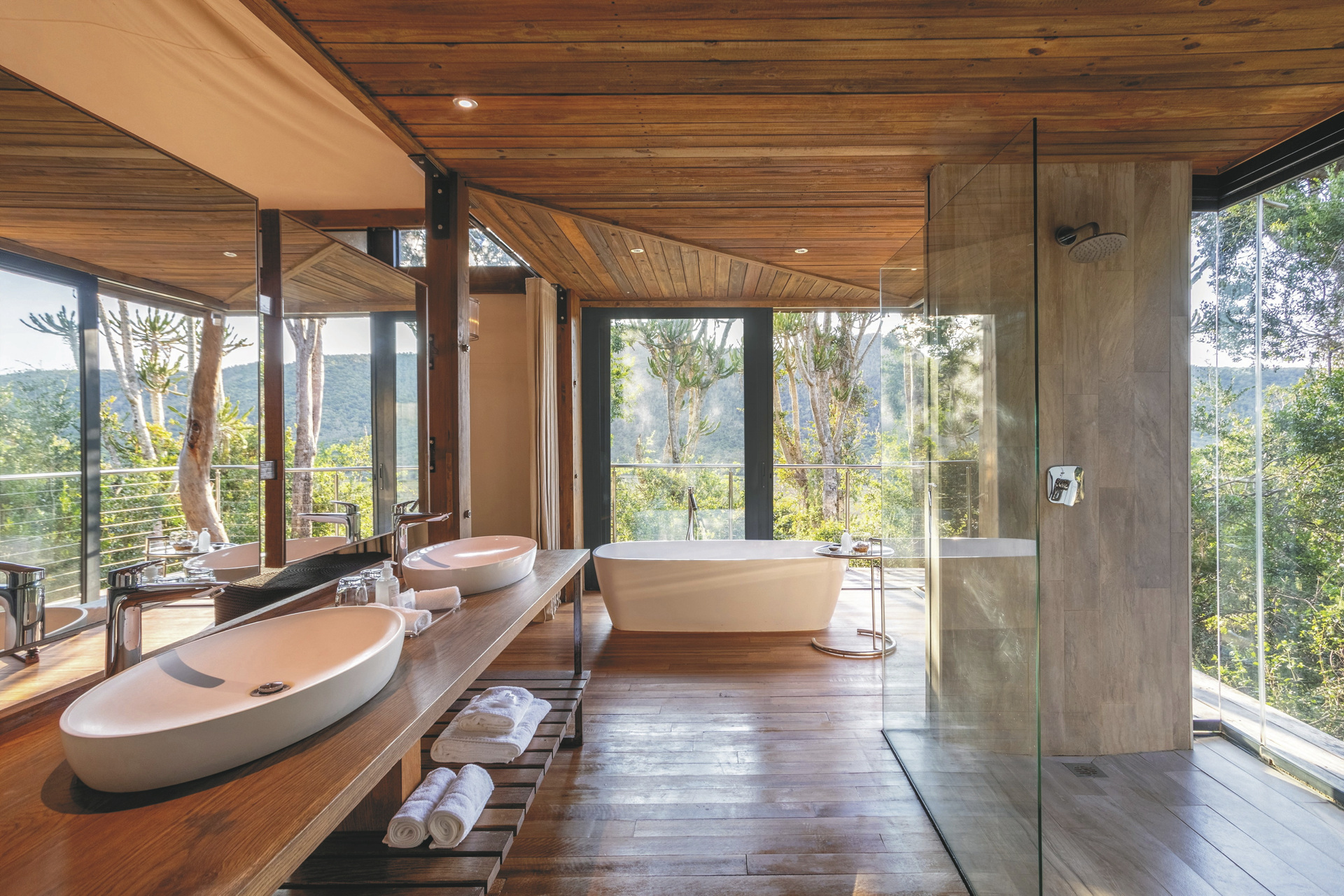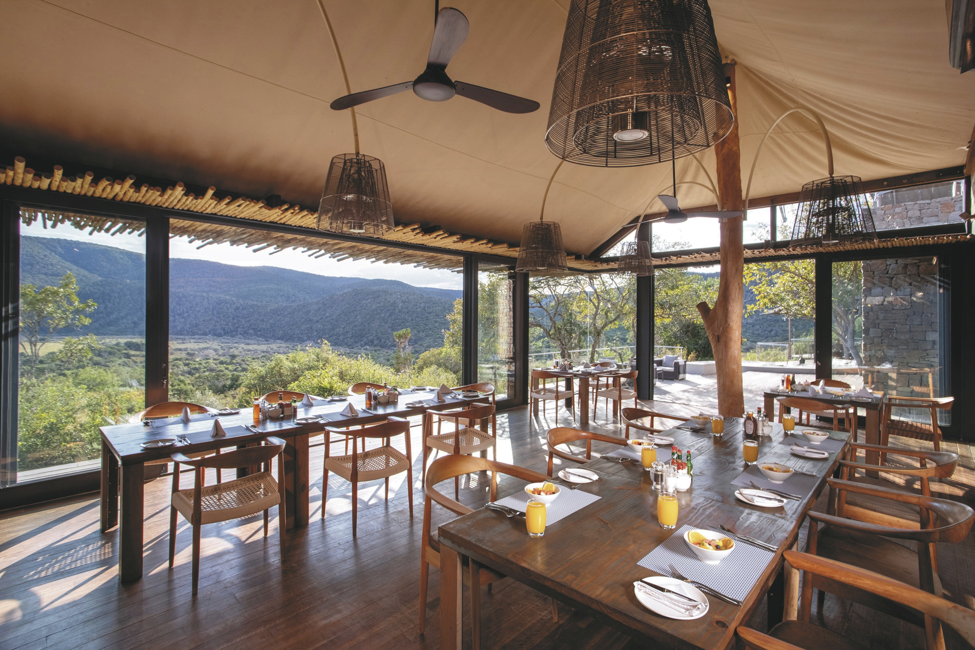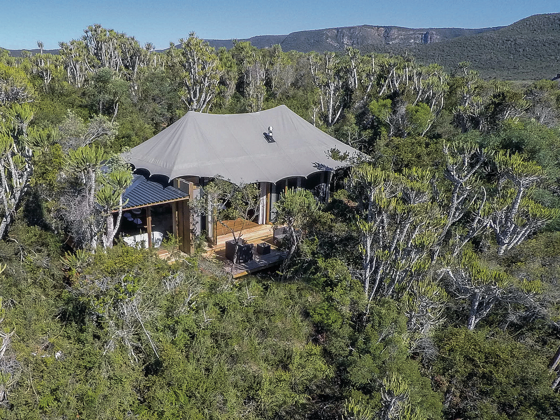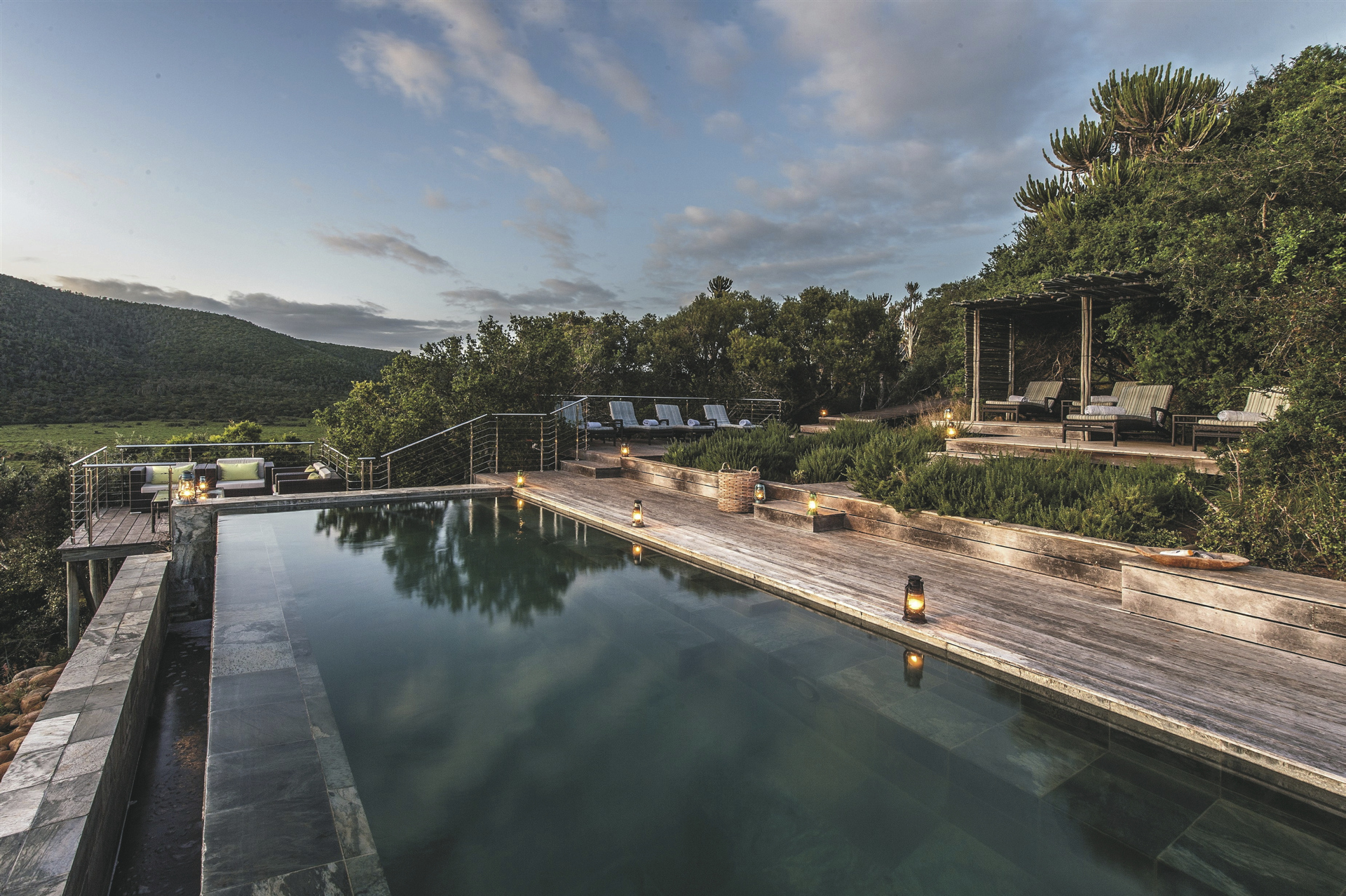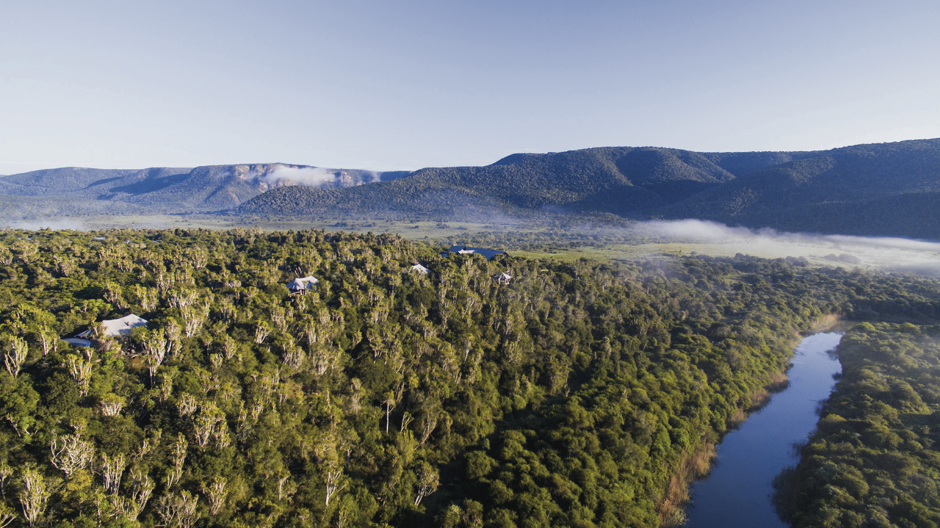 Das Camp bietet höchsten Luxus und Komfort im unberührten Busch. Durch den Blick von der Terrasse auf den Bushman's River bekommt man den Eindruck, dass die Zeit stehen geblieben ist, seit die Siedler im Jahr 1820 mit ihren Wagen den Fluss überquert und ihren Fuß in dieses abgelegene Tal gesetzt haben.