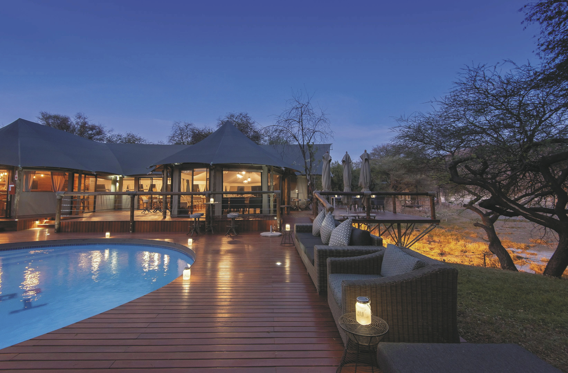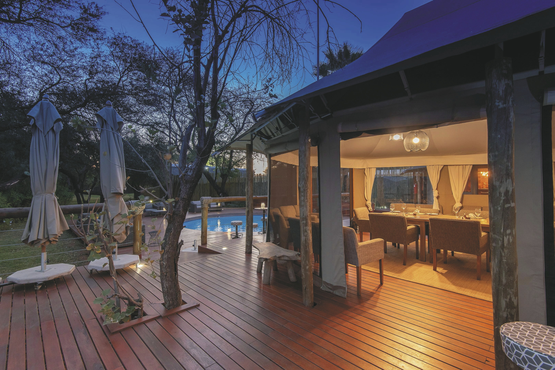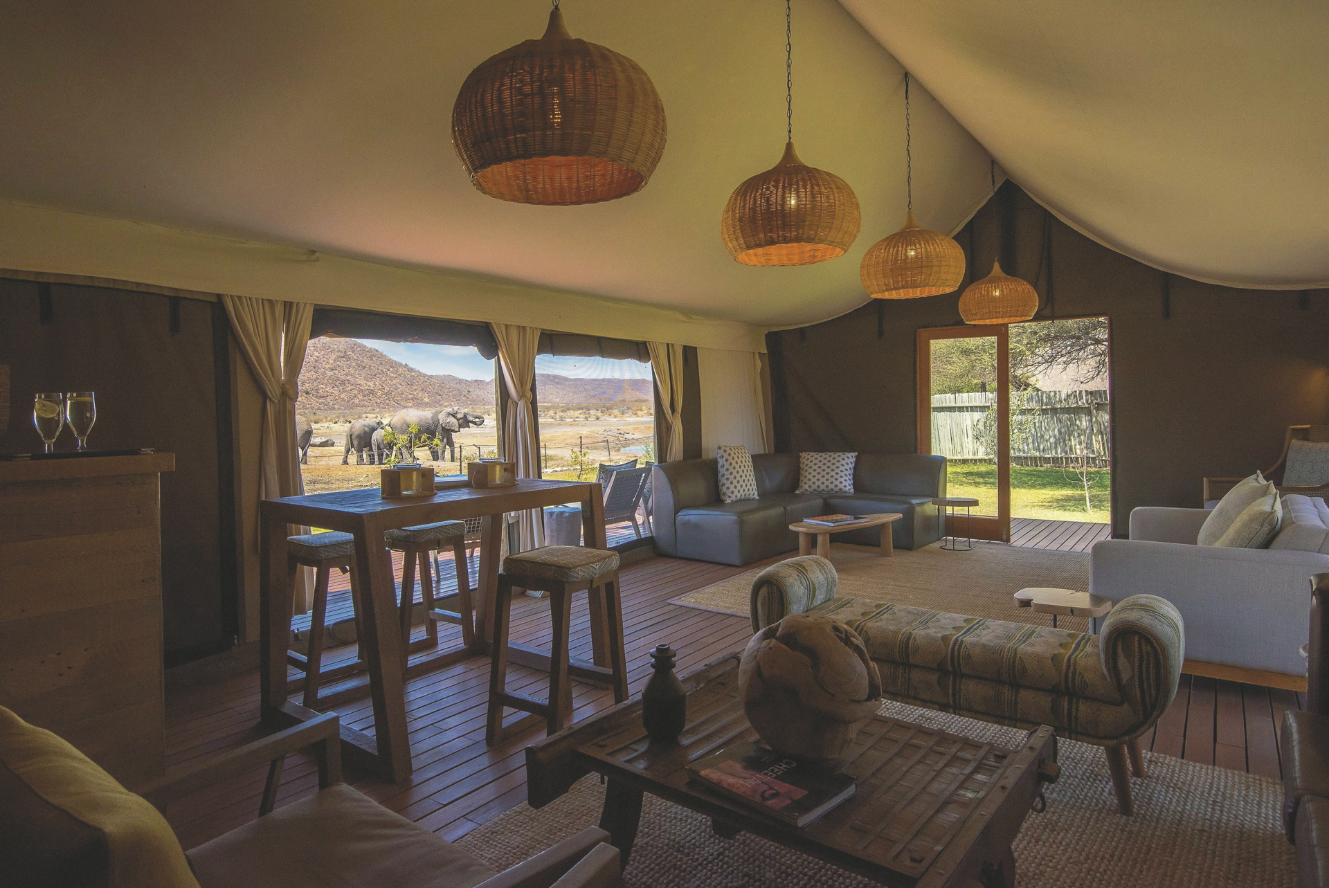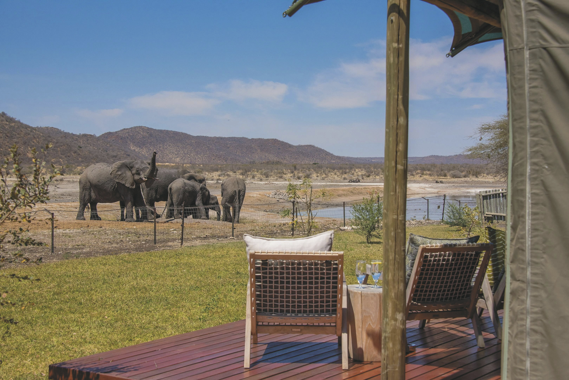 Komfort und Luxus mit Busch-Feeling an einem großen, natürlichen Wasserloch.