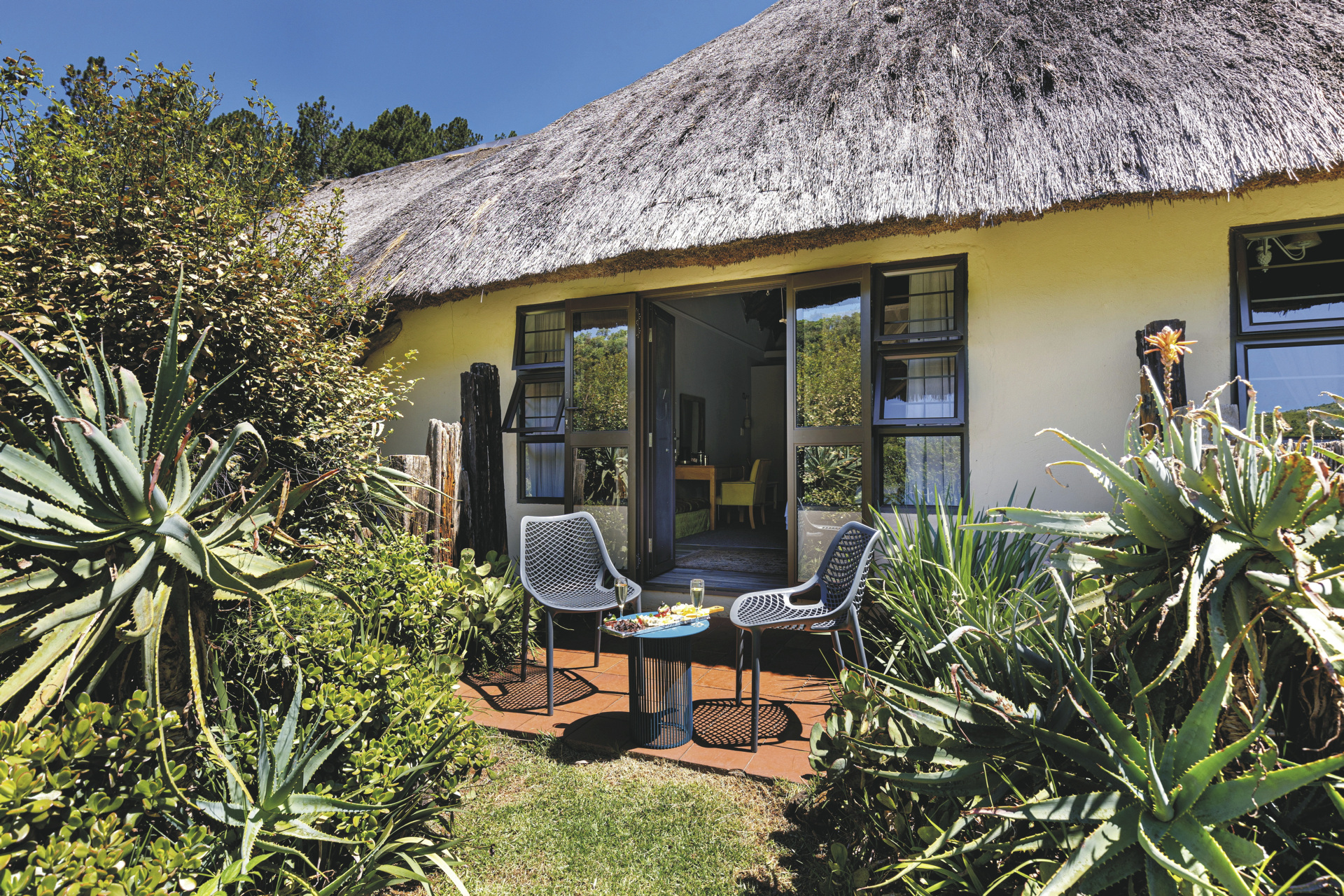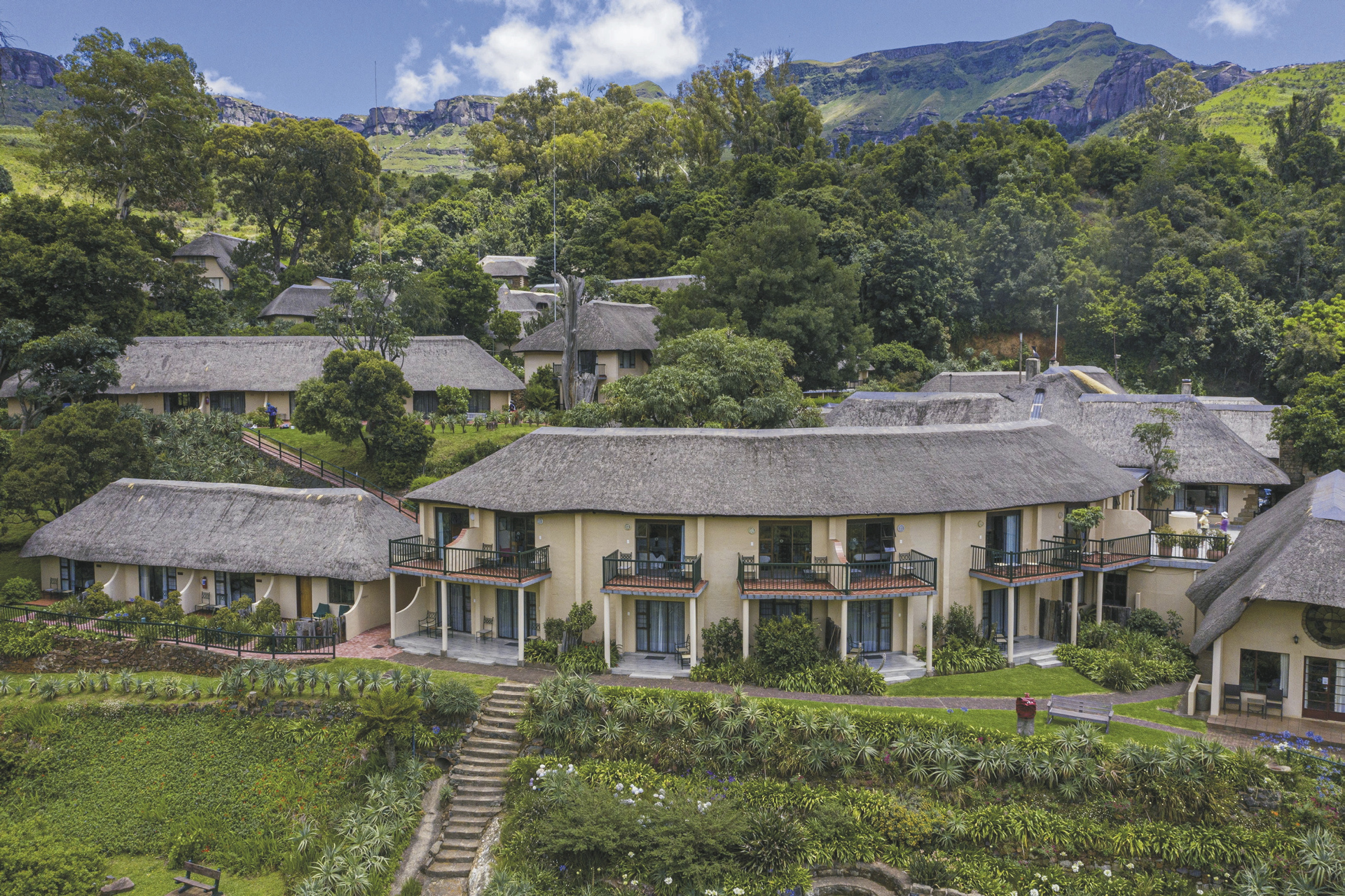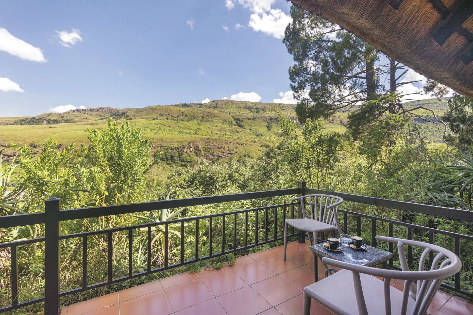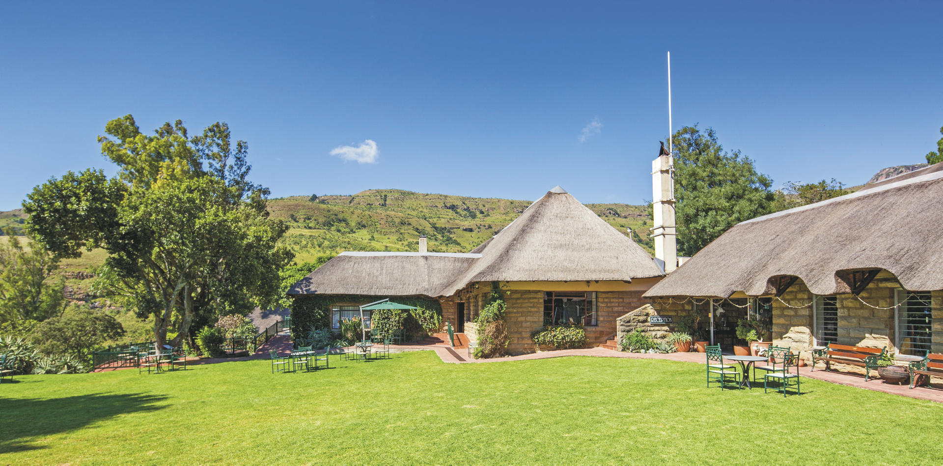 Das Familienresort wurde benannt nach der berüchtigten Kannibalenhöhle, die nicht weit entfernt liegt und mit ihren uralten Felszeichnungen der Buschmänner besichtigt werden kann. Auf dem weitläufigen Gelände liegen die Unterkünfte und der Spa-Bereich verstreut im Garten. Im zentralen Haupthaus erwartet Sie das Restaurant mit einer großen Terrasse, eine gemütliche Lounge mit Kamin - die Abende in den Bergen können frisch sein. Außerdem die sehr originelle Höhlen-Bar und der Weinkeller. Wenn Sie am Nachmittag von einer Wanderung zurückkommen steht ein kleiner Snack, Tee und Kaffee im Haupthaus bereit. Im Außenbereich gibt es eine Boma, in der bei gutem Wetter das Abendessen eingenommen werden kann, eine Tennisanlage, sowie ein großzügiger Pool mit Kinderbecken und Rutschen. Für die kleinen Gäste steht zusätzlich noch ein Spielplatz sowie Kinderspiel- und Speisezimmer zur Verfügung. Optionale Aktivitäten: Reitausflüge, geführte Wanderungen, auch zu den Buschmann-Malereien, markierte Wanderwege. An der Infotafel, am Aktivitäten-Schalter können Sie sich täglich für eine der geführten Wandertouren eintragen, über Tag können Sie hier auch Getränke erwerben.