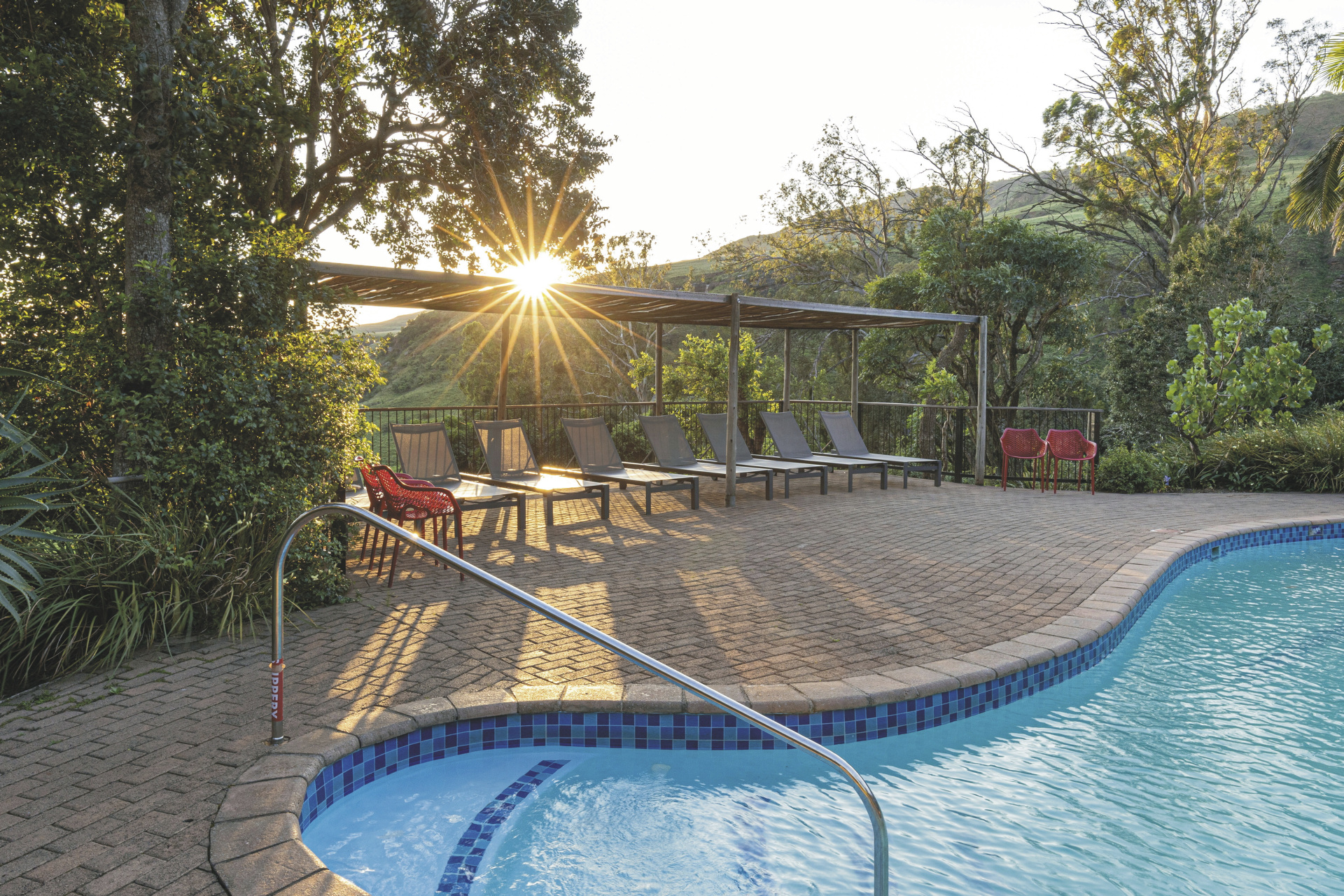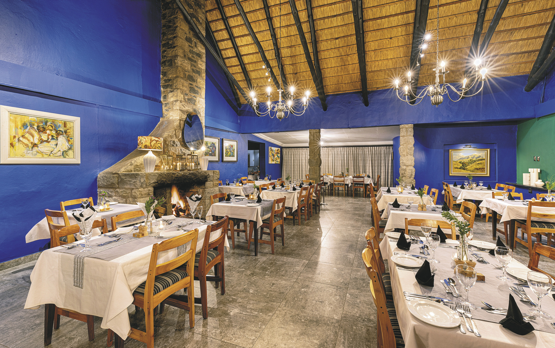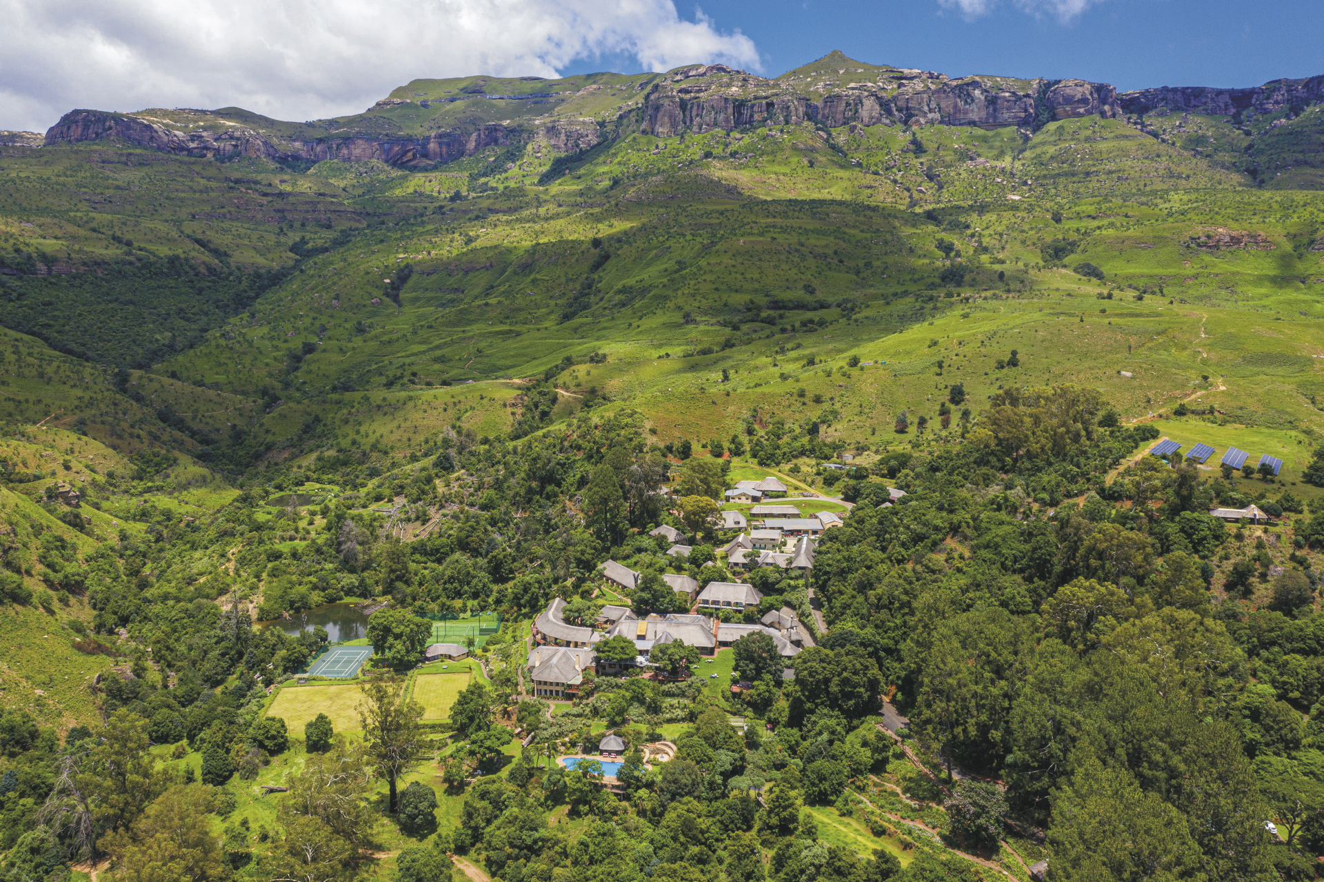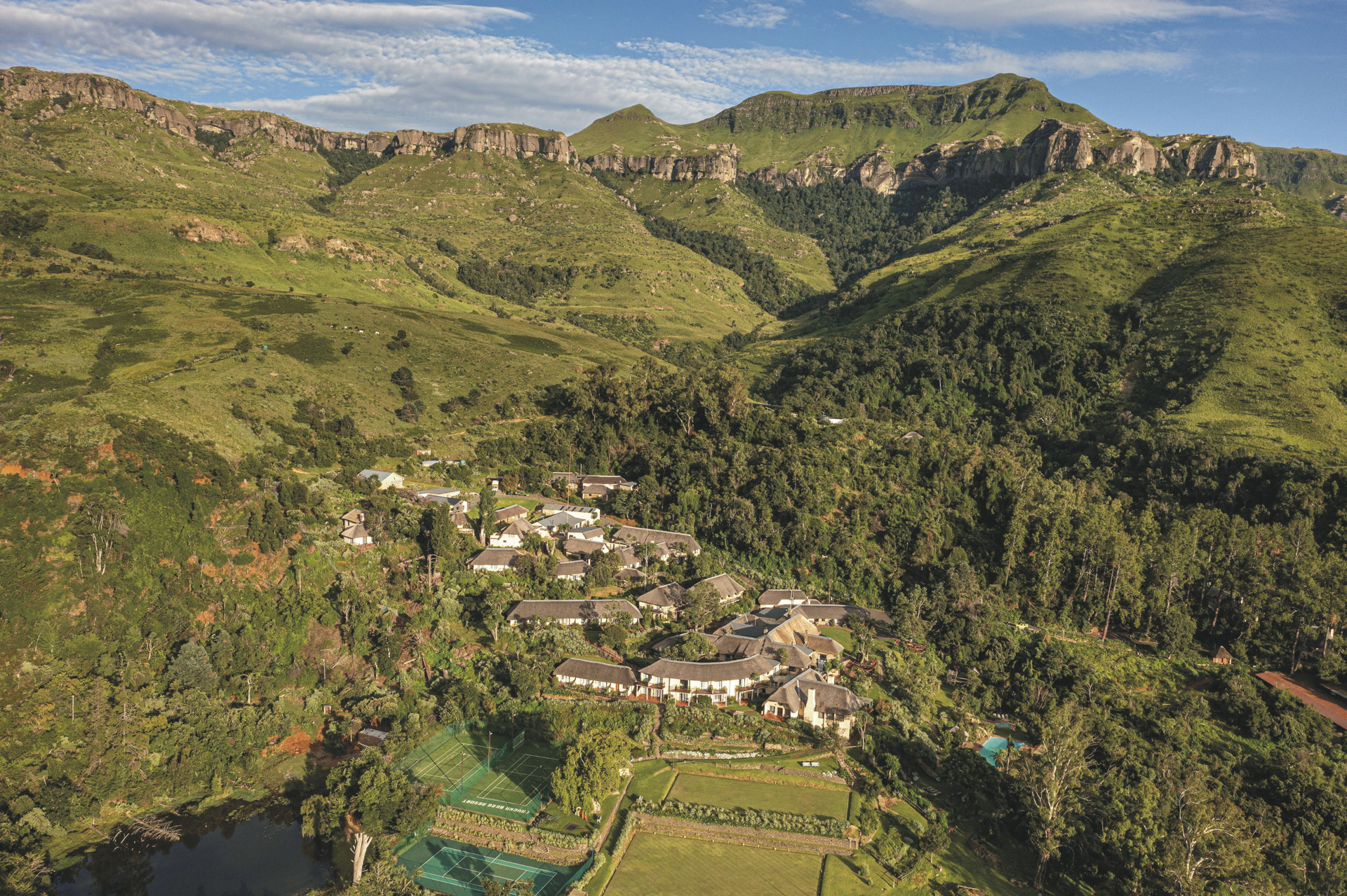Das Familienresort wurde benannt nach der berüchtigten Kannibalenhöhle, die nicht weit entfernt liegt und mit ihren uralten Felszeichnungen der Buschmänner besichtigt werden kann. Auf dem weitläufigen Gelände liegen die Unterkünfte und der Spa-Bereich verstreut im Garten. Im zentralen Haupthaus erwartet Sie das Restaurant mit einer großen Terrasse, eine gemütliche Lounge mit Kamin - die Abende in den Bergen können frisch sein. Außerdem die sehr originelle Höhlen-Bar und der Weinkeller. Wenn Sie am Nachmittag von einer Wanderung zurückkommen steht ein kleiner Snack, Tee und Kaffee im Haupthaus bereit. Im Außenbereich gibt es eine Boma, in der bei gutem Wetter das Abendessen eingenommen werden kann, eine Tennisanlage, sowie ein großzügiger Pool mit Kinderbecken und Rutschen. Für die kleinen Gäste steht zusätzlich noch ein Spielplatz sowie Kinderspiel- und Speisezimmer zur Verfügung. Optionale Aktivitäten: Reitausflüge, geführte Wanderungen, auch zu den Buschmann-Malereien, markierte Wanderwege. An der Infotafel, am Aktivitäten-Schalter können Sie sich täglich für eine der geführten Wandertouren eintragen, über Tag können Sie hier auch Getränke erwerben.