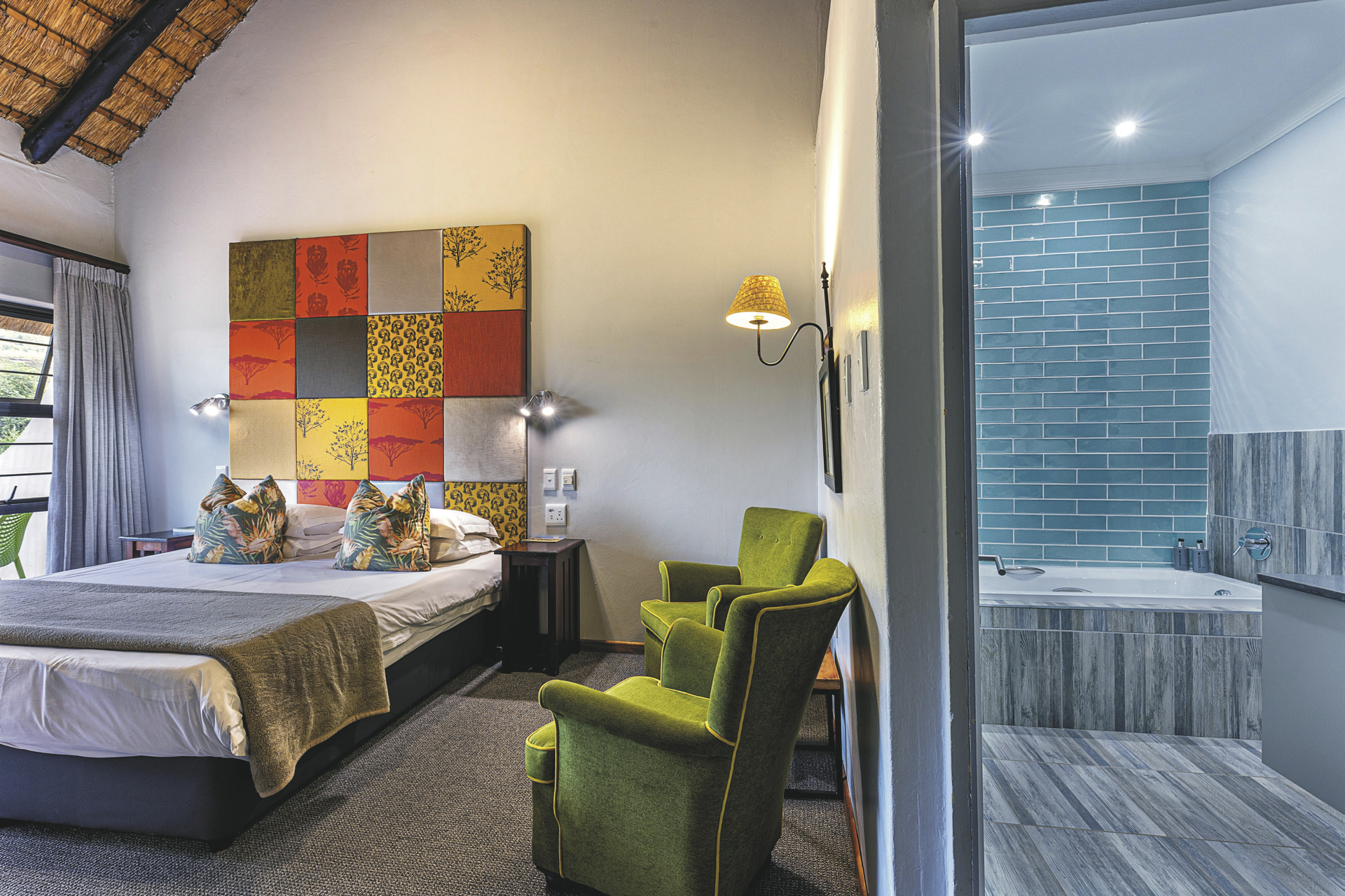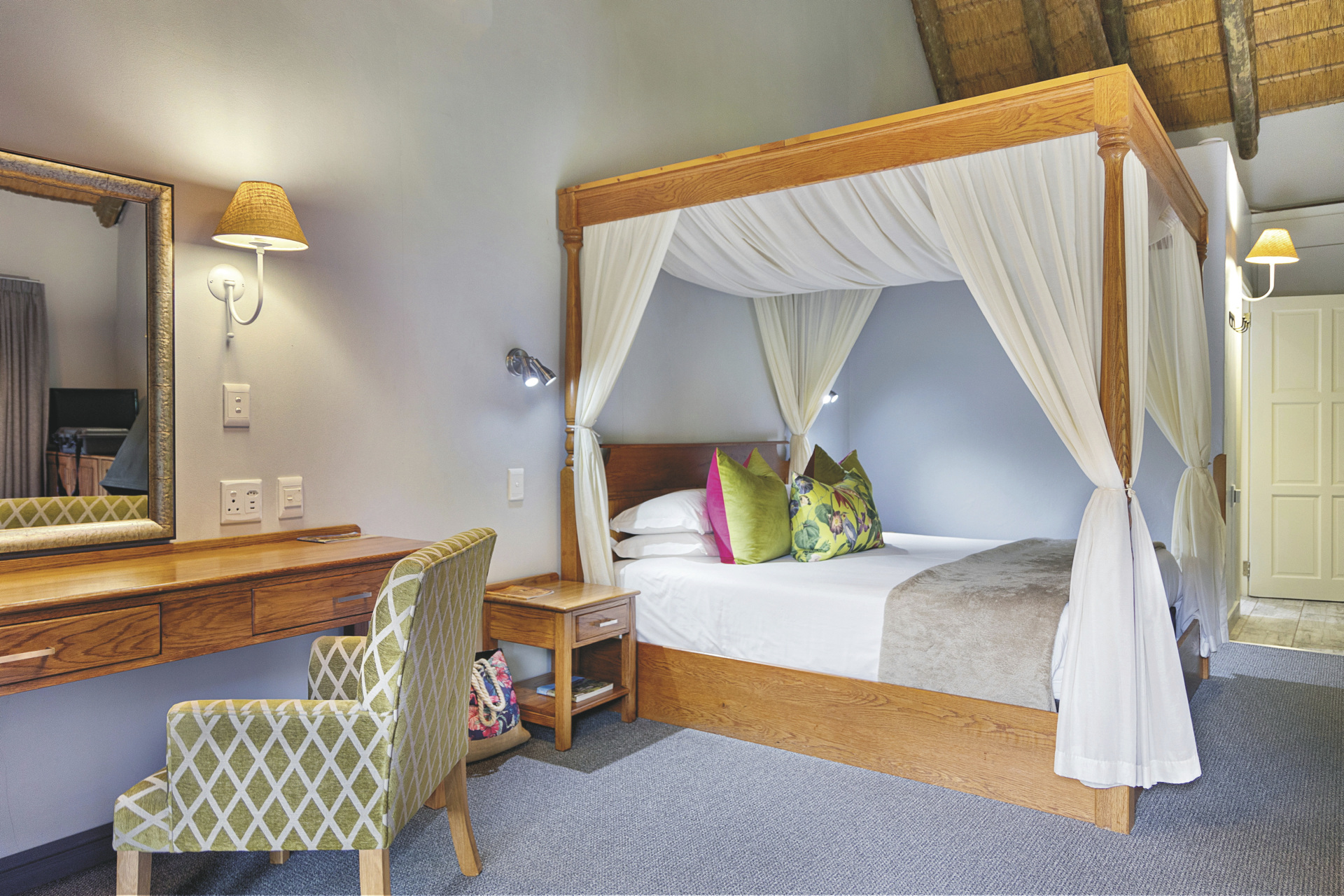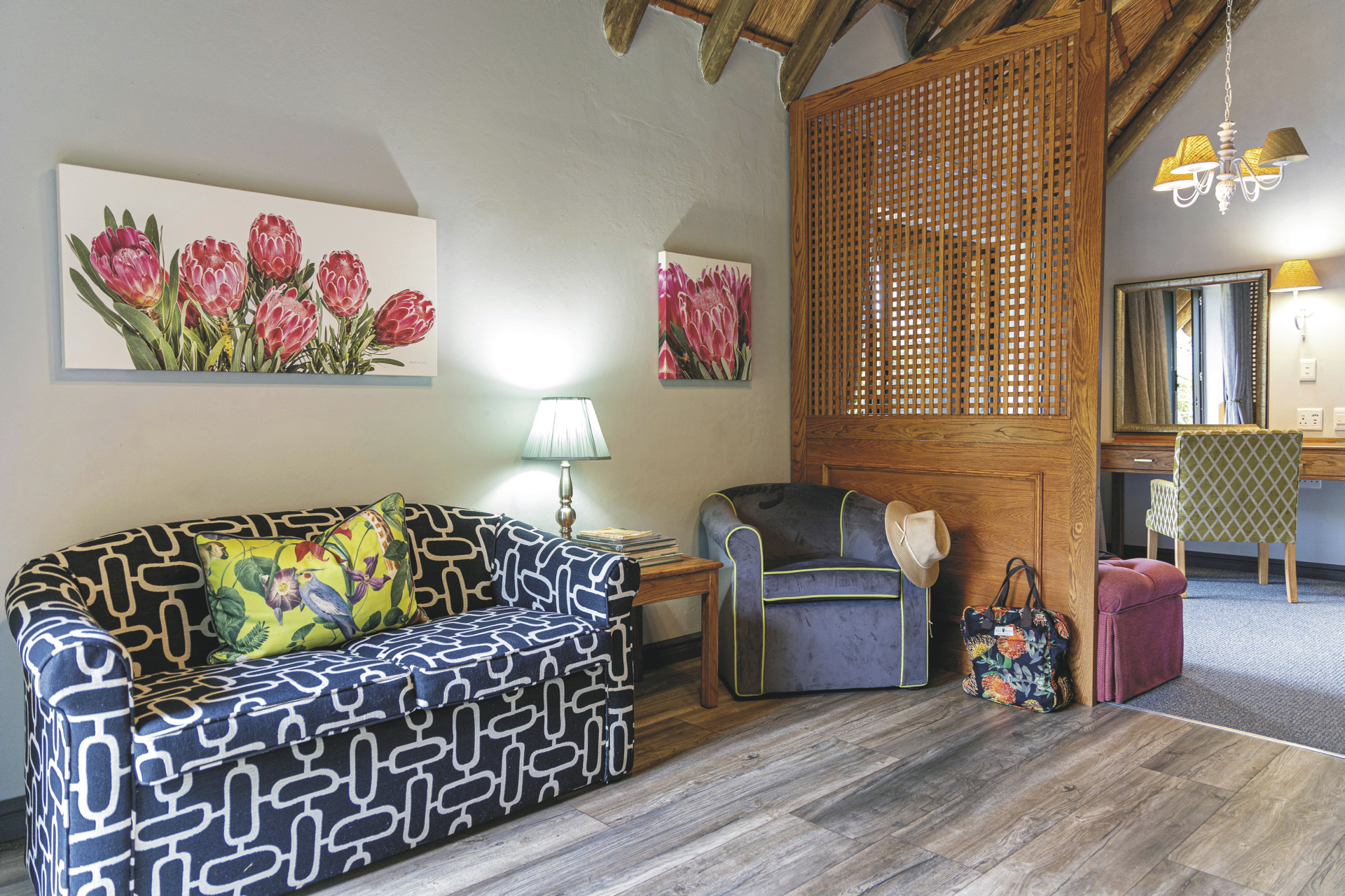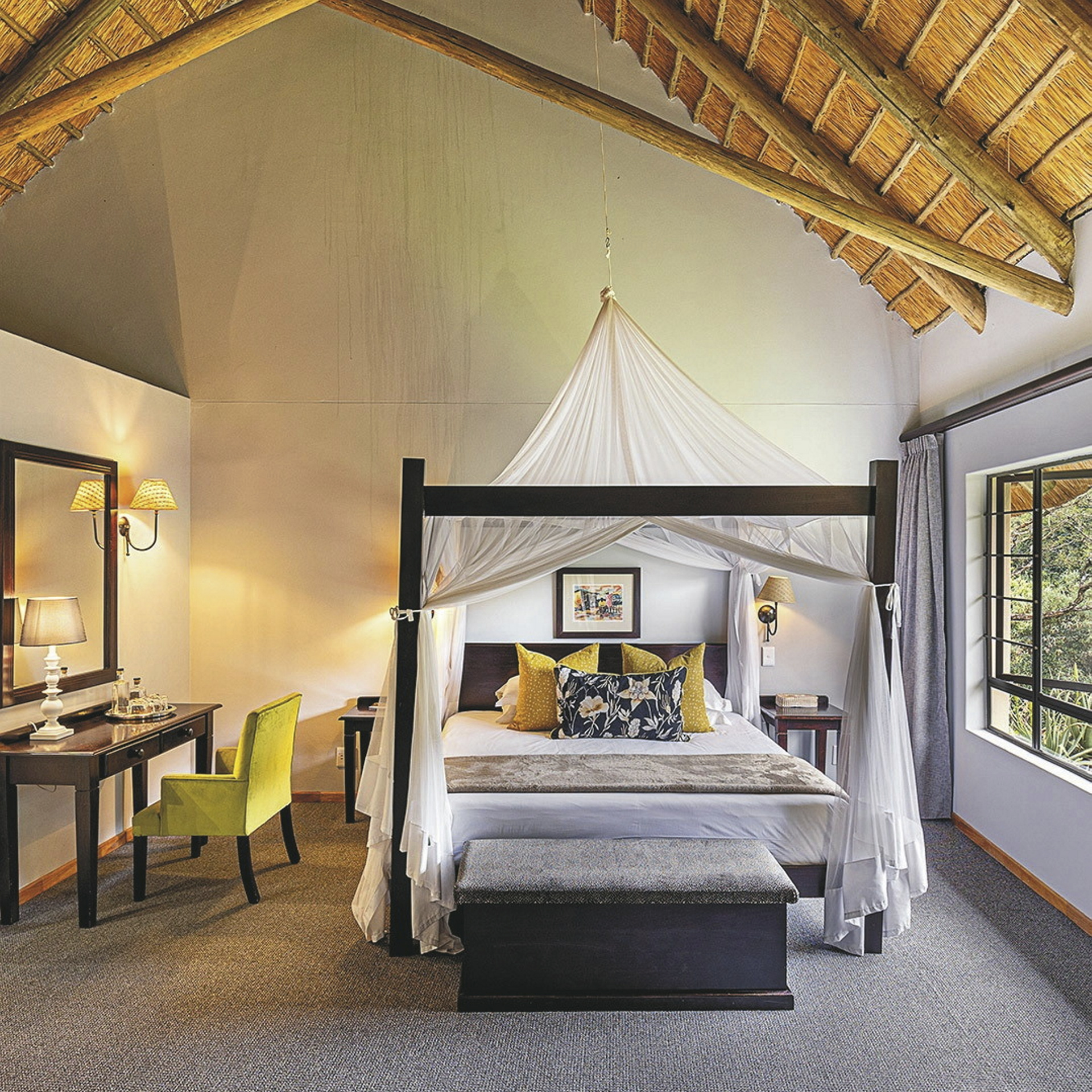 Es gibt insgesamt 55 behagliche Zimmer und Suiten in 3 Kategorien. Die Standardzimmer befinden sich im Garten, die Superior-Zimmer blicken auf einen wunderschönen Farnwald. Jedes der strohgedeckten Zimmer ist hell und modern ausgestattet und verfügt über ein eigenes Bad, Heizung, Ventilator, Tee-/Kaffeezubereiter, Terrasse oder Balkon. Die Superior-Zimmer haben zusätzlich ein Moskitonetz, eine Minibar und TV. Die geräumigen Suiten sind außerdem mit einem Kamin ausgestattet. Für Familien stehen in der Dreibettzimmer und Zimmer mit Verbindungstür zur Verfügung, aber auch Suiten mit 2 Schlaf- und Badezimmern sowie einer gemeinsamen Lounge.