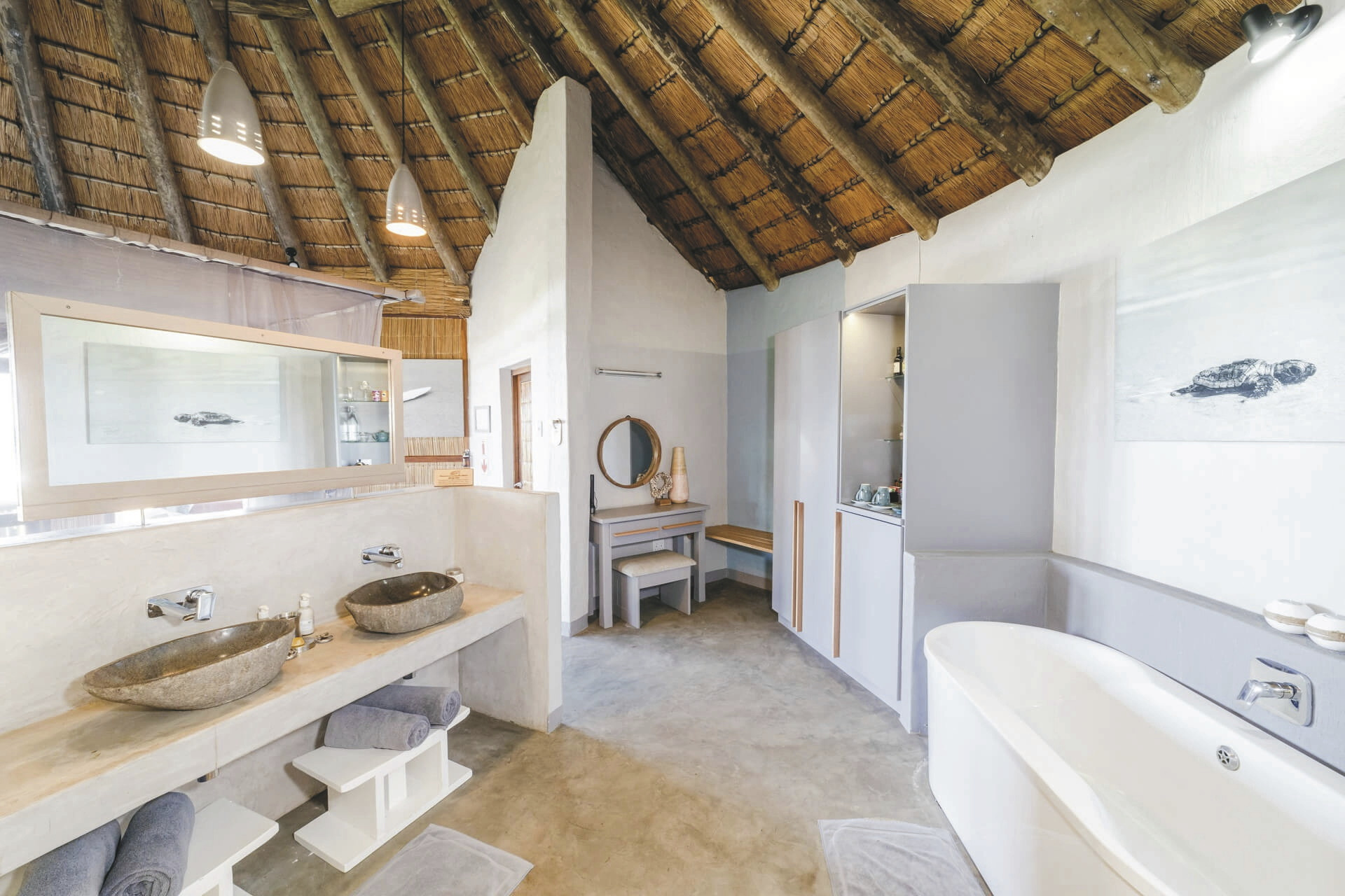 Hier erwartet Sie eine Lodge mit typischen Strand-Barfuß-Ambiente, komplett aus Holz gebaut, komfortabel aber ungezwungen. Im Hauptbereich reihen sich kleinere Rundbauten aneinander, durch eine große Terrasse verbunden beherbergen sie die WLAN-Lounge, eine Bar und das Restaurant. Über Holzstege erreicht man die Zimmer und weiteren Einrichtungen wie den Spabereich, die Feuerstelle, und das Marine-Center, aber auch die beiden Pools. Wer sein Sonnenbad lieber nicht im Sand liegend verbringen möchte findet sicherlich eine freie Liege oder auch ein Schattenplätzchen auf der große Sonnenterrasse am Meer. Einmalig ist auch das Open-Air Wohnzimmer am Pool mit gemütlichen Sesseln und Hängematten, ein Platz zum Wohnfühlen und Abhängen - im wahrsten Sinne! Eingeschlossene Aktivitäten: begleitete Kajaktour und Schnorchelgang, geführter Waldspaziergang und Schildkröten-Spaziergang (November - Februar), Kulturtour ins nahegelegene Dorf, Ausflug zum Sonnenuntergang zum Lake Sibaya. Optionale Aktivitäten: PADI Tauchkurs, Tauchen, nächtliche Exkursion zur Eiablage der Meeresschildkröten (November - Februar), Ocean-Safari.