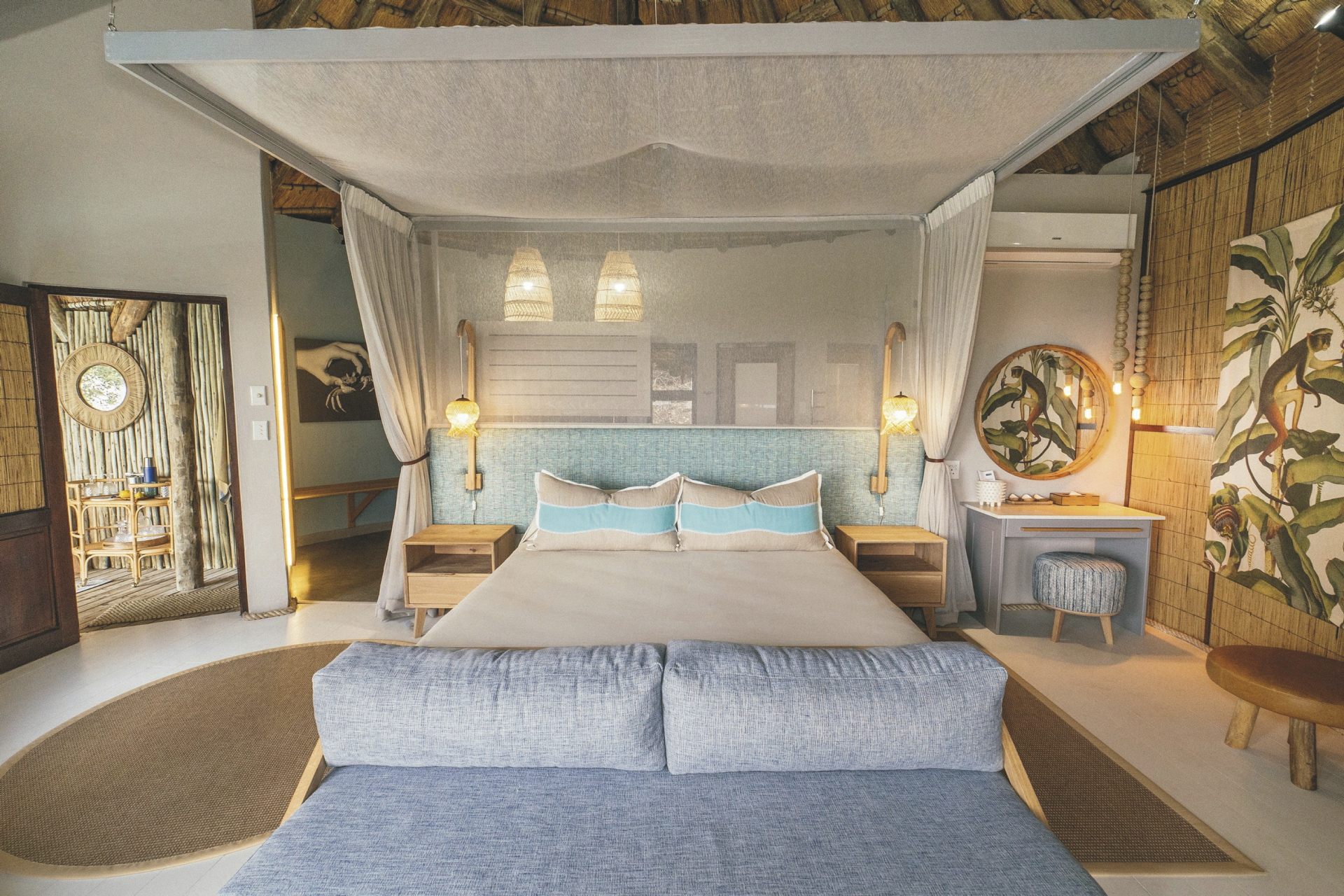 Es gibt 12 gemütliche Holzchalets, die eingebettet im Küstenwald liegen. Jedes mit eigenem offenem Bad, Balkon, Fön, Telefon, Minibar, Ventilator, Klimaanlage, Moskitonetz und Tee-/Kaffeezubereiter. 2 Chalets sind mit 2 Schlaf- und Badezimmern bestens für Familien geeignet. Die 3 Meerblick-Chalets (eingeschränkter Meerblick) liegen etwas erhöht an einem Hügel. Die 2 Deluxe-Chalets liegen noch höher und überblicken somit die komplette Vegetation und haben freie Sicht auf das Meer, außerdem zusätzlich eine Außendusche und auf der Terrasse einen privaten Plunge Pool. Ein Deluxe-Chalet ist ebenfalls für Familien geeignet.