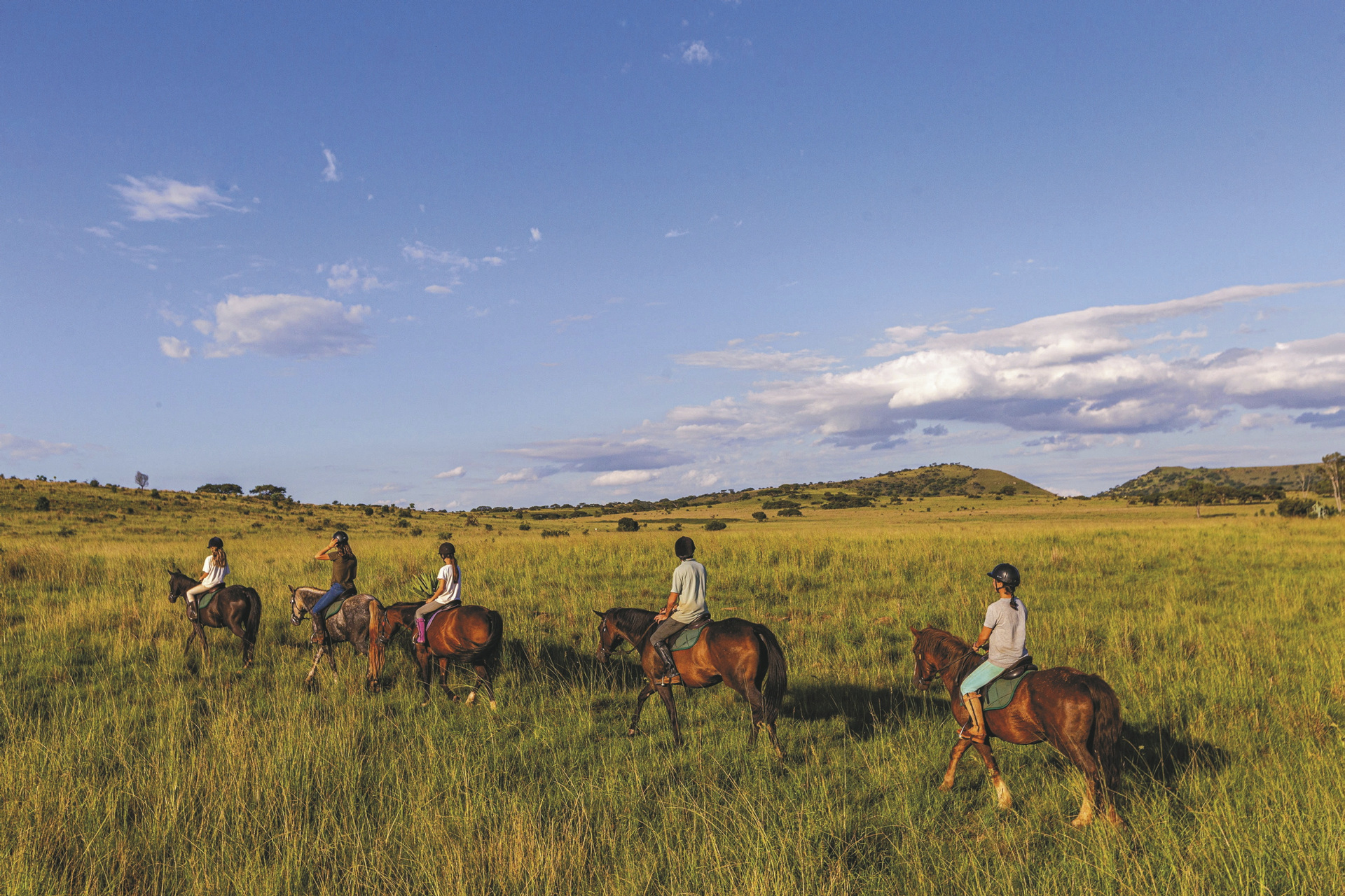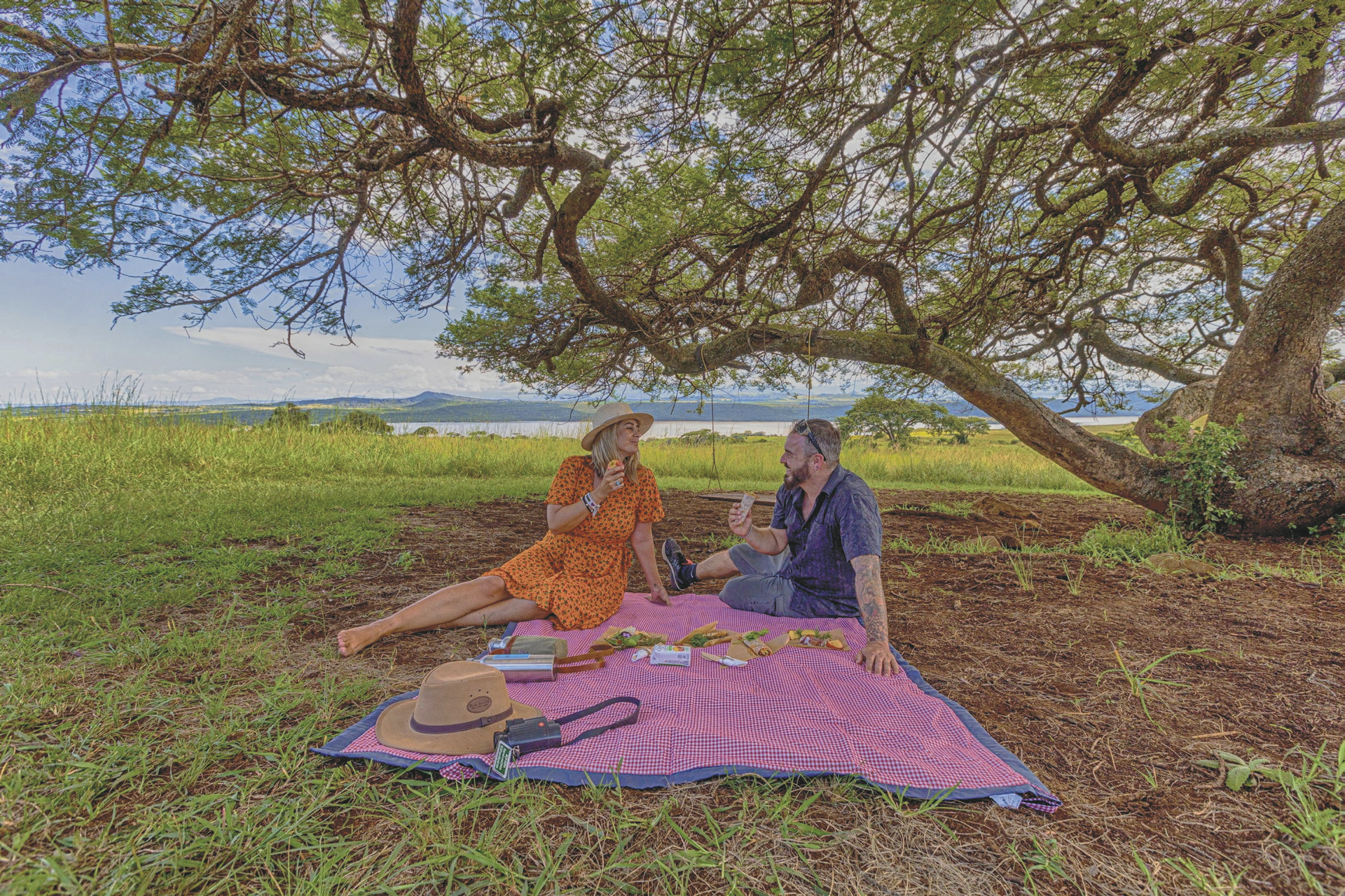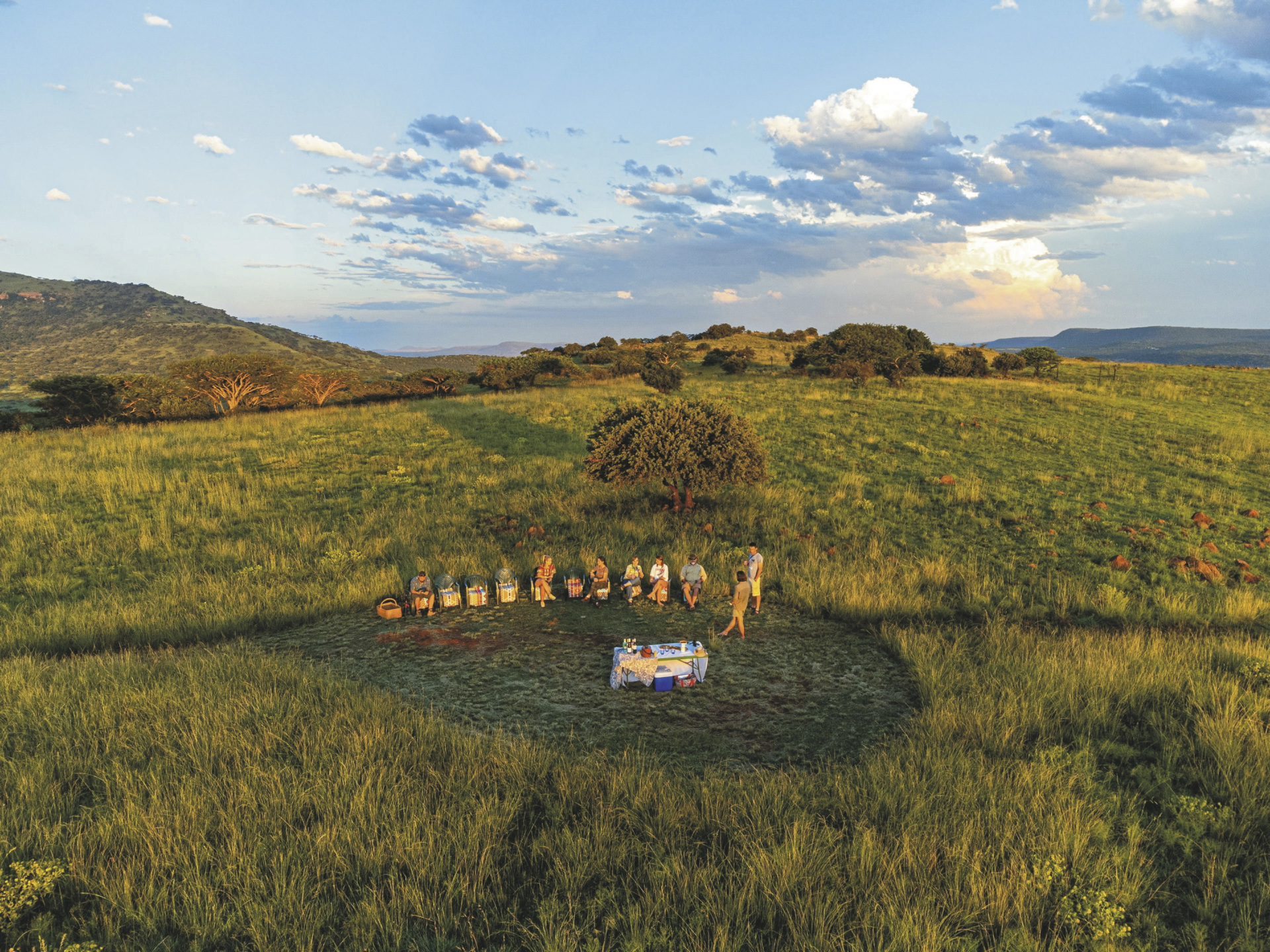 Sehr persönlich von den Inhabern mit viel Herzblut and Engagement geführte Lodge. Das Hauptgebäude im kolonialen Stil mit umlaufender Terrasse wirkt wie ein heimeliges Wohnhaus, alte Bilder und Erinnerungstücke laden zum Betrachten ein. Im eleganten Speisezimmer oder auf der Terrasse werden Ihnen schmackhafte Gerichte, selbst gebackenes Brot und hausgemachte Marmeladen serviert. Gleich nebenan stehen wuchtige Sessel zum gemütlichen Plausch bereit. Ihr Getränk nehmen Sie sich aus der Honesty-Bar. Ein paar interessante Bücher zur Geschichte und Kultur der Region stehen zum Schmökern und Blättern genauso bereit wie Spiele und Puzzle. Am Abend erwärmt ein behagliches Kaminfeuer den Raum. Kostenloses WLAN finden Sie hier auch. Im Nebengebäude ist vor eine umfangreiche Bibliothek mit über 3.000 Werken entstanden. Eine Etage tiefer erwartet Sie ein Weinkeller, der gerne auch für ein romantisches Abendessen gebucht werden kann. Ein paar Schritte entfernt befindet sich ein kleiner Pool mit einer schattigen Terrasse von der Sie eine grandiose Aussicht haben. Kleine Gäste können sich auf dem Außenspielbereich mit Klettergerüst, Trampolin, Hindernisparcours, Sandkasten und Fantasiehaus verausgaben. Etwas ganz Besonderes sind die Runden abends am Lagerfeuer, wenn Ihr Gastgeber die Geschichte rund um das Spioenkop Reservat lebendig werden lässt. Optionale Aktivitäten: geführte Ausritte, Mountainbike-Verleih, Buschwanderungen ab 12 Jahren, geführte Touren zu den historischen Schlachtfeldern (Battlefields) ab 16 Jahren, Village-Tour. Die Lodge unterstützt die Gemeinde im benachbarten Dorf Hambrook, allen voran die Frauen, die mit kleinen handwerklichen Arbeiten zum Lebensunterhalt der Familien beitragen. Ein Dorfbesuch gewährt Ihnen nicht nur Einblicke in die Kultur der Zulu, sondern gibt Ihnen auch die Möglichkeit mit den Bewohnern ins Gespräch zu kommen. Außerdem durchziehen diverse markierte Wanderwege das Farmgelände. Für Familien gibt es auf der Lodge und in der näheren Umgebung viele Aktivitäten, z.B. Besuch der Greifvogel-Station Falcon Ridge im Champagne Valley oder des Boys Choir, oder eine Fahrt mit dem Heißluftballon.