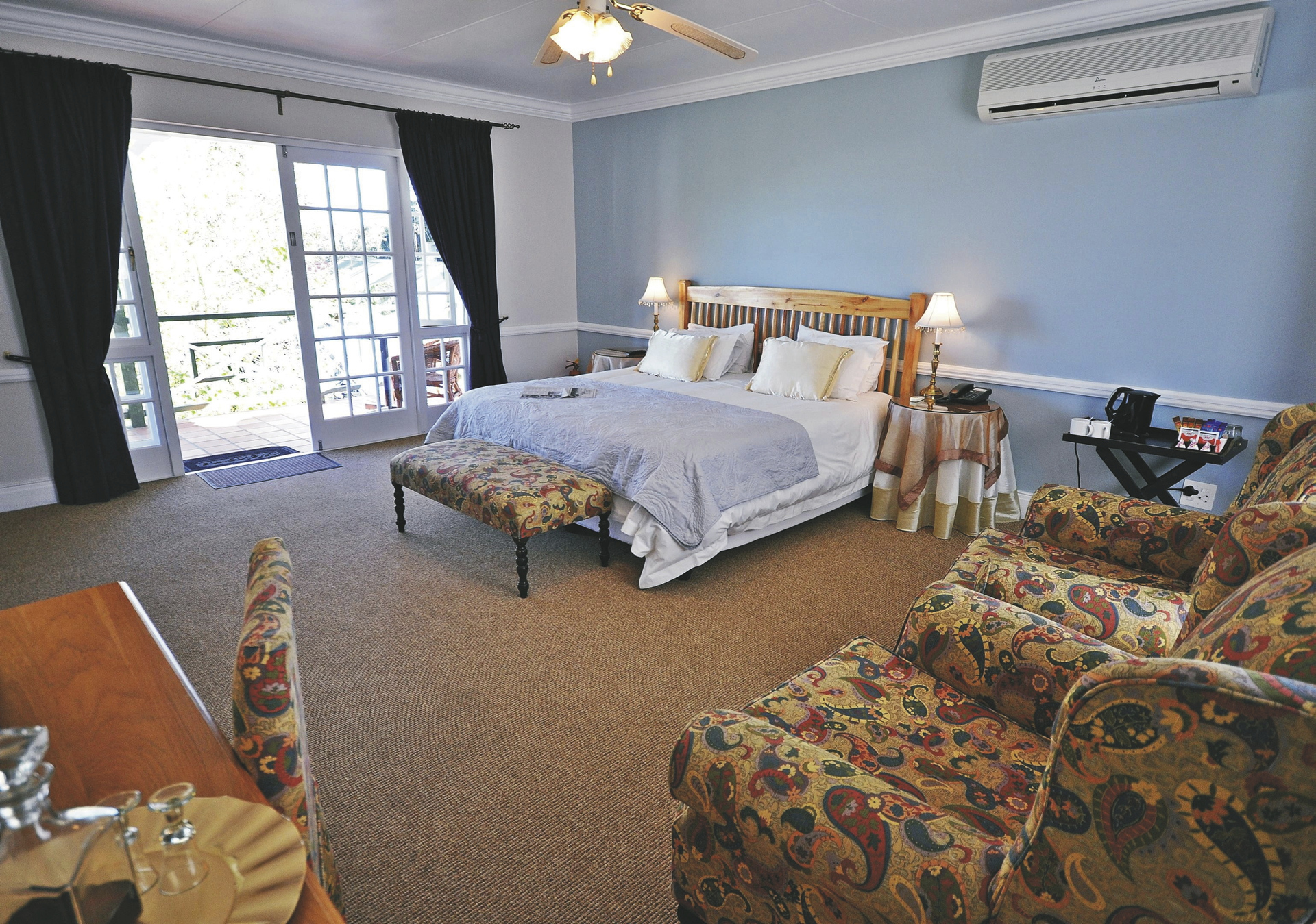 Das Village verfügt über 49 einzigartige und individuell eingerichtete Zimmer und Cottages, die verteilt in der schönen Gartenanlage liegen und die verschiedenen Baustile der frühen Kapkolonie der vergangenen Jahre widerspiegeln. Viktorianisch, Gregorianisch, Schweizer Holzbauweise oder auch ein ehemaliger Pferdestall oder ein Fischerhäuschen sind hier zu finden. Jedes Zimmer verfolgt ein eigenes Thema und ist anders dekoriert als das Nachbarzimmer. Jedes Zimmer verfügt über ein eigenes Bad, Klimaanlage, Heizung, TV, Tee-/Kaffeezubereiter und Balkon oder die klassische südafrikanische "stoep" - ein überdachter Sitzbereich auf den Eingangsstufe. Für Familien empfehlen sich die Village-Zimmer, dort gibt es Verbindungstüren, alternativ können auch 4-Bettzimmer gebucht werden.