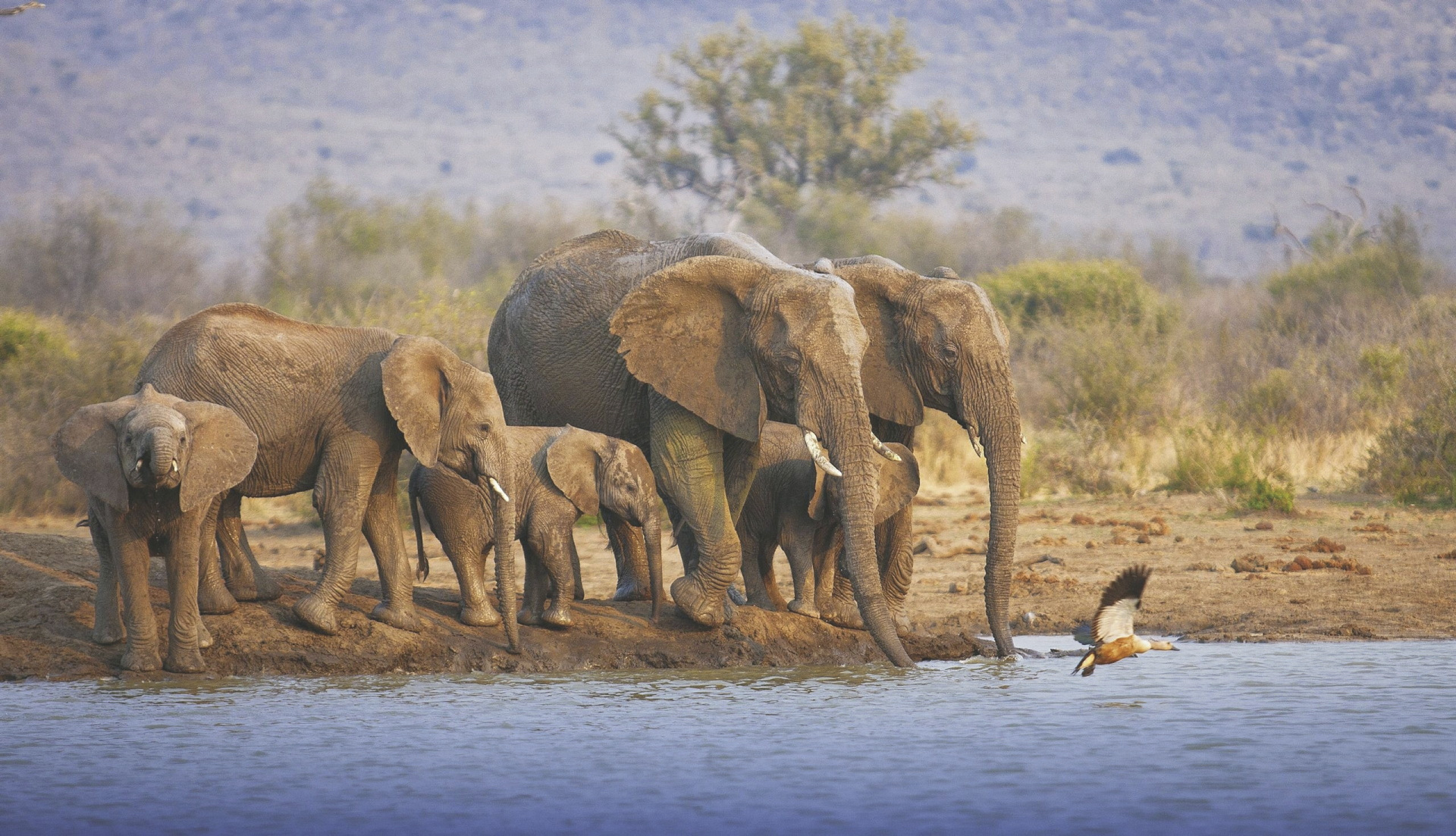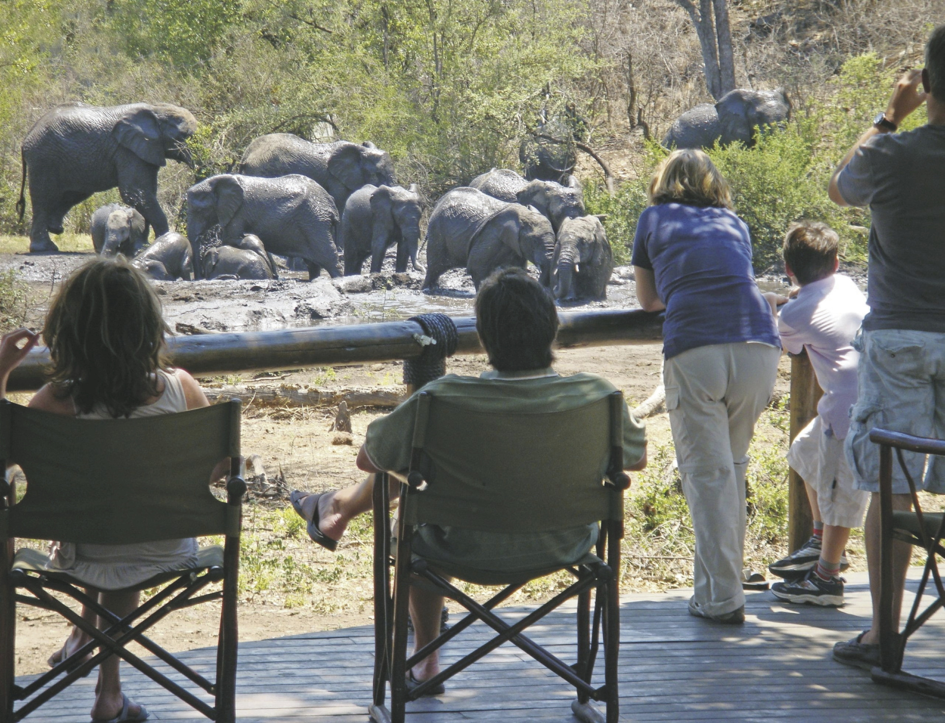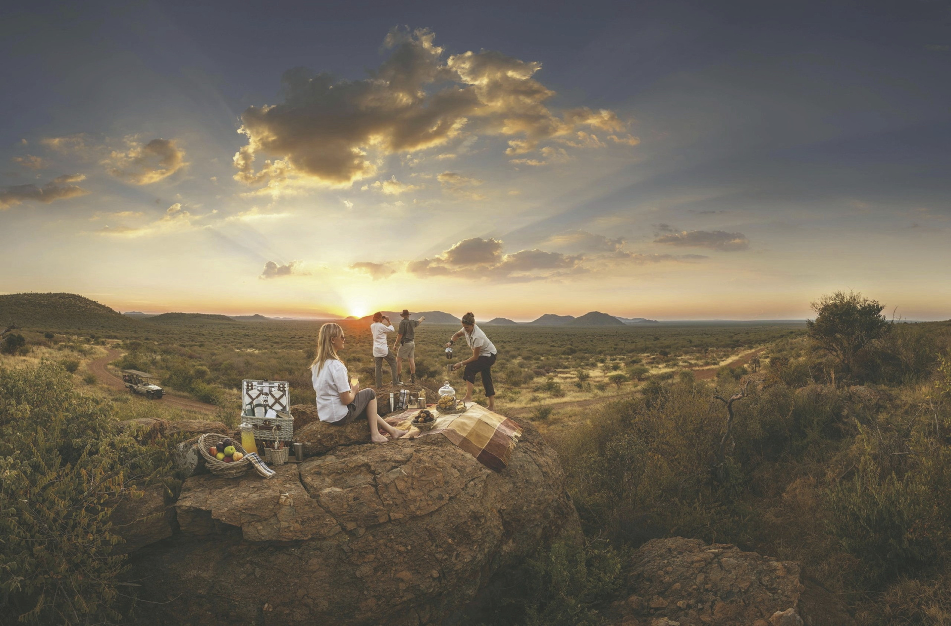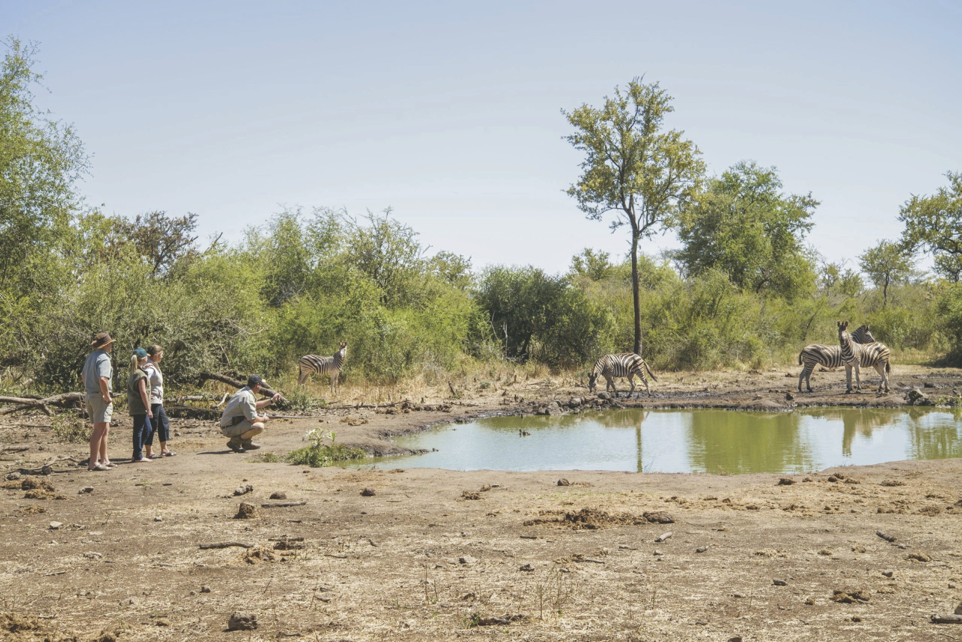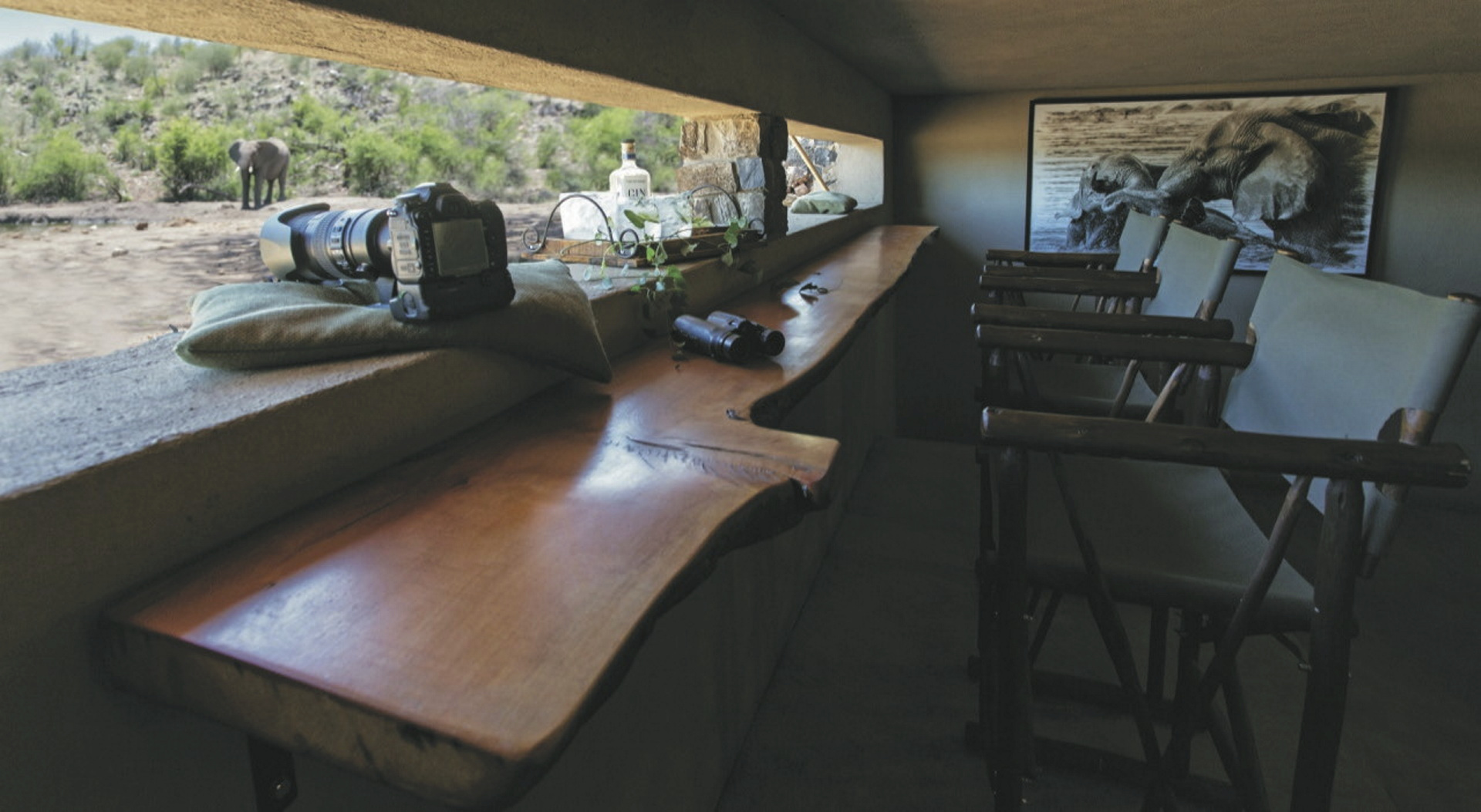 Das strohgedeckte Hauptgebäude der Lodge erstrahlt in modernem afrikanischem Stil, hier finden Sie auch kostenloses WLAN. Es verfügt über diverse gemütliche Sitzbereiche im Innen- und Außenbereich, einen eleganten Speisesaal, eine Bar, eine kleine Bibliothek, eine Kinderspielecke und einen herrlichen Pool mit Blick auf das Wasserloch, von dem aus Sie nur wenige Meter entfernt den Anblick und die Geräusche der Tiere genießen können. Etwas ganz Besonderes ist sicherlich das unterirdische Versteck am Wasserloch, wo Sie die verschiedenen Tiere aus ungewöhnlicher Perspektive ganz in Ruhe beobachten können. In der Boma, unter einem uralten Feigenbaum, oder auf der Terrasse werden nach Möglichkeit die Mahlzeiten serviert, feine Küche und eine Auswahl an Spitzenweinen erwarten Sie. Eine weitläufige Holzterrasse verbindet die verschiedenen Bereiche miteinander. Wer sportlich aktiv sein möchte, kann sich im hauseigenen Fitnesscenter verausgaben, hier finden Sie auch eine zweiten, kleineren Pool. Diverse Spa-Behandlungen können optional gebucht werden, diese genießen Sie dann auf der eigenen Terrasse. Eingeschlossene Aktivitäten: Pirschfahrten und Kinderprogramm (englisch & afrikaans).