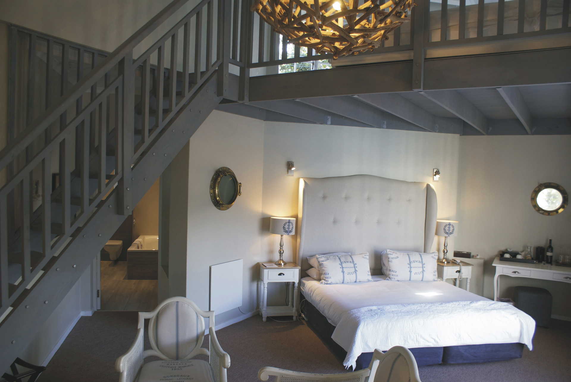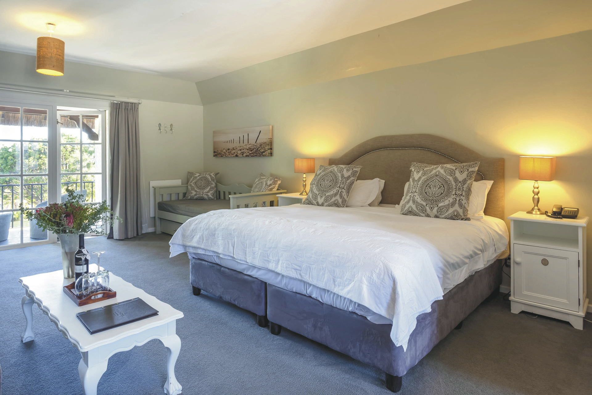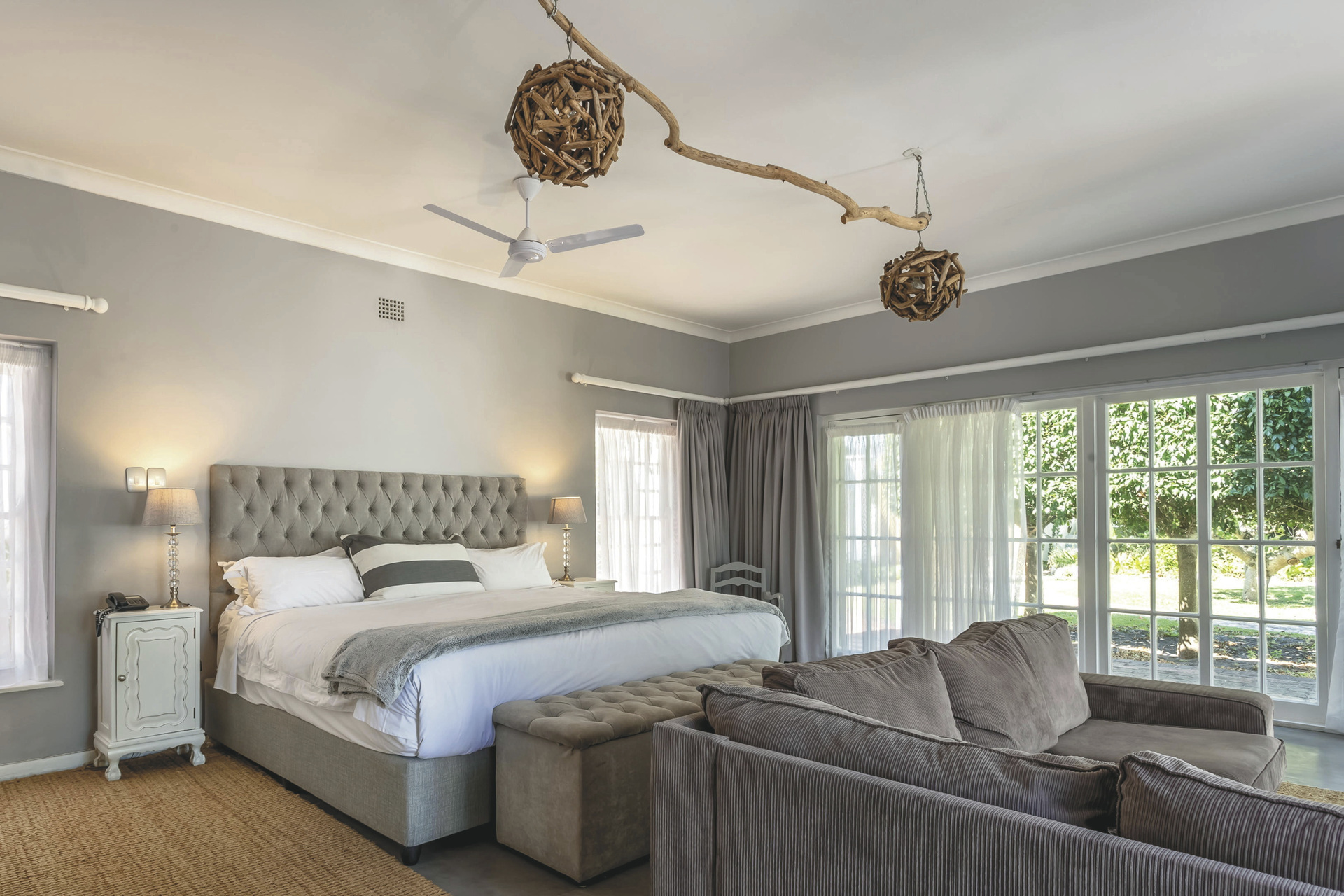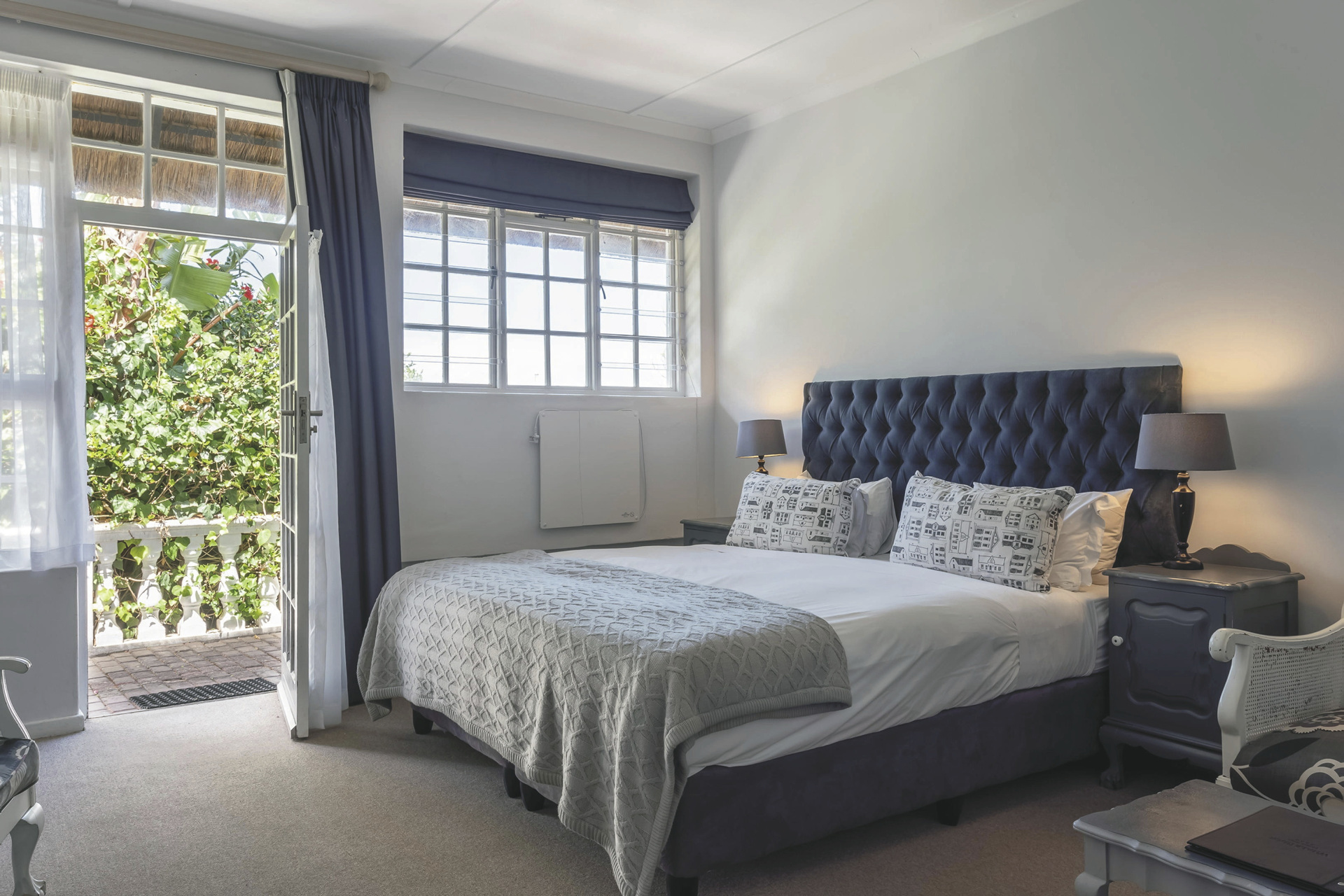 Die Lodge bietet 17 elegante und moderne Zimmer und Suiten im Haupt- oder Nebengebäude mit Balkon oder Terrasse. Alle mit eigenem Bad mit Dusche oder Badewanne; TV, Telefon, Ventilator, Fön, Safe, Tee-/Kaffeezubereiter, kostenlosem WLAN, Minibar; Heizung und elektrischen Heizdecken für kalte Winterabende. Die Gartensuiten sind größer als die Gartenzimmer und bieten einen Kamin. Die Meerblicksuite liegt in der oberen Etage. Die geräumige Executive-Suite verfügt zusätzlich über einen großen Loungebereich und ein Ankleidezimmer.Für Familien mit Kindern gibt es die Luxus-Familiensuite mit zwei Schlafzimmern, ein Gartenzimmer mit Schlafmöglichkeit für 2 Kinder im Loft sowie eine Garten-Familiensuite mit zwei Schlafräumen und einem gemeinsamen Badezimmer.