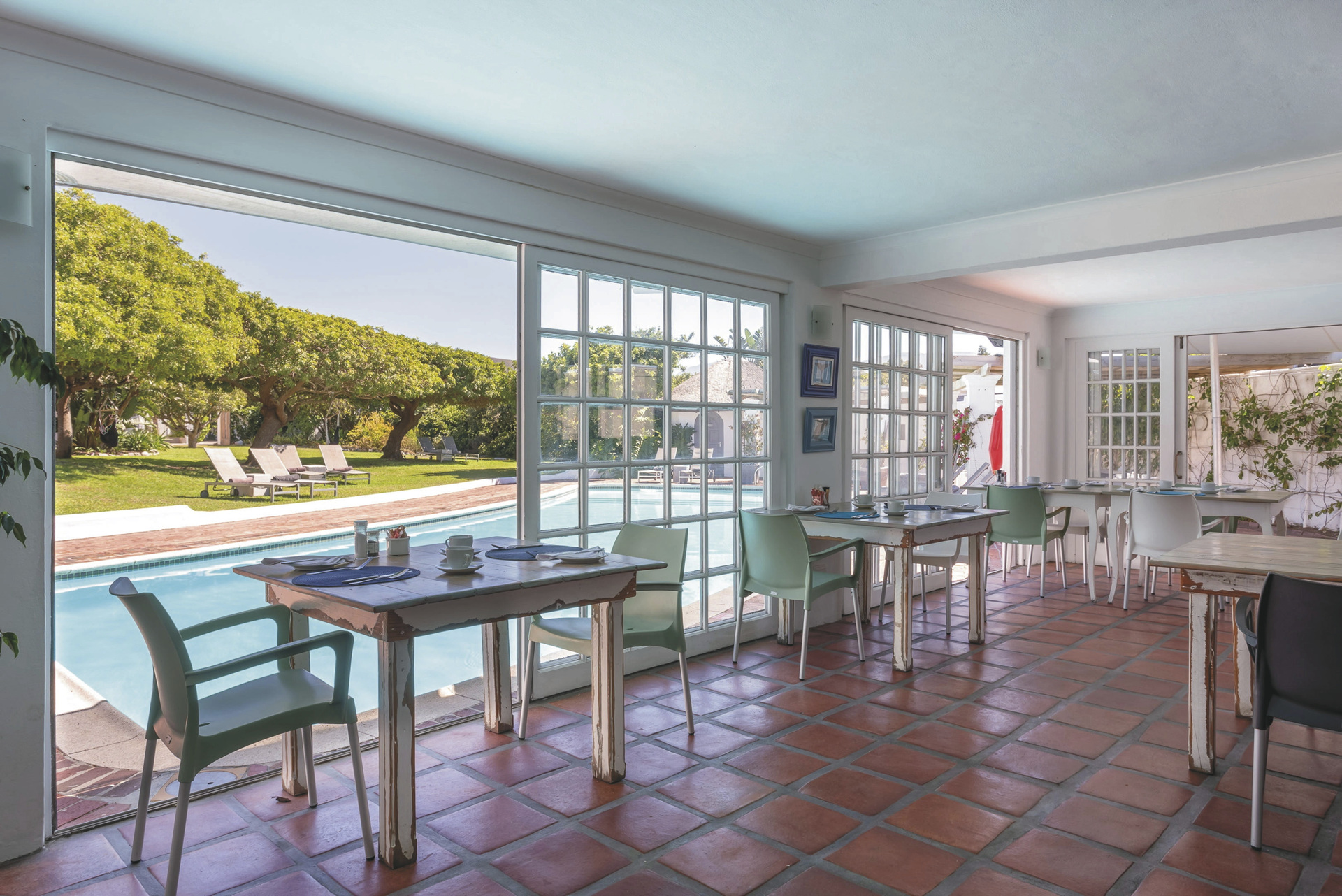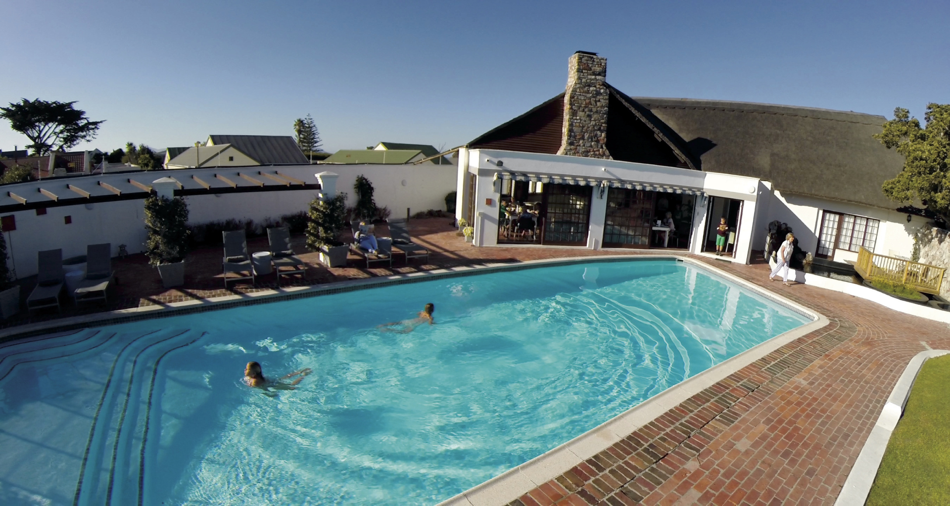 Die freundliche Lodge bietet mit ihrem zeitgemäßen Stil eine familiäre Atmosphäre und das Gefühl Zuhause zu sein. Im Hauptgebäude befinden sich mehrere gemütliche Sitzecken, eine Bibliothek, TV, WLAN und die Honesty-Bar. Einen perfekten Start in den Tag haben Sie im gegenüberliegenden Frühstücksraum mit Blick auf den üppigen Garten und den großen Salzwasserpool mit Sonnenliegen. Für Ihren Mietwagen gibt es ausreichend Parkplätze auf dem abgeschlossenen Gelände.