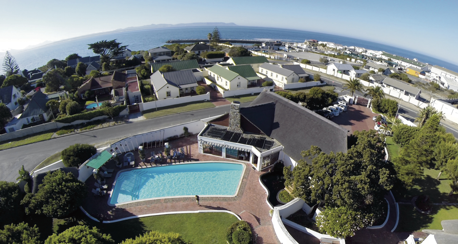In einem Wohngebiet ca. 3 km vom Stadtzentrum entfernt beim neuen Hafen für die Waltouren und dem Wanderweg entlang der Steilküste (Walbeobachtung Juli - November). Über die malerische Küstenstraße sind es ca. 135 km bis Kapstadt.
