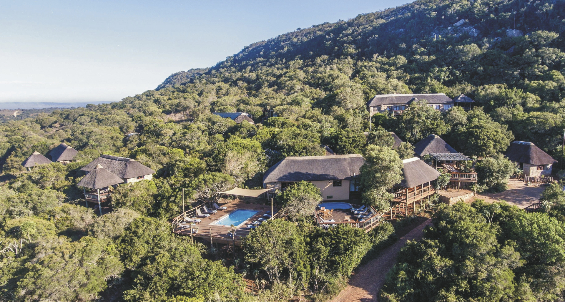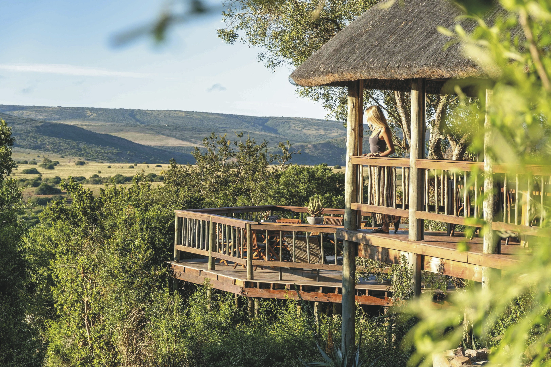 Spektakulär an einem Hang zwischen atemberaubenden Felsen im malariafreien Amakhala Game Reserve, Port Elizabeth ca. 75 km.