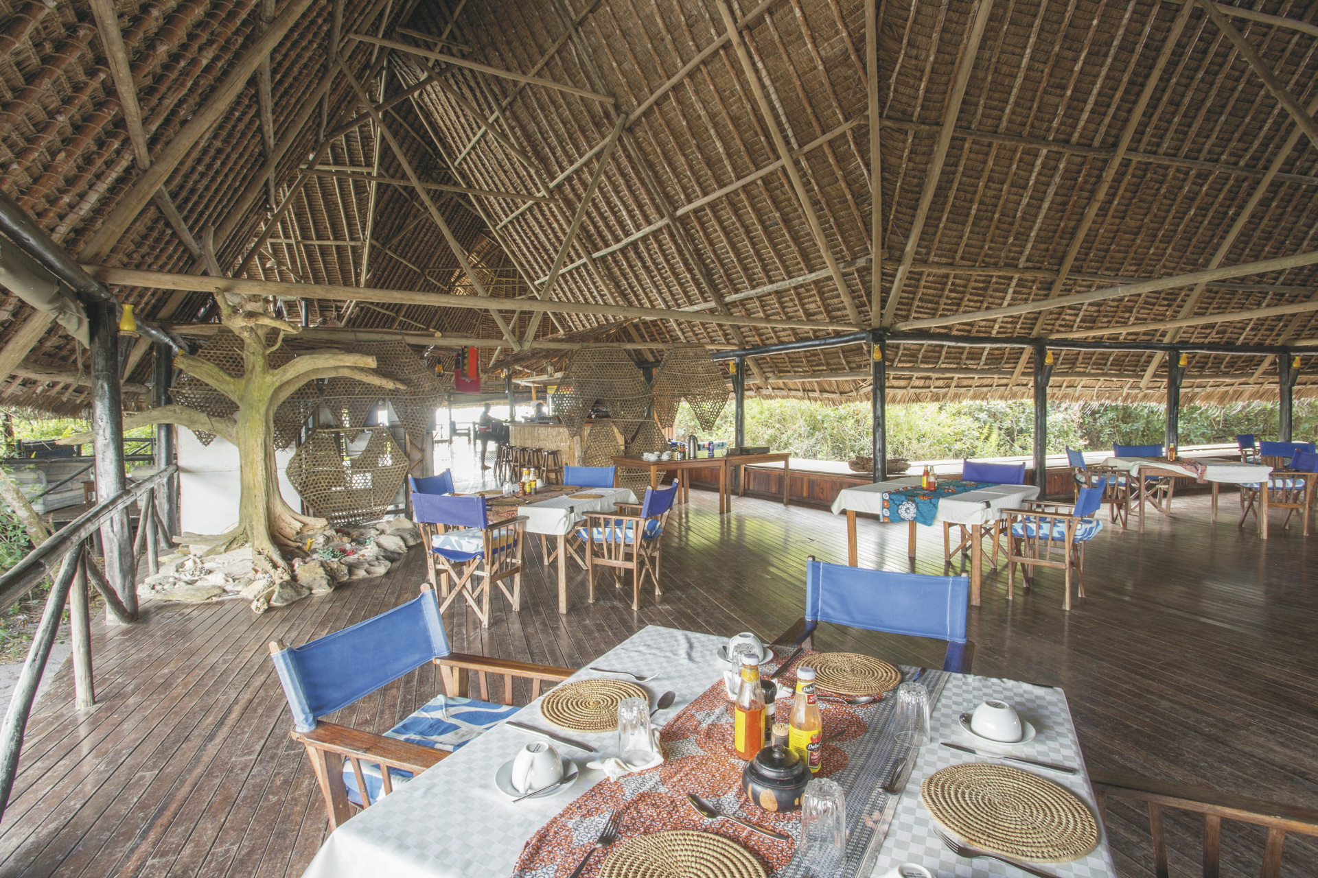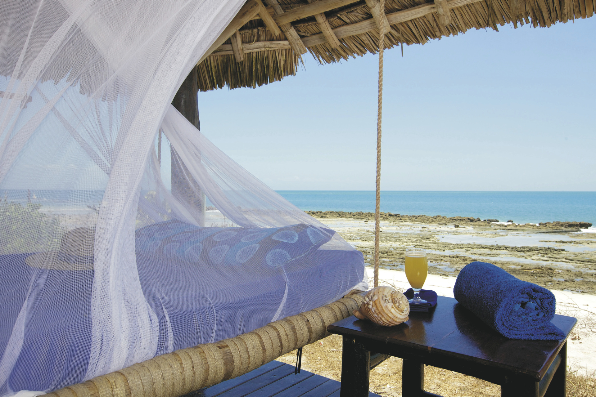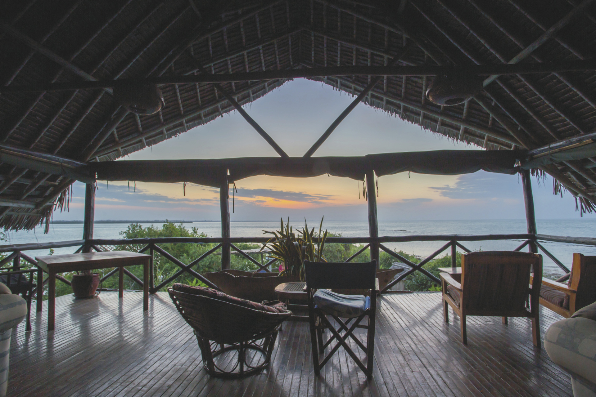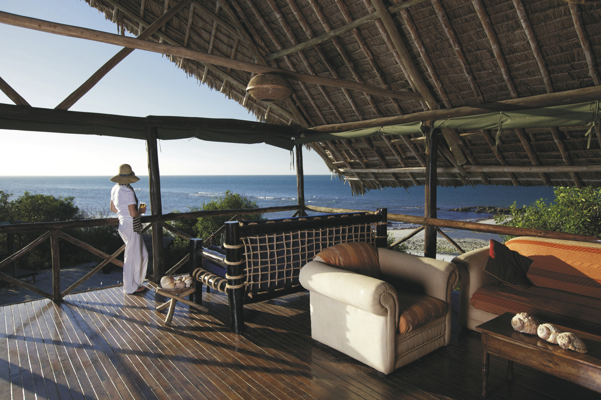 Das Haupthaus und die Chalets (Bandas) sind aus lokalen Materialien in traditioneller Swahili-Architektur erbaut. Hohe, steile Dächer sorgen für eine natürliche Lüftung. Neben einem Restaurant und einer Bar erwartet Sie eine Sundowner-Lounge mit weitem Blick über das Meer. Genießen Sie von hier den Sonnenaufgang über Zanzibar und den Sonnenuntergang über den Palmen von Bagamoyo. Das vorgelagerte Korallenriff bietet gute Schnorchelmöglichkeiten und der lange Sandstrand lädt zu Strandspaziergängen und zum Baden ein. Kajaks und Segel-Dinghis können ausgeliehen werden. Außerdem sind optional Ausflüge auf das Festland möglich, z.B. zu den Ruinen von Ras Kaole.