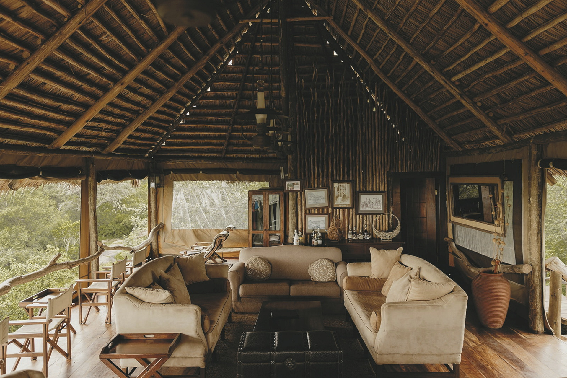 Die 12 Safarizelte erfüllen die Vorstellung von den spannenden alten Tagen. Moskitonetze, Clubsessel, eine überdachte Terrasse - alles in ausgesuchter Qualität und ansprechendem Design.