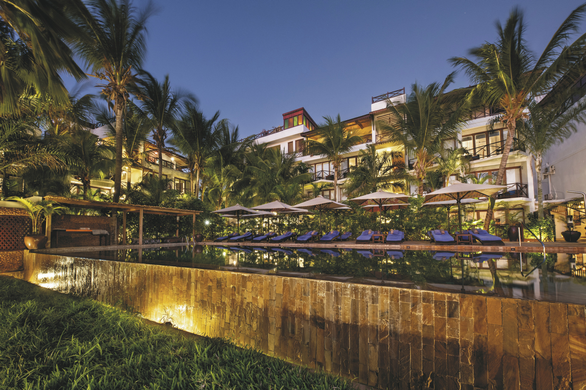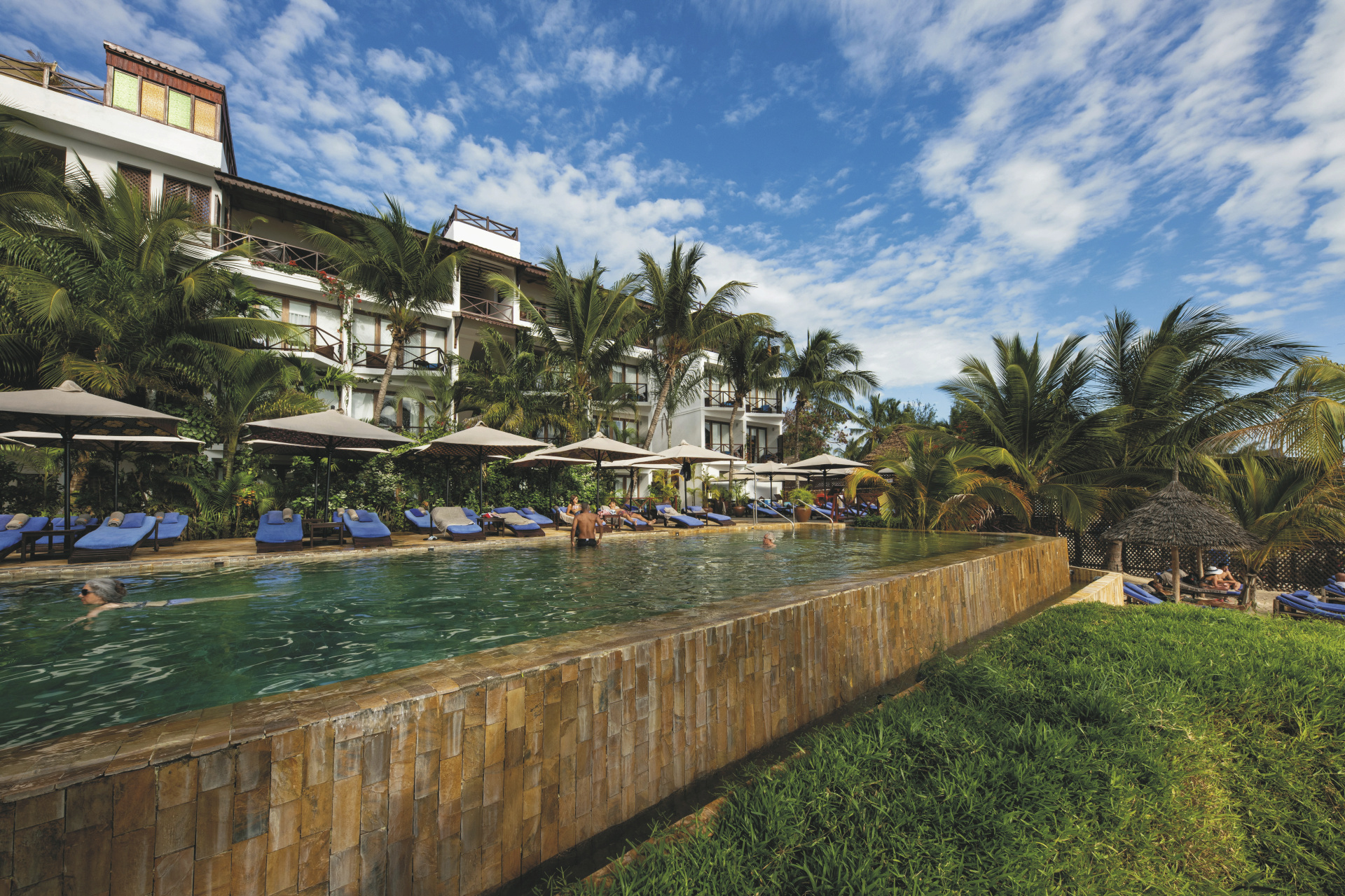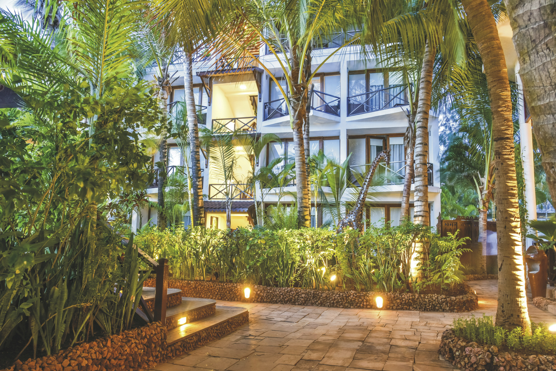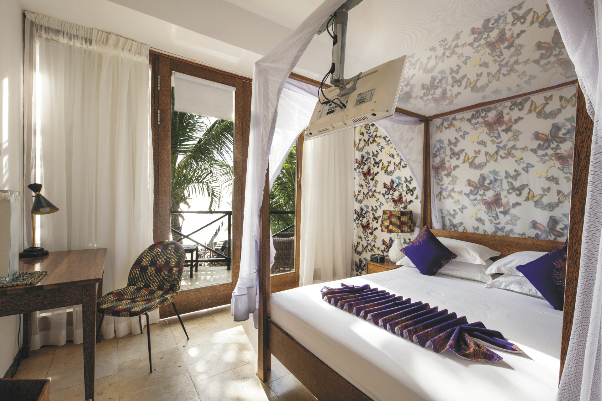 Die moderne Einrichtung der 40 Zimmer und Suiten besteht aus lokalem Kokosnussholz. Ausgestattet sind die Zimmer mit Himmelbett, Bad, Klimaanlage, TV und Terrasse oder Balkon. Die Standardzimmer liegen im Erdgeschoß, die Luxus-Zimmer im 1. und 2. Stock, sie haben Meerblick, teils seitlich oder auch durch Palmen eingeschränkt. Die Suiten sind geräumiger und liegen ganz oben oder direkt am Strand.