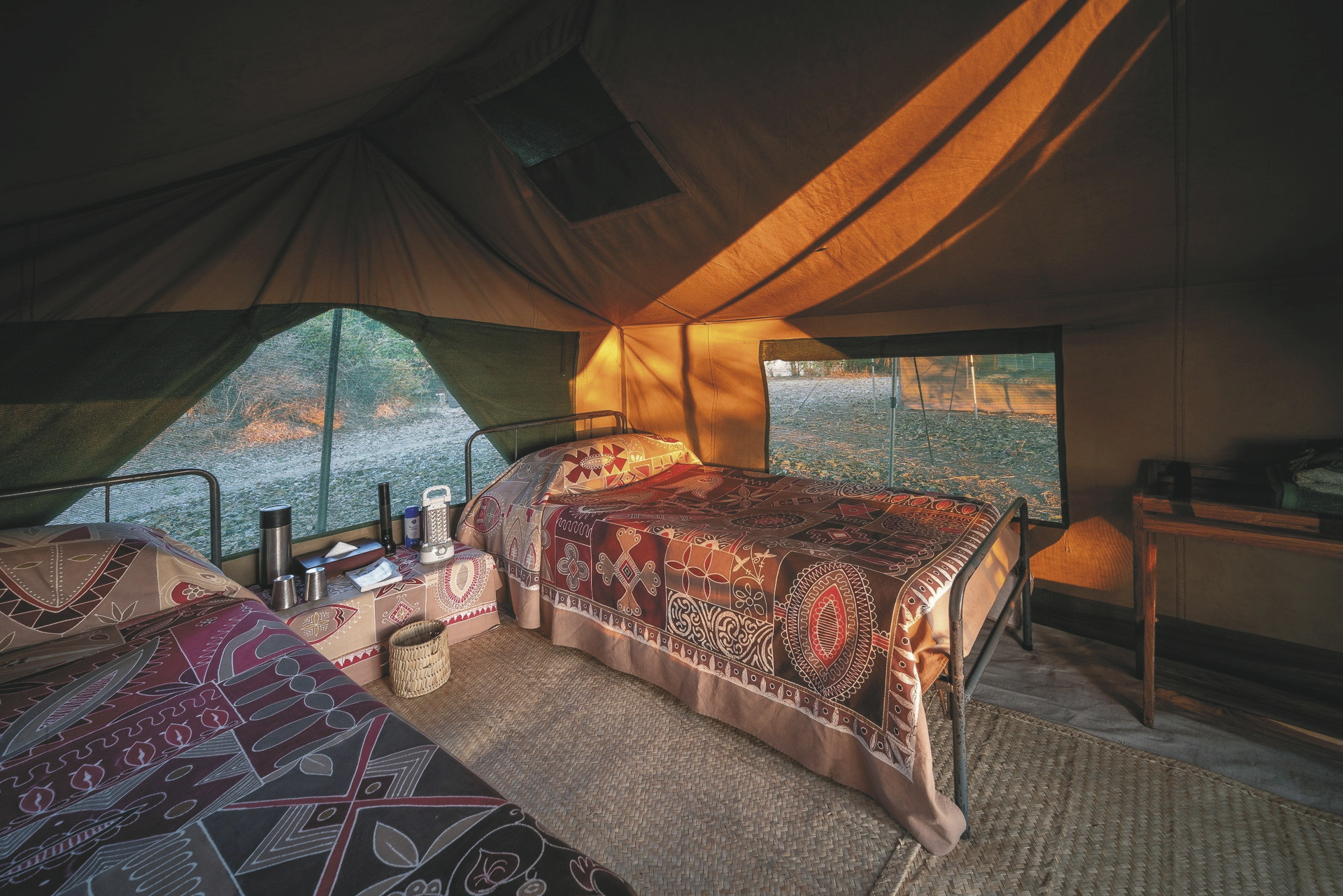 Rechtzeitig zum Mittagessen Ankunft am Camp. Die großen Zelte stehen bereit, die Dusche unter einem Baum sowie das Toilettenzelt sind installiert. Genießen Sie am Nachmittag eine erste Wanderung. Alle Wanderungen werden von einem erfahrenen Naturguide geleitet und von einem bewaffneten Wildhüter begleitet.