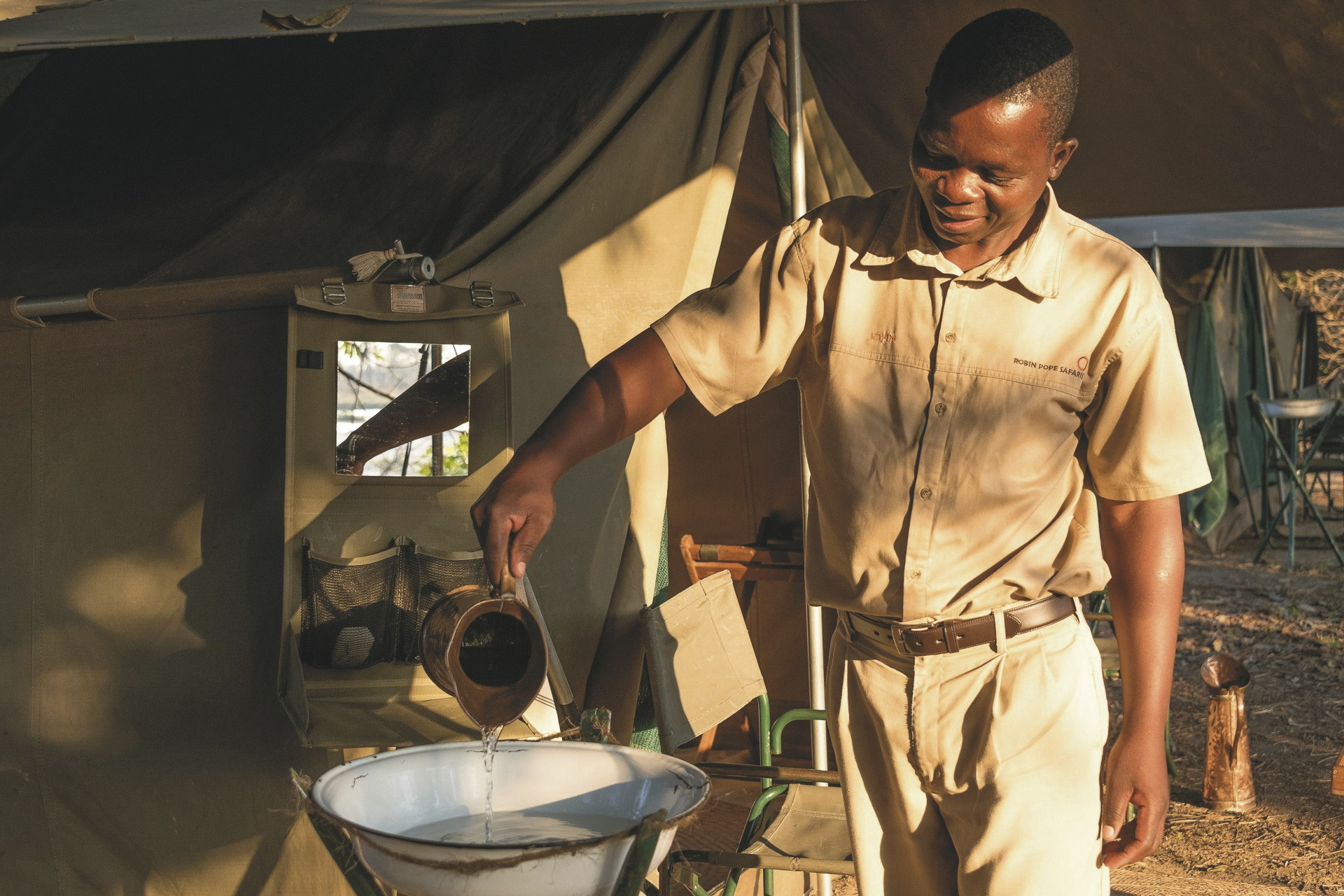 Mit dem Sonnenaufgang kommt Bewegung in den Busch und Sie starten Ihre Wanderung. Die Landschaft besticht durch Einsamkeit und Wildnis; die Tierwelt ist abwechslungs- und artenreich. Von der Ameise bis zum Büffel, vom kleinsten Vogelnest bis hin zur Verfolgung von Löwenspuren – all solche Erlebnisse werden Sie in den Bann ziehen. Währenddessen wird das Camp abgebaut, verpackt und an anderer Stelle wieder aufgeschlagen. Sobald Sie nach der Wanderung am späten Vormittag ankommen, ist schon wieder alles für Ihr Wohlbefinden gerichtet. Mittagessen, Siesta und eine Nachmittags-Wanderung stehen auf dem Programm. Am nächsten Tag erkunden Sie die Region um das Camp.