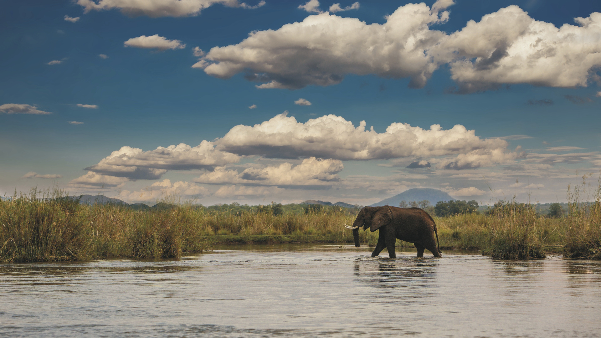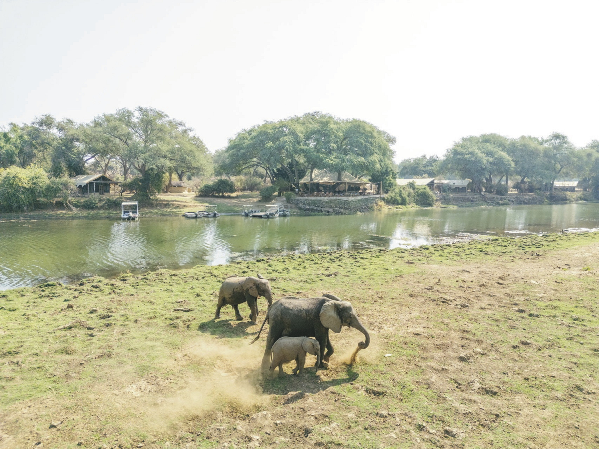 Die kommenden drei Tage stehen ganz im Zeichen intensiver Naturerlebnisse im Lower Zambezi Nationalpark, einer der landschaftlich schönsten Regionen Zambias. Der mächtige Zambezi bildet die natürliche Grenze des Parks – ein eindrucksvoller Fluss, an dessen Ufern Elefanten, Büffel und Flusspferde regelmäßig zu beobachten sind. Im Hintergrund erheben sich die bewaldeten Hänge des Zambezi Escarpments und schaffen eine dramatische Kulisse.
