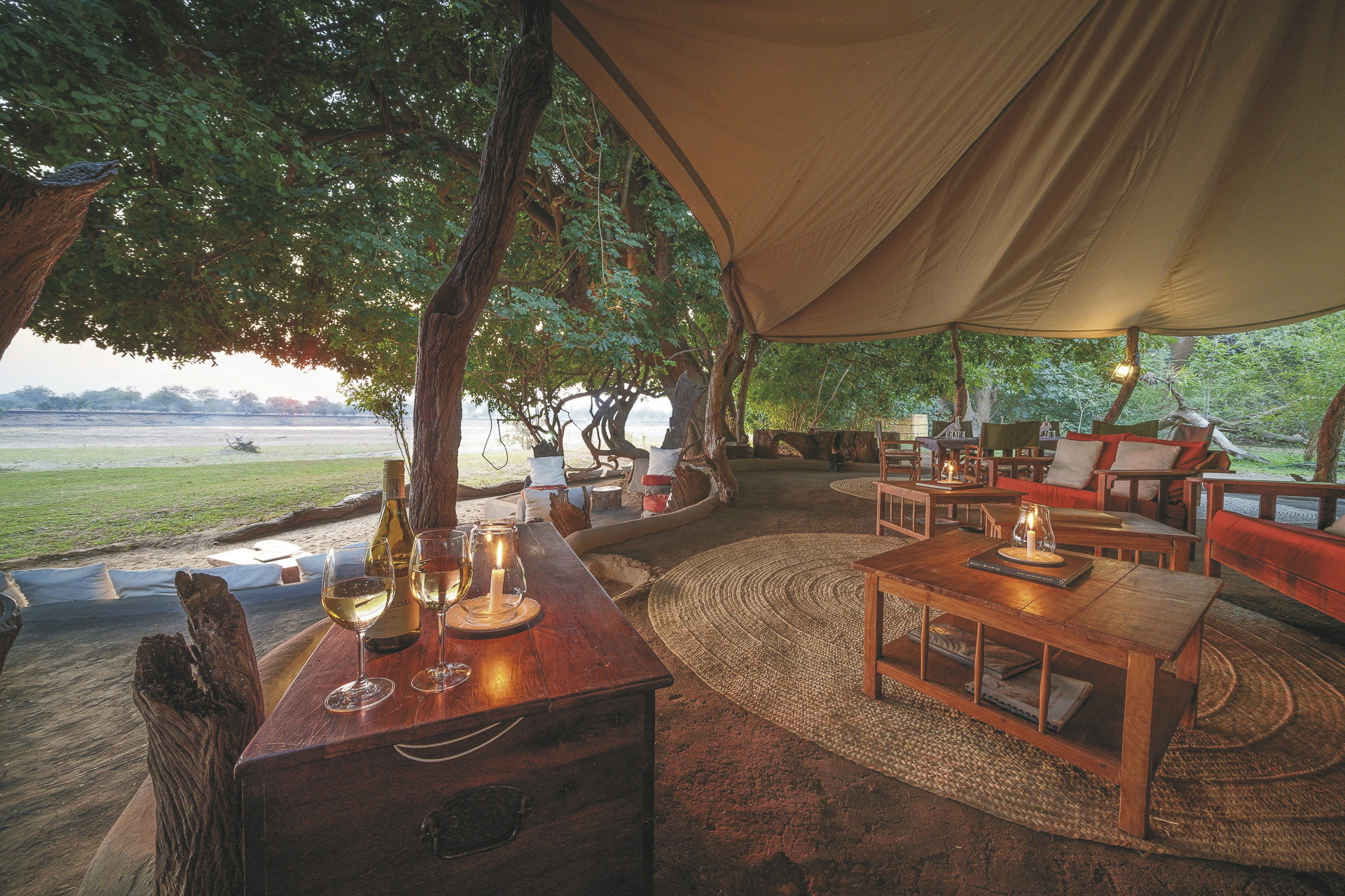Der Loungebereich ist um einen alten Termitenbau am Fuß eines Mahagonibaumes angeordnet; das gesamte Ensemble auf verschiedenen Ebenen wird von einem riesigen Segeltuch beschattet, das an Leadwoodstämmen aufgespannt ist. Etliche Sitzgruppen laden zum Verweilen ein und die Erlebnisse des Tages werden bei einem Drink in Erinnerung gerufen. Das Abendessen am Ufer des Luangwa und unter dem Sternenhimmel Afrikas beschließt den Tag, während die Nacht mit den Lauten Afrikas die Stimmung beherrscht.Eingeschlossene Aktivitäten: Pirschfahrten, Buschwanderungen, sowie Dorfbesuche.
