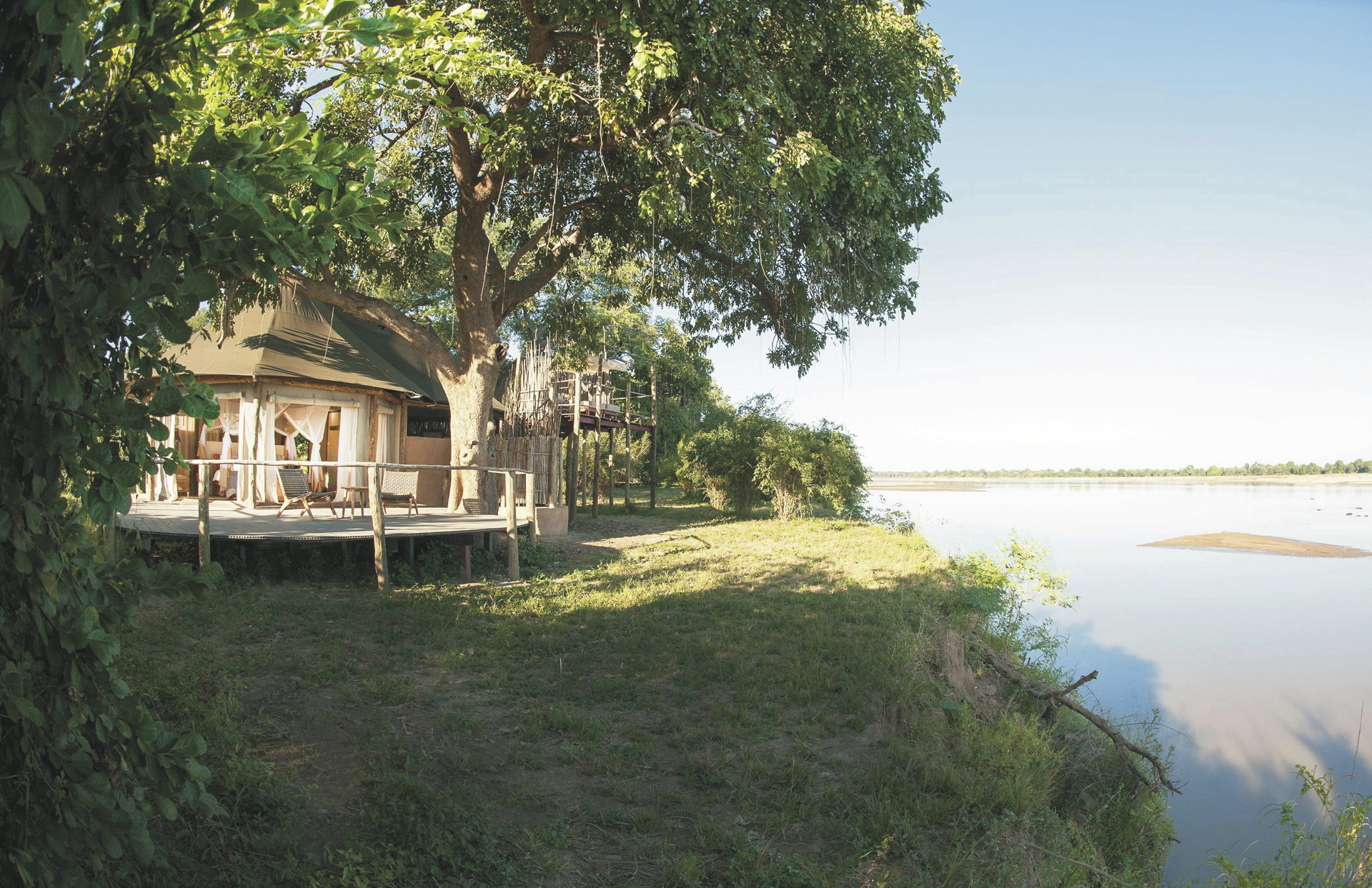 Unter dem Schatten von Sausage Trees am Ufer des Luangwa Flusses gelegen, bietet das Three Rivers Camp ein besonderes Wildniserlebnis, bei dem Wandersafaris im Mittelpunkt der Aktivitäten stehen. Die offene Lounge mit Bar und Feuerstelle lädt zum Entspannen ein – mit Blick auf sonnenbadende Flusspferde und vorbeiziehende Giraffen. Kulinarisch verwöhnt das Camp mit einem reichhaltigen Brunch und stilvollen Abendessen am Flussufer.Eingeschlossene Aktivitäten: Pirschfahrten, Buschwanderungen.