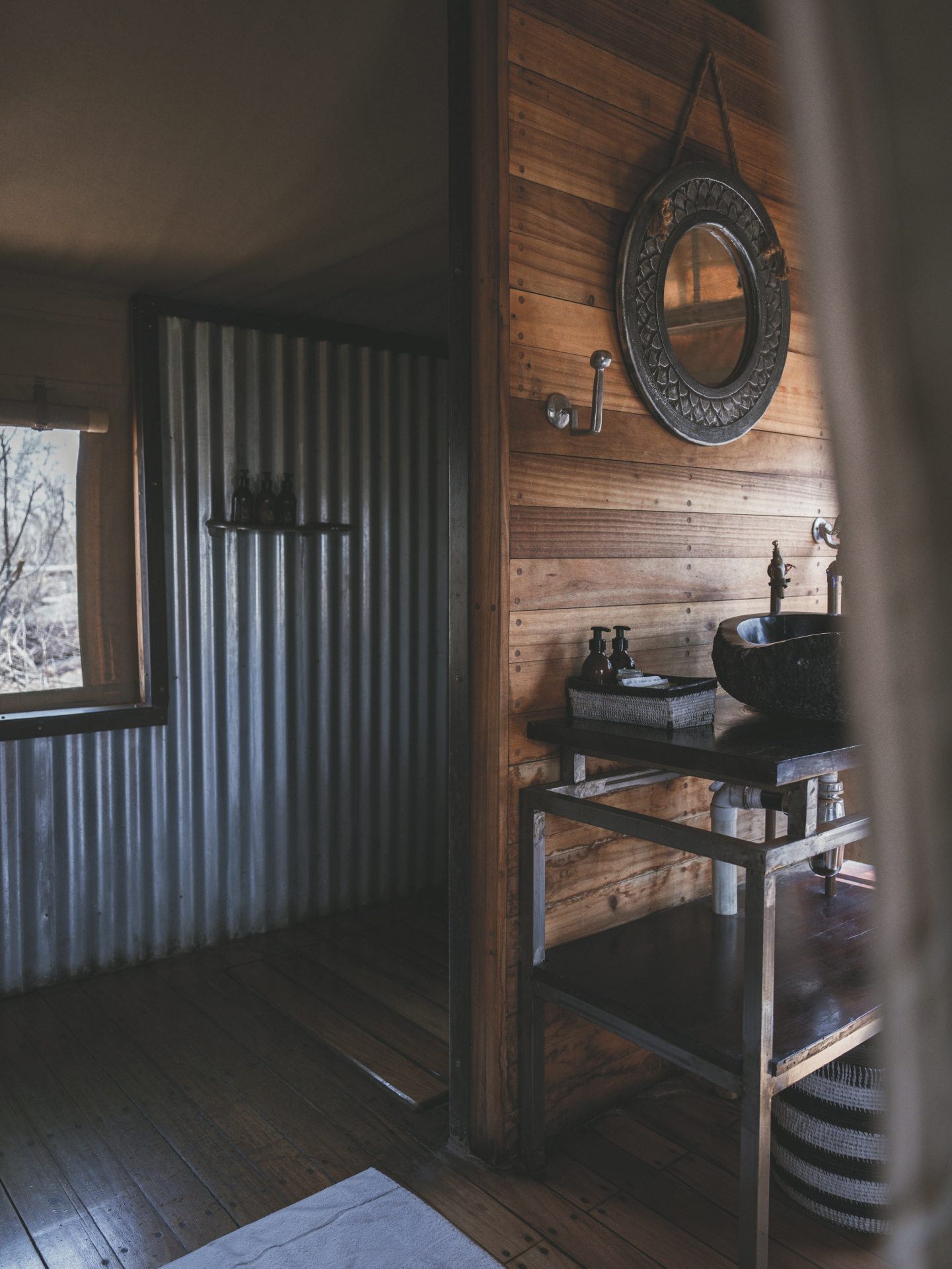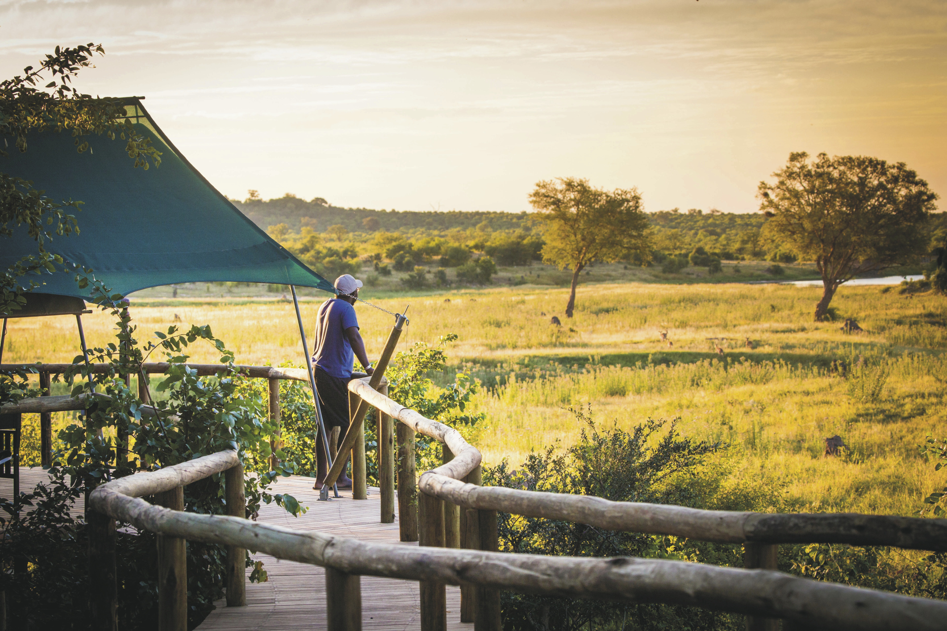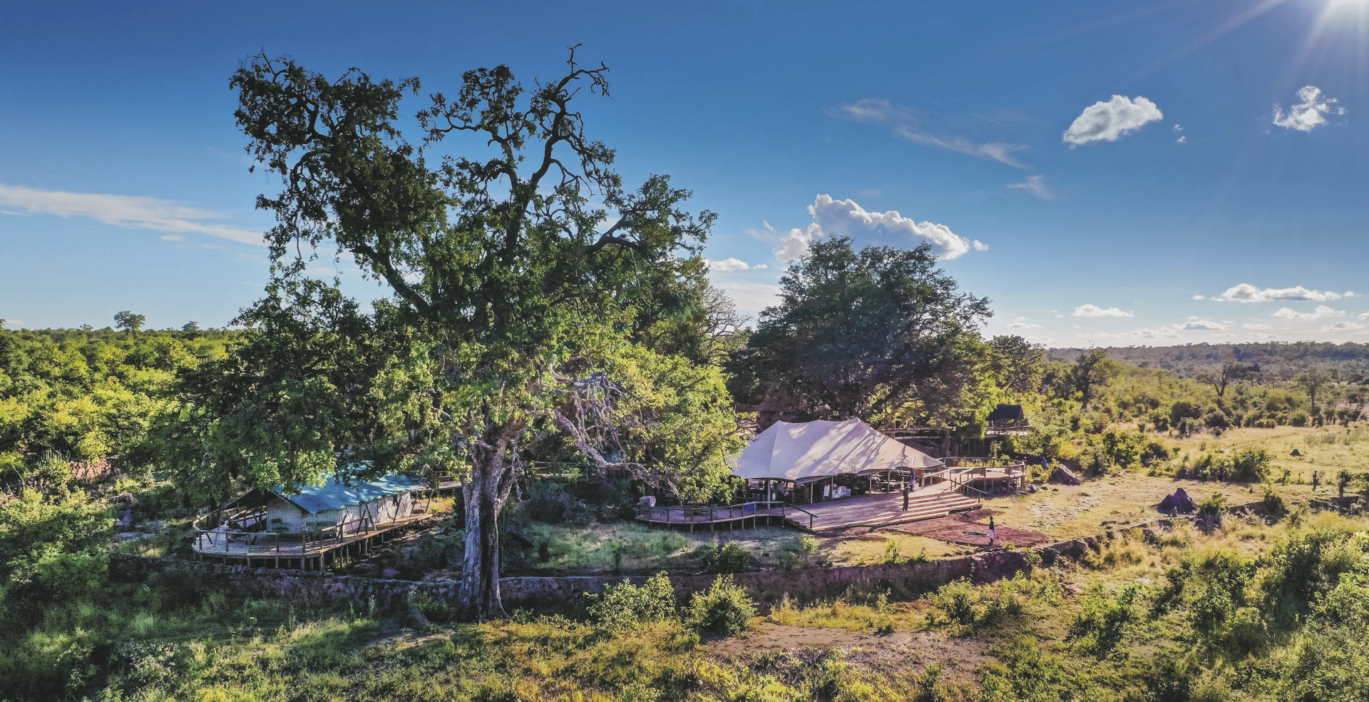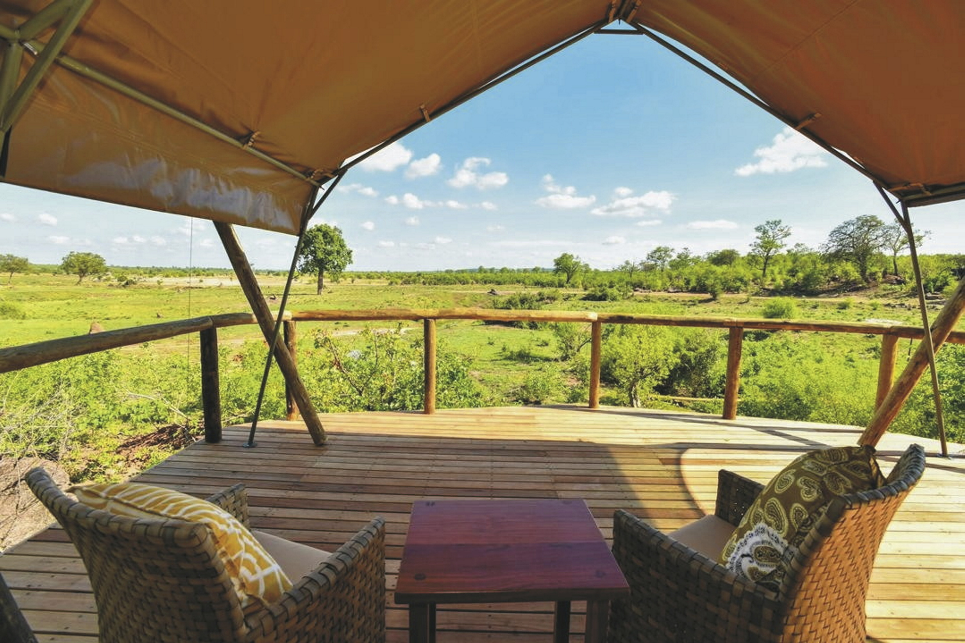 Die 8 Safarizelte sind erhöht auf Holzplattformen erbaut und versprühen viel afrikanisch-rustikalen Charme und vermitteln die Nähe zur Natur. Alle verfügen über ein eigenes, modernes Bad; Ventilator und eine überdachte Terrasse von der Sie, durch die exponierte Lage, gefahrlos und nah die Tiere beobachten können. Ein Zelt ist für Familien mit zwei Kindern geeignet.