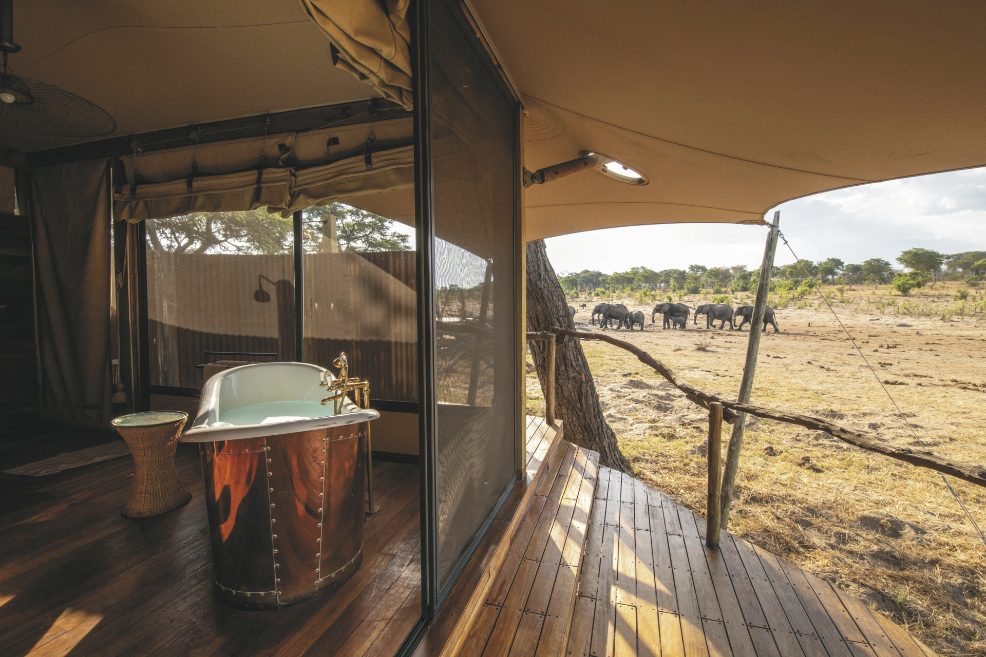 11/20©African Bush CampsElefanten vor dem Safarizelt