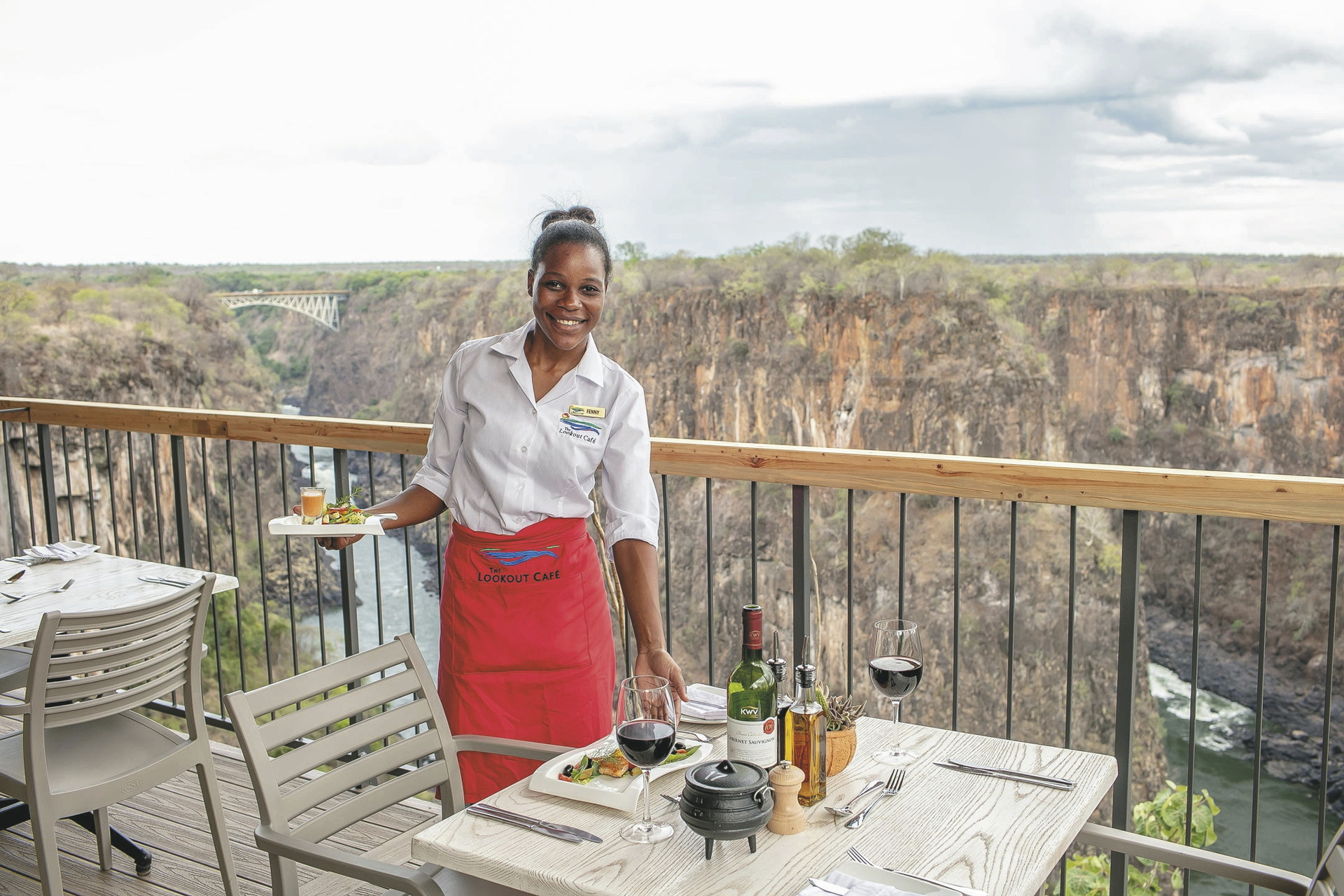 Der Hauptbereich verfügt über eine gemütliche Lounge, eine wunderschöne versenkte Feuerstelle sowie einen Pool. Von der Terrasse hat man einen atemberaubenden Blick auf die Gischt der Victoria Wasserfälle, auf ein Wasserloch zur Tierbeobachtung sowie über die Zambezi Schlucht, die Zimbabwe und Zambia trennt.Eingeschlossene Aktivitäten: Besuch des Victoria Wildlife Trust, Besuch der Victoria Wasserfälle (exkl. Eintritt), Sonnenuntergang an der Batoka Schlucht, örtlicher Dorfbesuch, Mittagessen im Lookout Cafe, Elephant Conservation Experience, Pirschfahrten im Zambezi NP, Bootsfahrt zum Sonnenuntergang.