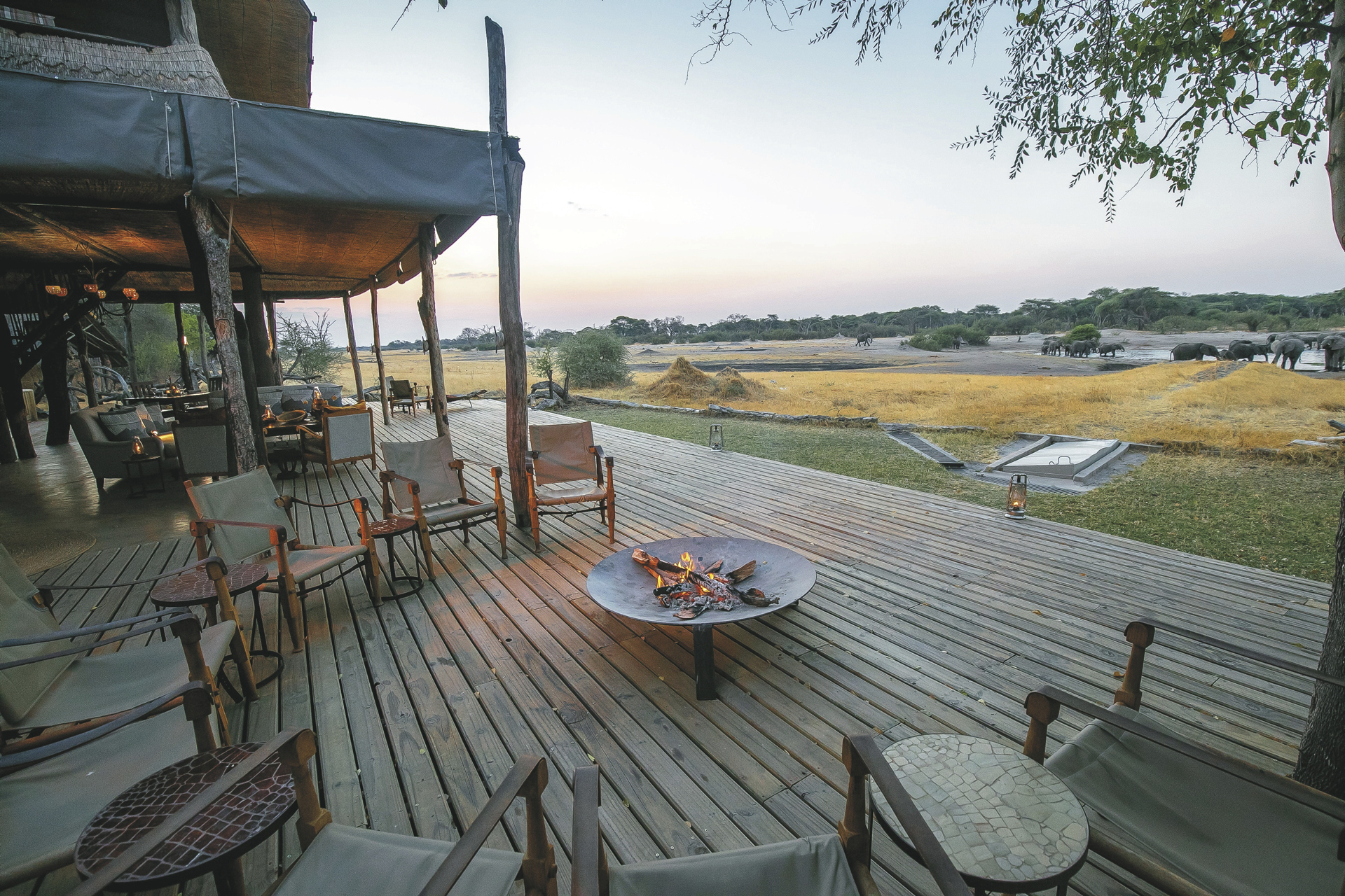 4/23©Natalie JenningsHauptbereich mit Feuerstelle und Blick auf das Wasserloch