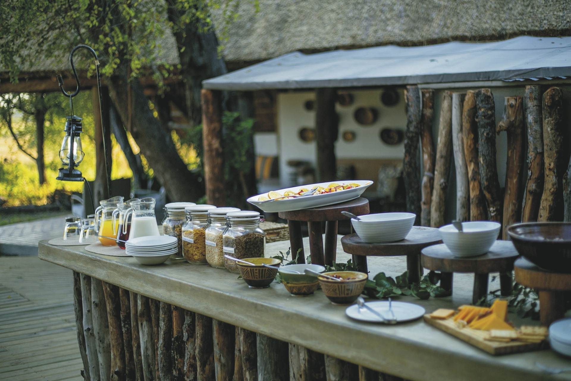 Das Herzstück der Lodge ist das markante „A“-förmige Gebäude, das den Speiseraum, eine Sonnenlounge im Erdgeschoss und eine große, gemütliche Lounge mit Aussichtsplattform im Obergeschoss beherbergt. Die großzügigen Lodge-Bereiche sind geschmackvoll eingerichtet und mit massiven Möbeln aus Zimbabwe-Teakholz ausgestattet. Der Pool bietet eine optimale Abkühlung an heißen Tagen. Ein besonderes Highlight ist der "Hide". Die Gäste können den unterirdischen Gang entlang bis zum wildtierreichen Wasserloch laufen und die Tierwelt aus einem ganz anderen Blickwinkel betrachten.Eingeschlossene Aktivitäten: Pirschfahrten und Buschwanderungen sowie eine Übernachtung im "Dove’s Nest Treehouse" (auf Anfrage).
