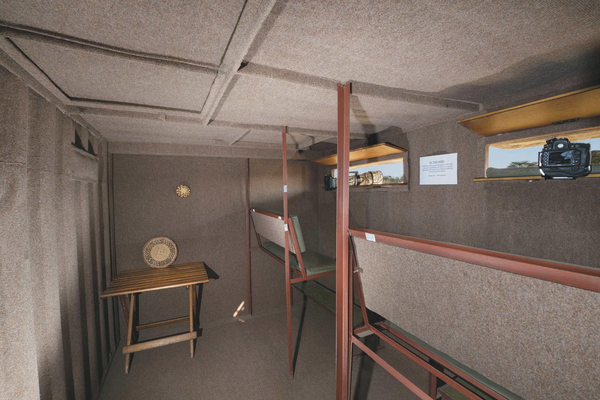 The Hide bietet Platz für bis zu 20 Gäste in 10 komfortablen und geräumigen Safarizelten. Sie bieten verschiedene Ausstattungen, darunter Innen- und/oder Außenbadewannen und -duschen. Für den Sommer sind sie mit Ventilatoren gekühlt und für die kühleren Wintermonate stehen extra warme Decken und Wärmflaschen zur Verfügung. Jedes Zelt verfügt über eine private Veranda, von der aus Sie das Kommen und Gehen zahlreicher Wildtiere am Wasserloch beobachten können.Wer etwas mehr Privatsphäre und Exklusivität möchte, kann den "Private Hide" buchen und für Familie ist "Tom's Little Hide" optimal.