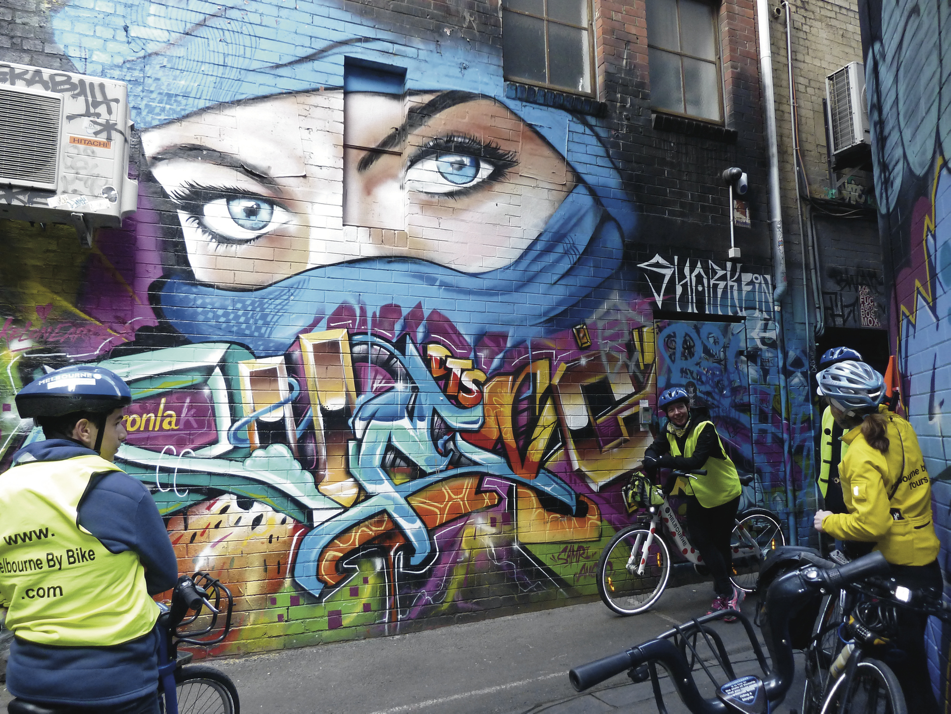 Mit Fahrrad und Helm ausgestattet sehen Sie diverse Stadtteile, die bekannt sind für Sportevents, gutes Essen und Kaffee, wie zum Beispiel die Lanes und Arcades (Gassen und Arkaden) mit den vielen bunten Graffittis, die teilweise täglich wechseln. Sie erfahren viel Wissenswertes über die Melbournians und die lebenswerteste Stadt der Welt. Die Tour eignet sich fantastisch, um einen Überblick über die Stadt zu erhalten. Die Tour endet um 14.00 Uhr.