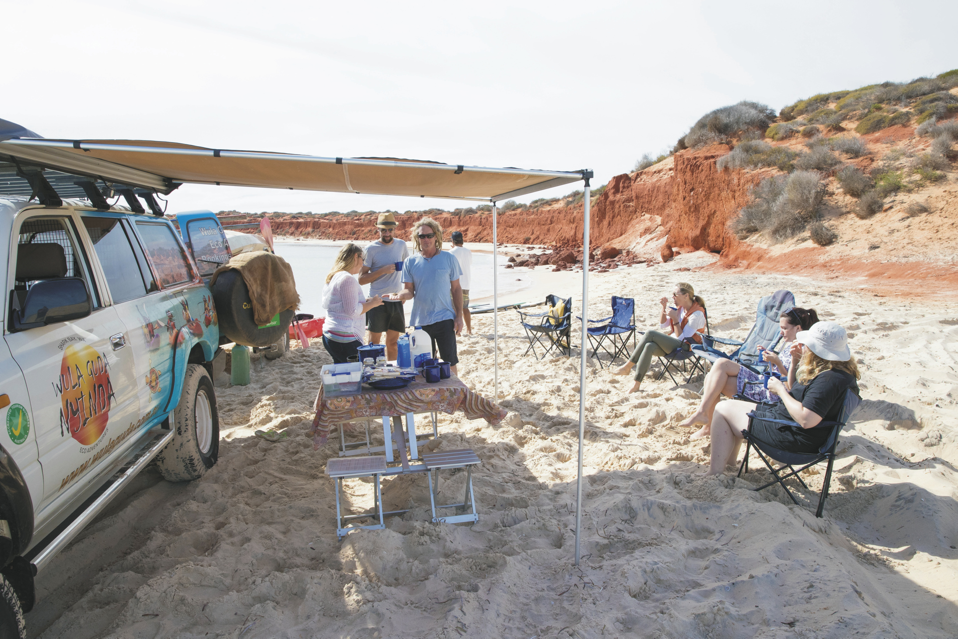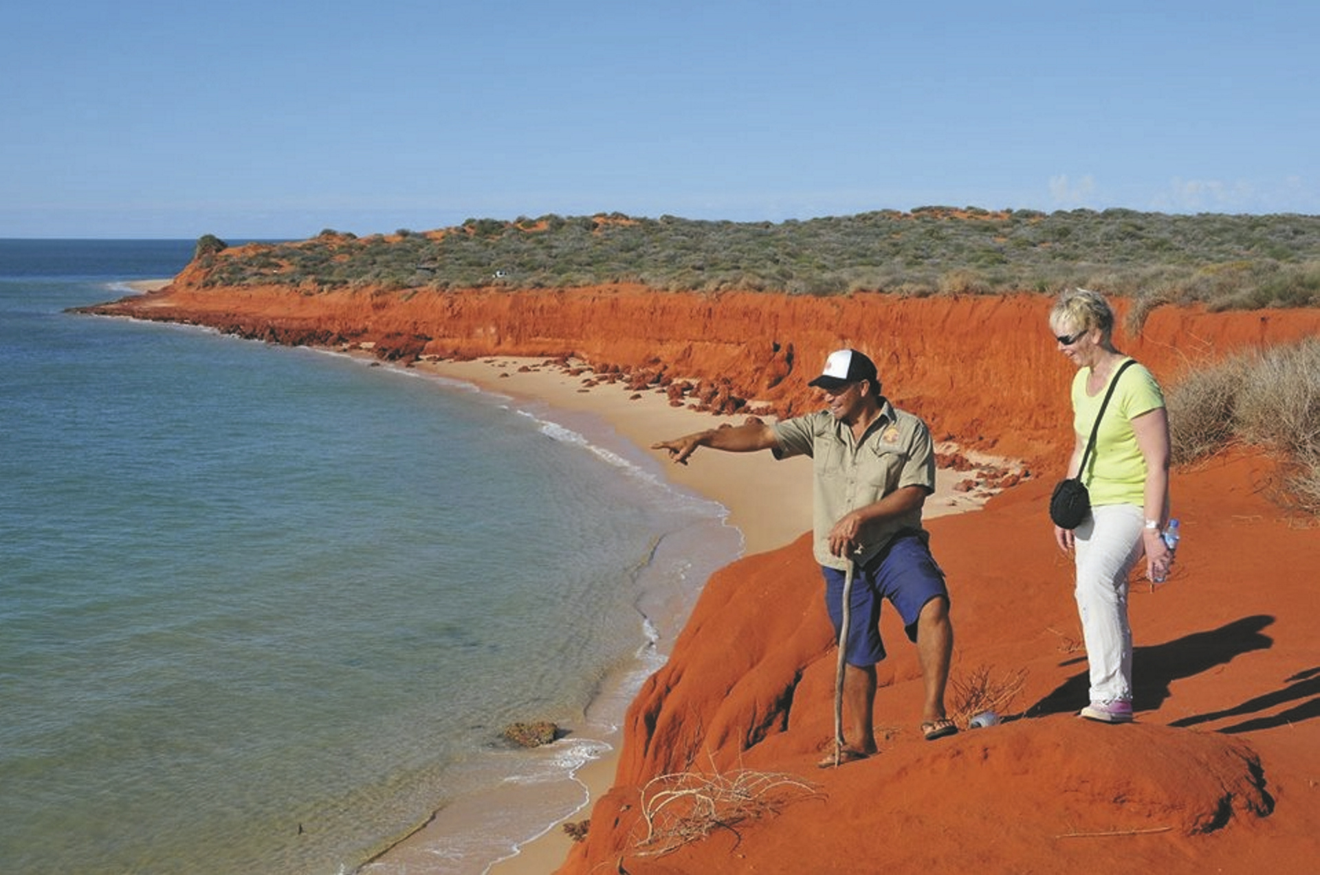 Ihr Aborigine-Guide lässt Sie in die Aborigines-Kultur eintauchen. Roter Wüstensand, türkisfarbenes Wasser - ein Weltnaturerbe. Skipjack Point und Point Peron bieten fantastische Ausblicke. Sie suchen nach Schildkröten, Haien, Dugongs, Mantas, Thorny Devils, Echidnas, Kängurus, Schlangen und anderen Tieren. Hier und da bieten sich Gelegenheiten zum Schnorcheln und Schwimmen, wie auch ein Bad im natürlichen Whirlpool des Peron Homestead. Rückkehr gegen 16.30 Uhr.