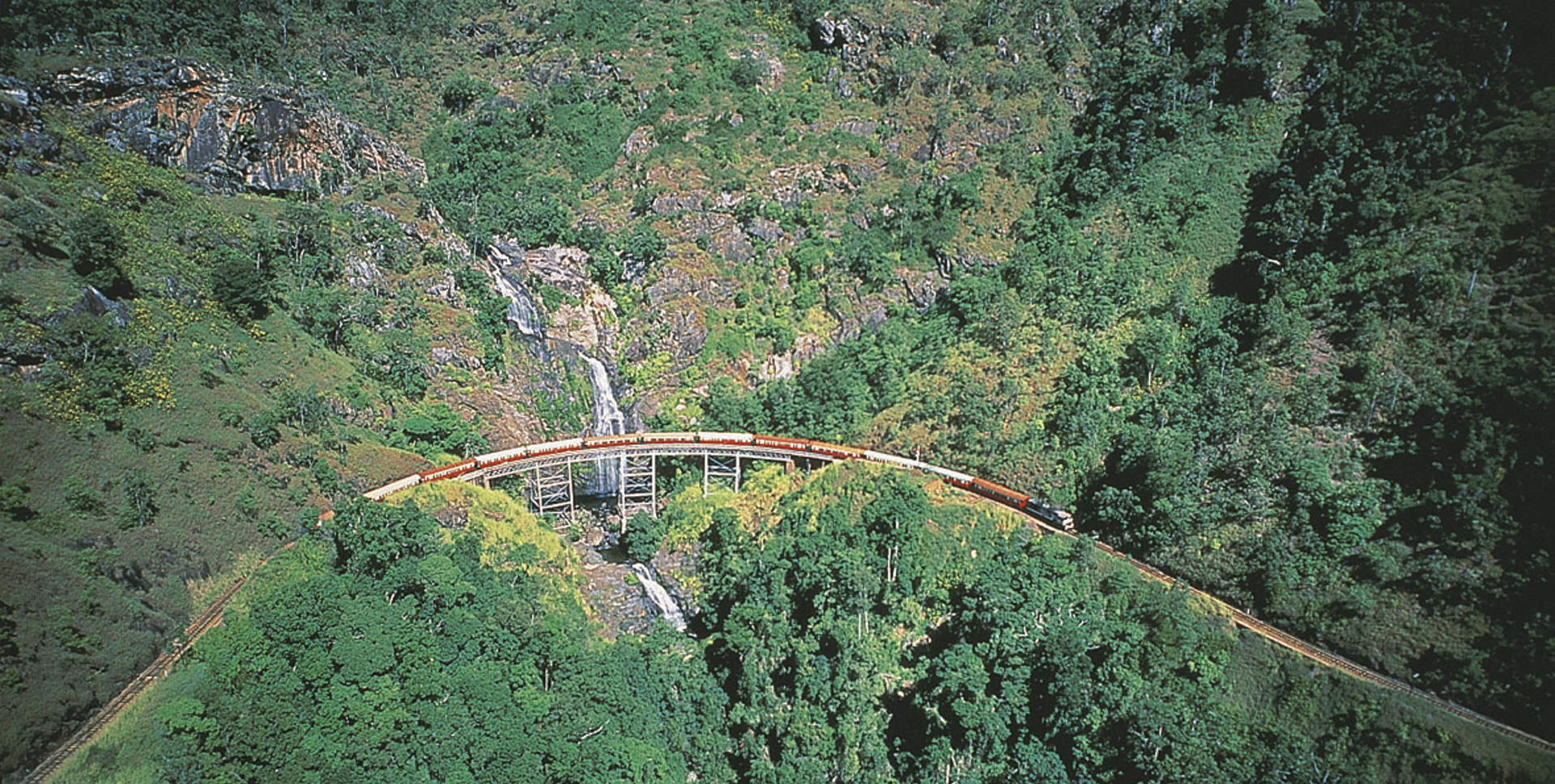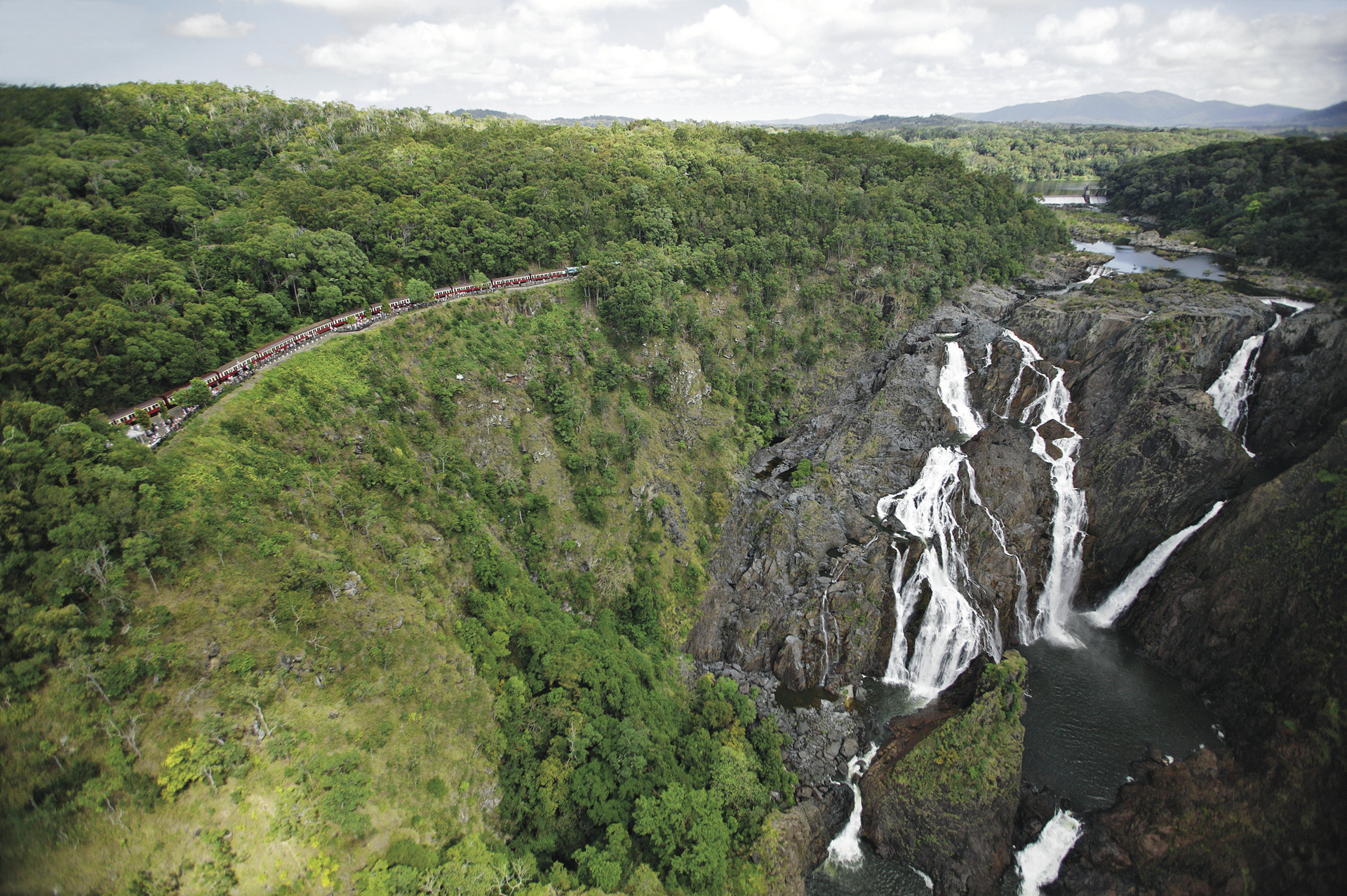 Transfer zum Zugbahnhof und Fahrt (1,5-Std.) mit dem historischen Zug in das Bergdorf. In Kuranda haben Sie freie Zeit. Später Gondelbahnfahrt zurück nach Smithfield (1,5-Std.) und Transfer zu Ihrem Hotel nach Cairns. Alternativ zuerst Gondelbahnfahrt und Zugrückfahrt. Wählen Sie die Uhrzeiten, die für Sie am besten passen.