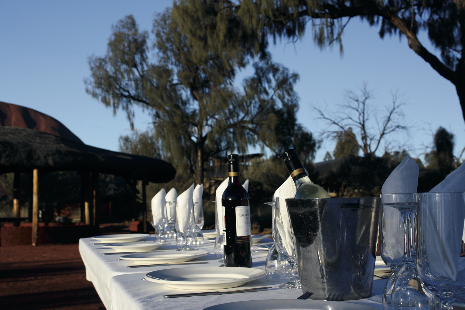 Genießen Sie bei einem Glas Wein den Sonnenuntergang über Uluru (Ayers Rock) und erleben Sie das berühmte Farbspiel. Im Anschluss werden Sie zu Ihrem stilvollen Abendessen unter freiem Himmel direkt am Fuße des Uluru (Ayers Rock) gebracht, um in einmaliger Atmosphäre einen Abend in der Wüste zu erleben. Sie sehen die wichtigsten Sternbilder (wetterabhängig) und erfahren deren Bedeutung. Später Rückkehr zum Ayers Rock Resort.