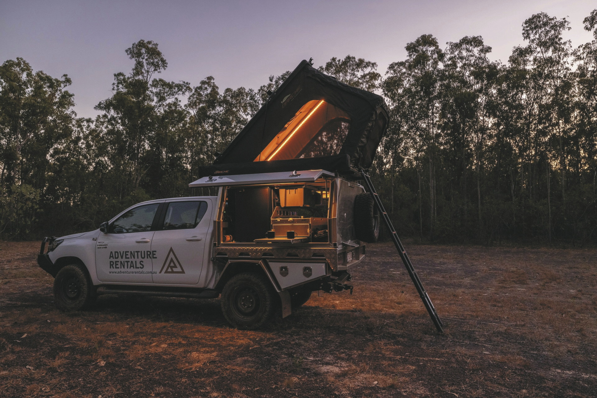 Das neueste 4WD Camper-Modell von Adventure Rentals basiert auf dem zuverlässigen Toyota Hilux und ist dank seiner umfangreichen Ausstattung und dem großzügigem Stauraum der ideale Begleiter für jegliche Campingreisen auch abseits geteerter Straßen. In der Version mit einem Dachzelt ideal für 2, maximal für 5 Personen.