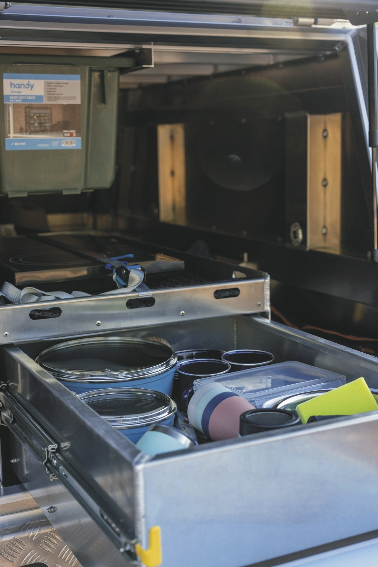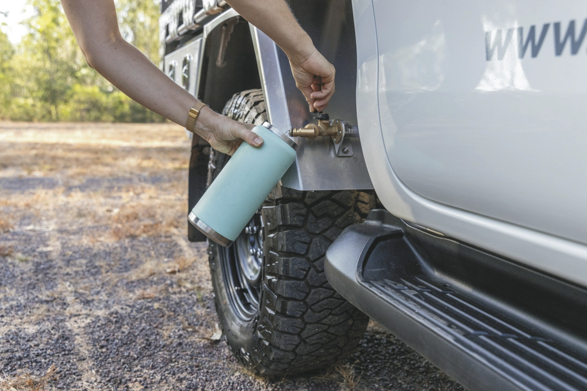 • 40 l Frischwassertank (kein Abwassertank) und zusätzlich 27 l Wasserkanister