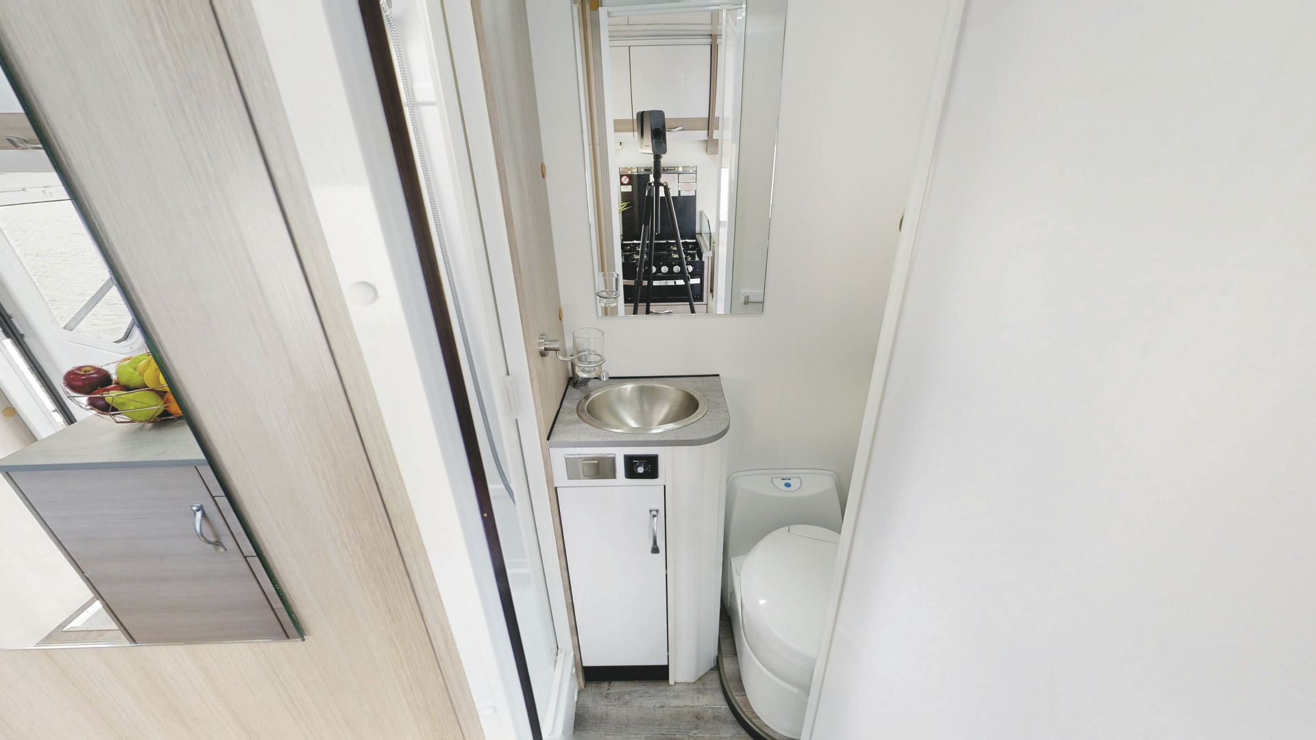 • großer Kühlschrank mit Gefrierfach (190 l; Gas, 240 V und 12 V)