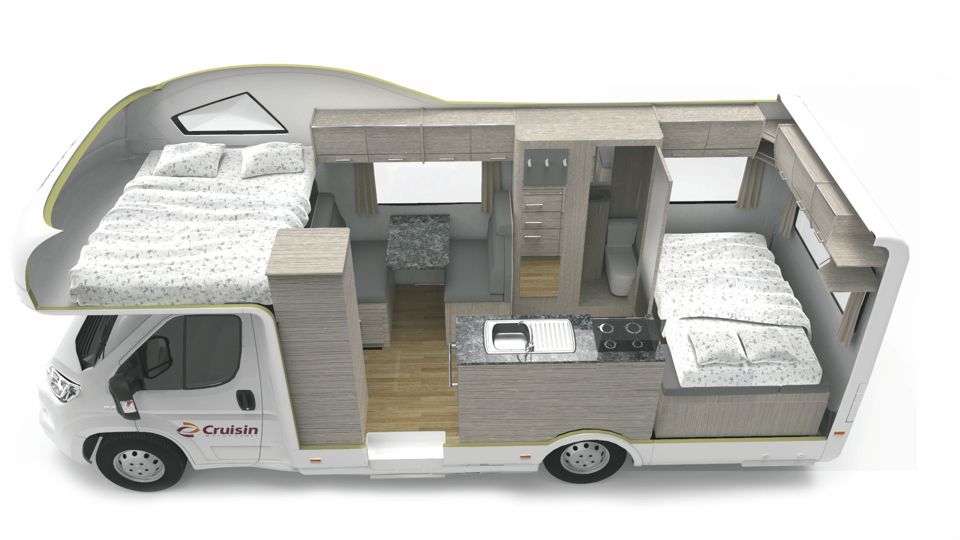 4 Personen Wohnmobil mit permanenten Betten im Heck und über der Fahrerkabine