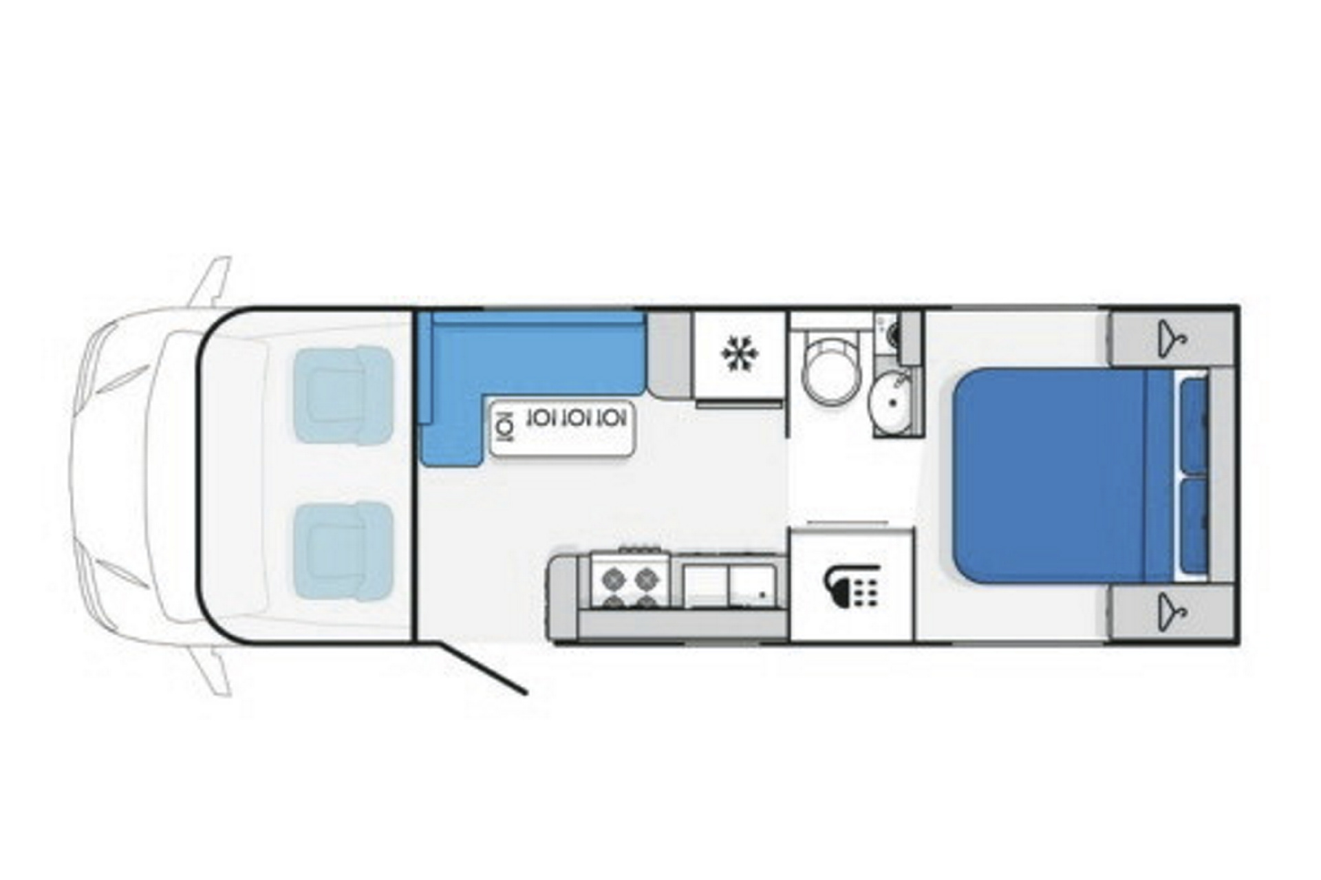 Das Ende 2023 neu in die Flotte gekommene Grandiose ist ideal für Paare, die einen luxuriösen Urlaub auf Rädern erleben wollen. Das Wohnmobil verfügt über großzügige Staumöglichkeiten, ein bequemes Inseldoppelbett im Heck sowie über ein Bad mit getrennter Dusche und Toilette.