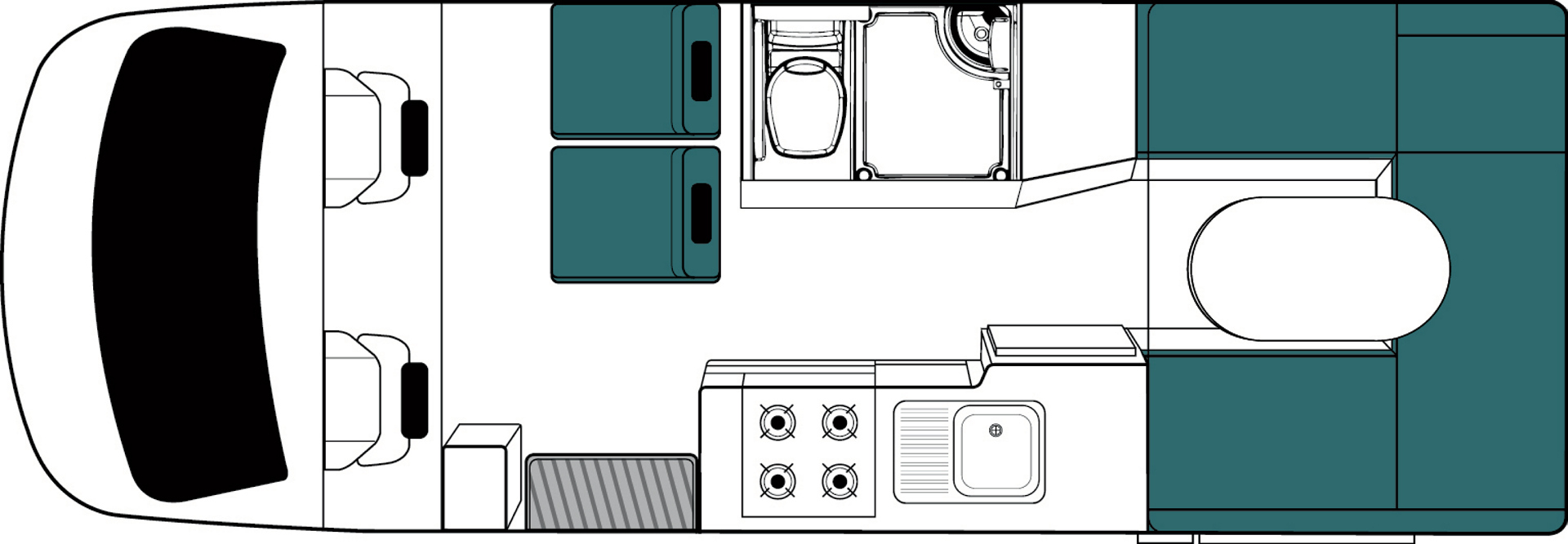 • 2 Sitzplätze im Wohnbereich hinter der Fahrerkabine