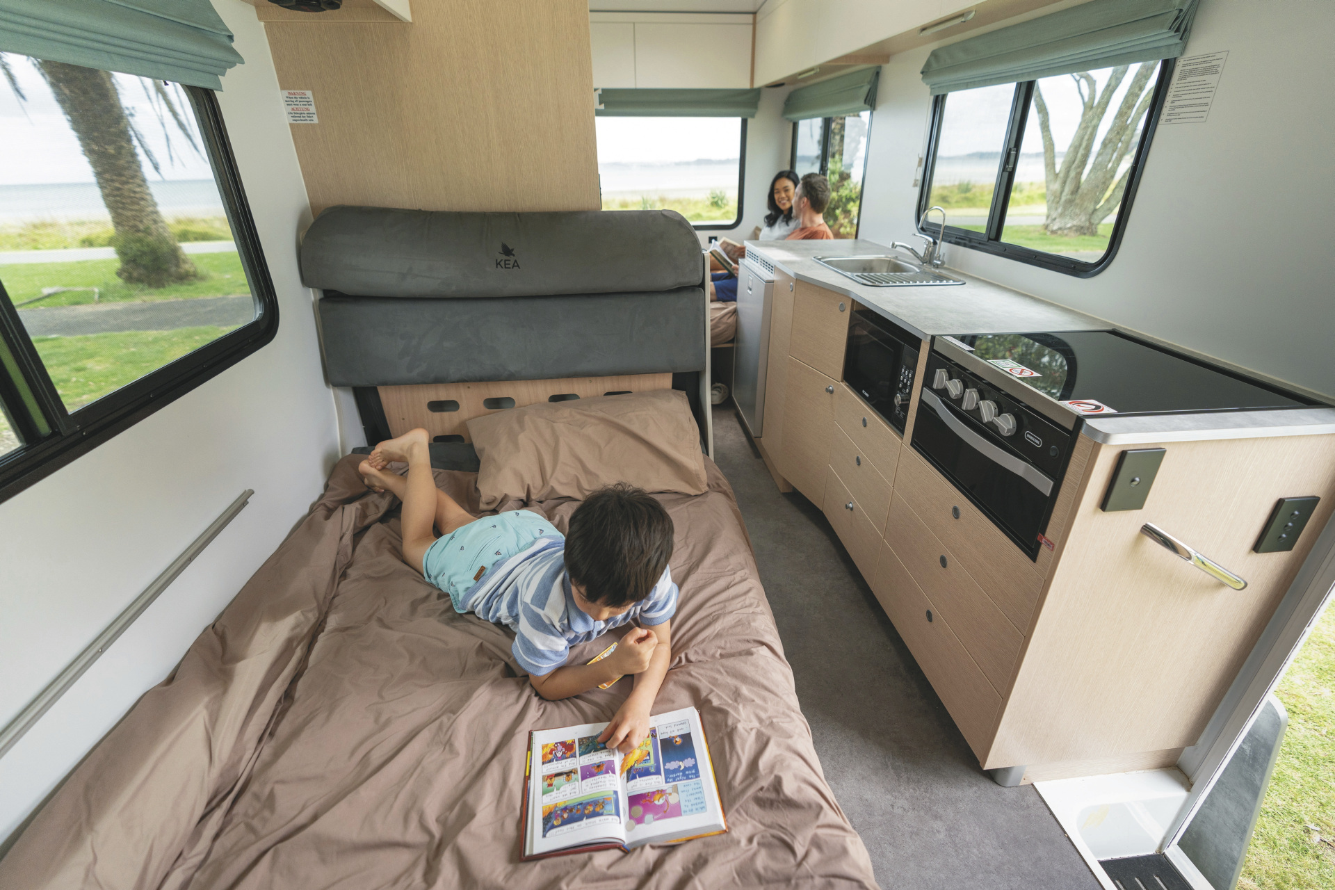 Das zweite 6-Bett-Wohnmobil in der Maui-Flotte. Gebaut in Neuseeland, etwas kompakter aber genau so komfortabel wie das in Australien produzierte Modell Maui River. Und ebenfalls ausgestattet mit zwei Sitzgruppen und drei Doppelbetten - maximal für 4 Erwachsene und 2 Kinder.
