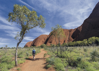 Vorbei an rotleuchtenden Sanddünen Fahrt zum Uluru-Kata Tjuta Nationalpark. Sie erkunden die Steinkuppeln von Kata-Tjuta (Olgas) bei einer 1-2 stündigen Wanderung durch das Valley of Winds (gute Fitness erforderlich). Anschließend Fahrt zum Uluru zum Sonnenuntergang mit einem Glas Sekt.