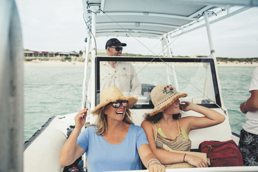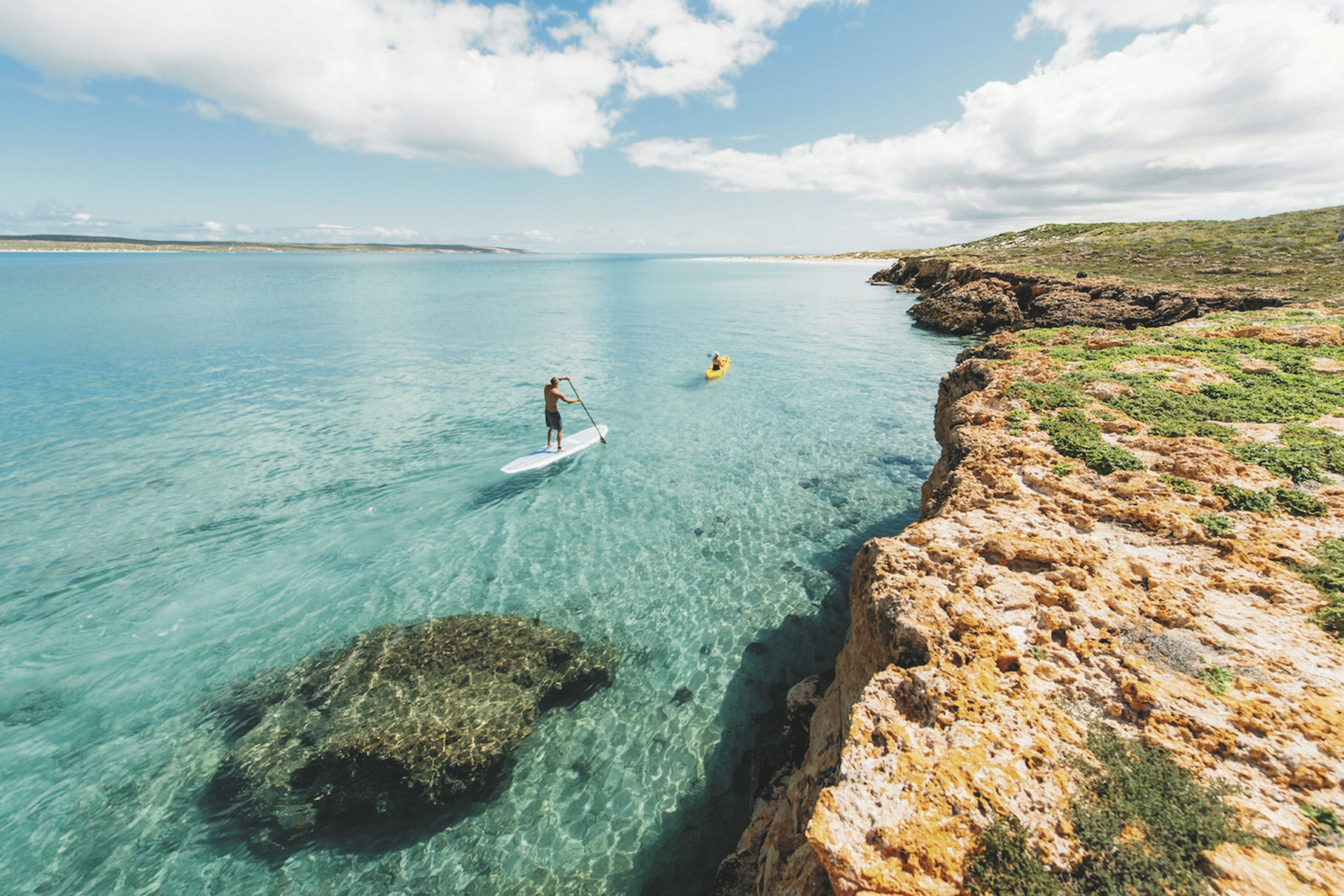 Denham Jetty - Dirk Hartog Island (Start: 9.30 Uhr bzw. 10.30 Uhr; A).Bootsüberfahrt zur Insel und Transfer zur Eco Lodge, am Strand der Homestead Bay gelegen, abseits jeglicher Zivilisation. Kajaks und Stand Up Paddle Boards stehen zur Verfügung. Relaxen Sie in der Lodge oder am Strand, unternehmen Sie Strandspaziergänge oder erkunden Sie die Shark Bay. Die Shark Bay ist für die Großen 5 bekannt: Dugong, Delfine, Wale, Mantas und Tigerhaie. Erleben Sie die Shark Bay beim Schwimmen und Schnorcheln.