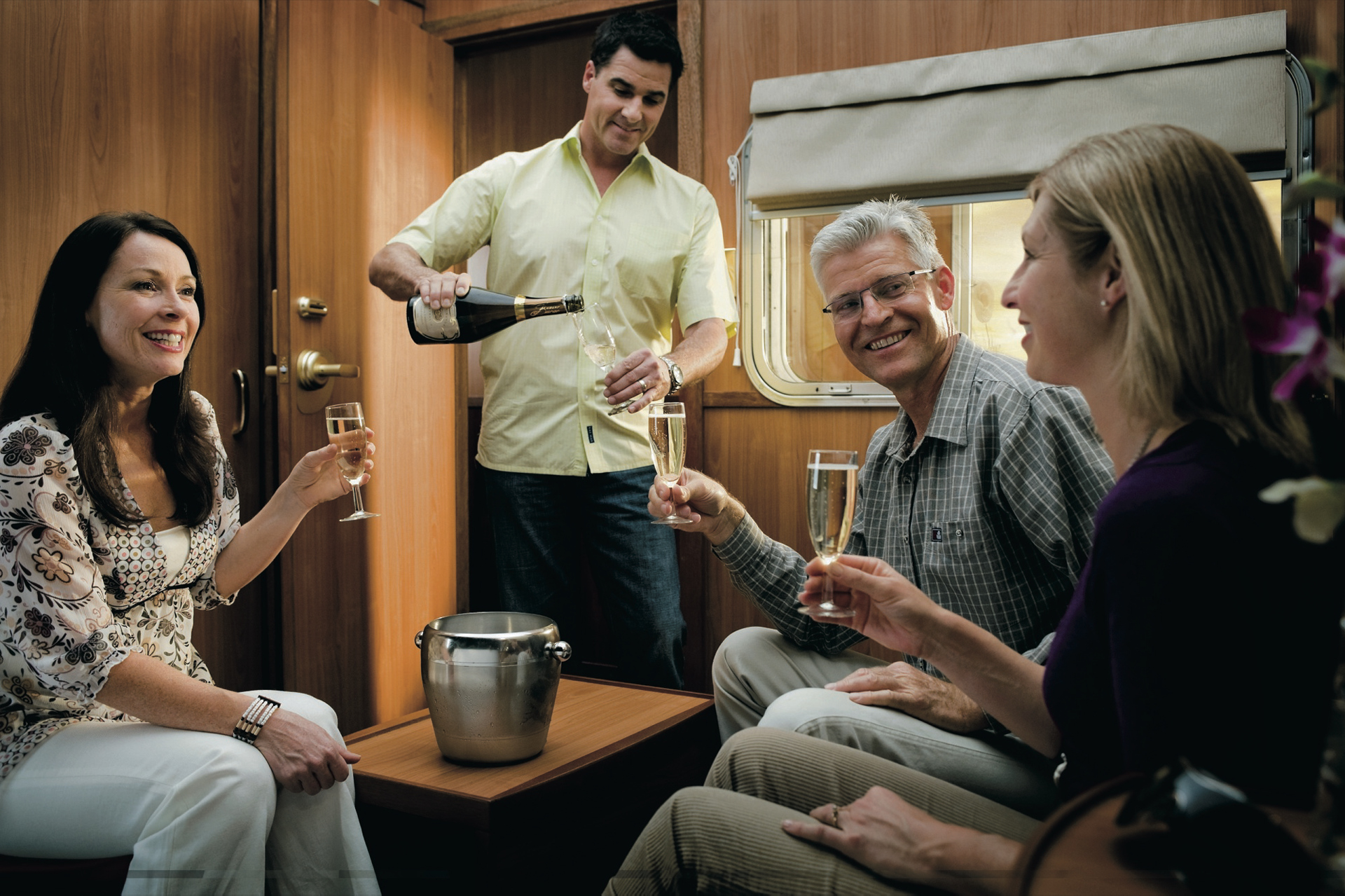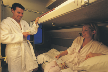 Gold: Zweibett-Kabine mit Dusche/WC & Einzelkabinen mit sanitären Gemeinschaftseinrichtungen pro Wagon; Kabinenservice, Lounge- & Restaurantwagen 1. Klasse.