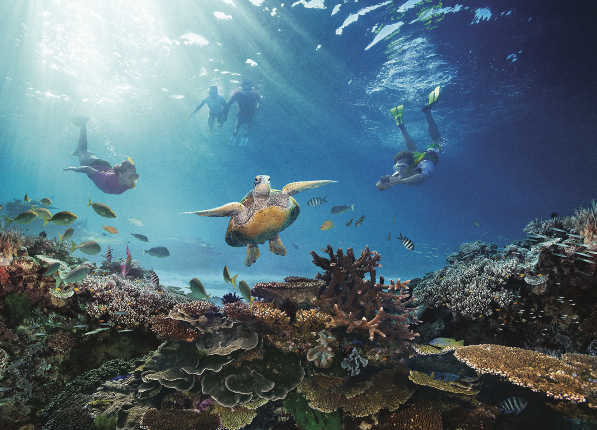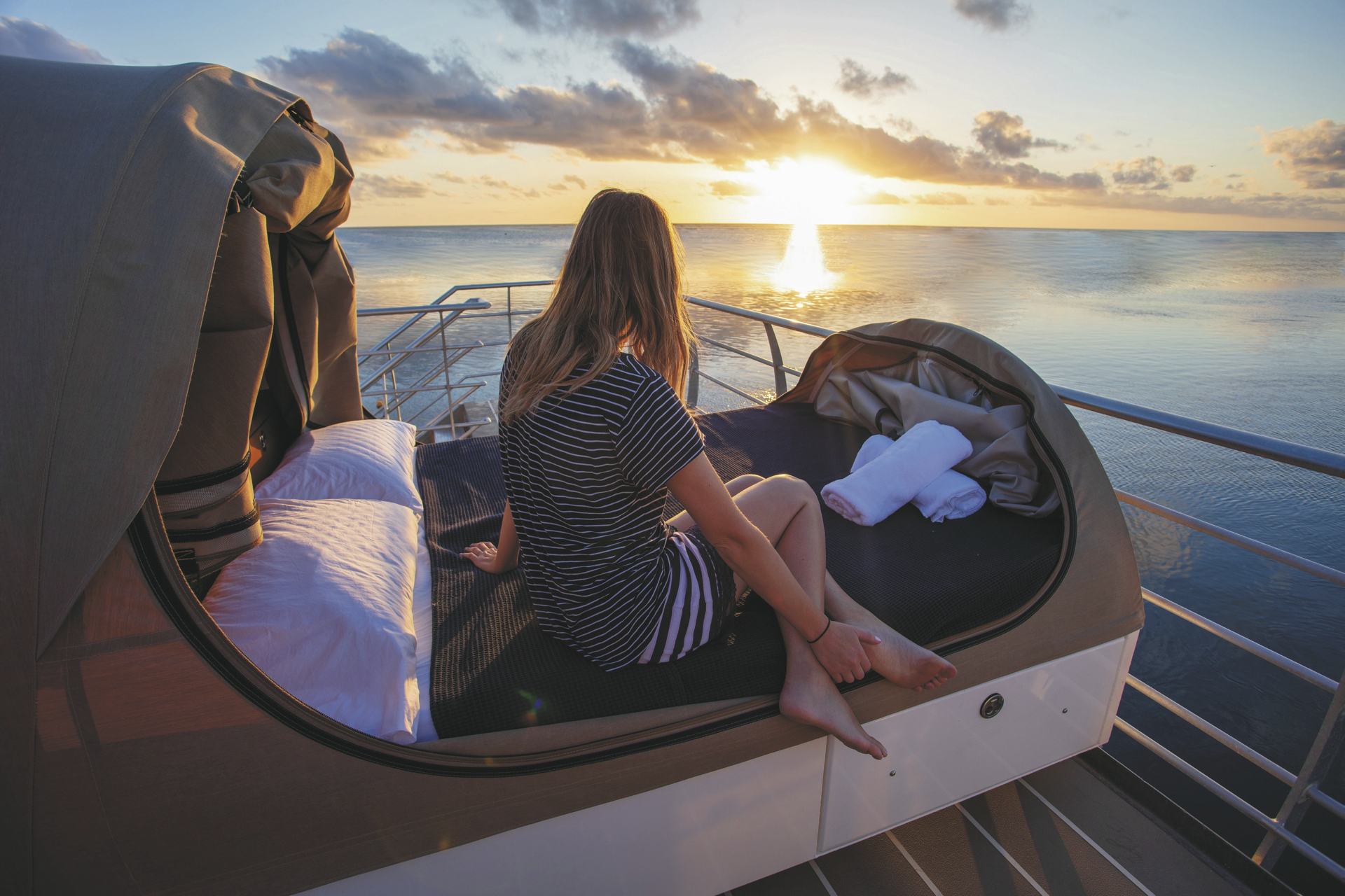 Sie erwachen mit Blick auf das Riff. Nutzen Sie die Gelegenheit das Riff fast alleine zu erkunden, bevor die Tagesgäste ankommen. Freier Zugang zum Unterwasser-Observatorium und Sonnendeck. Machen Sie einen Helikopterrundflug zum Heart Reef und nutzen Sie die Annehmlichkeiten der Riffplattform.
