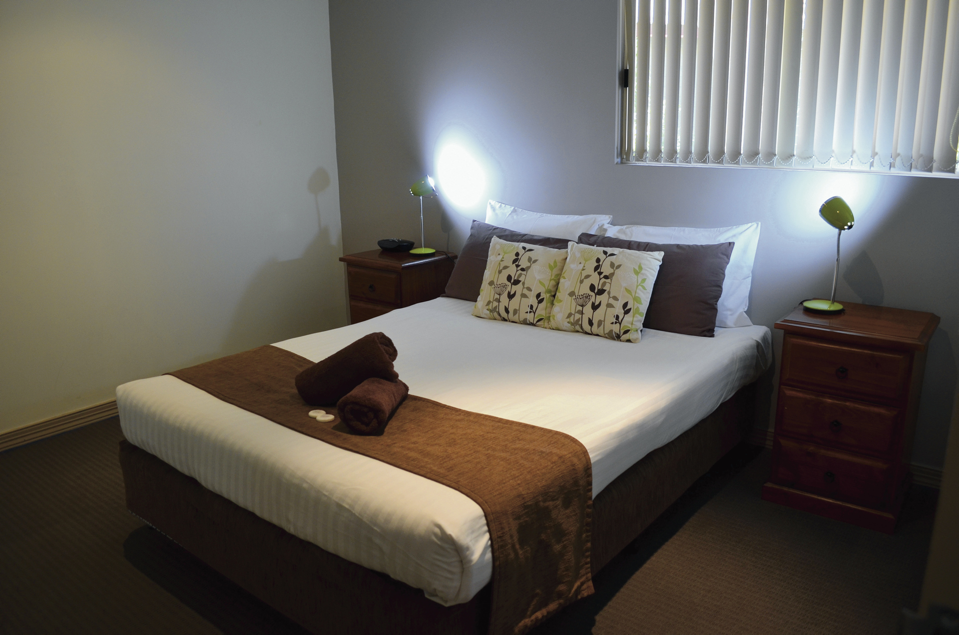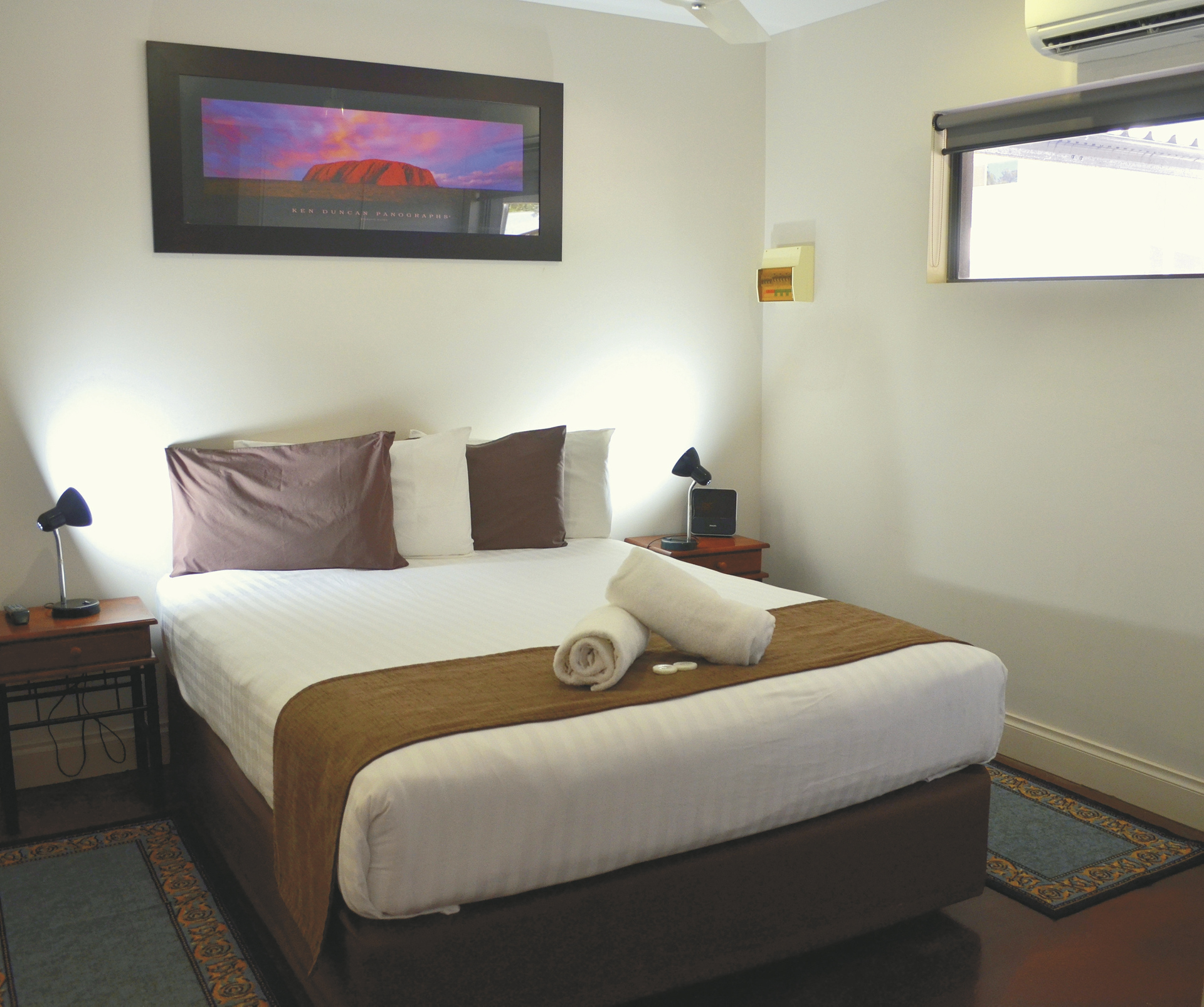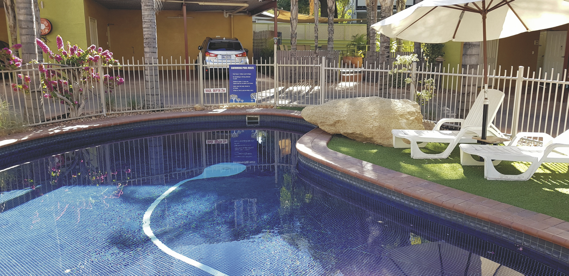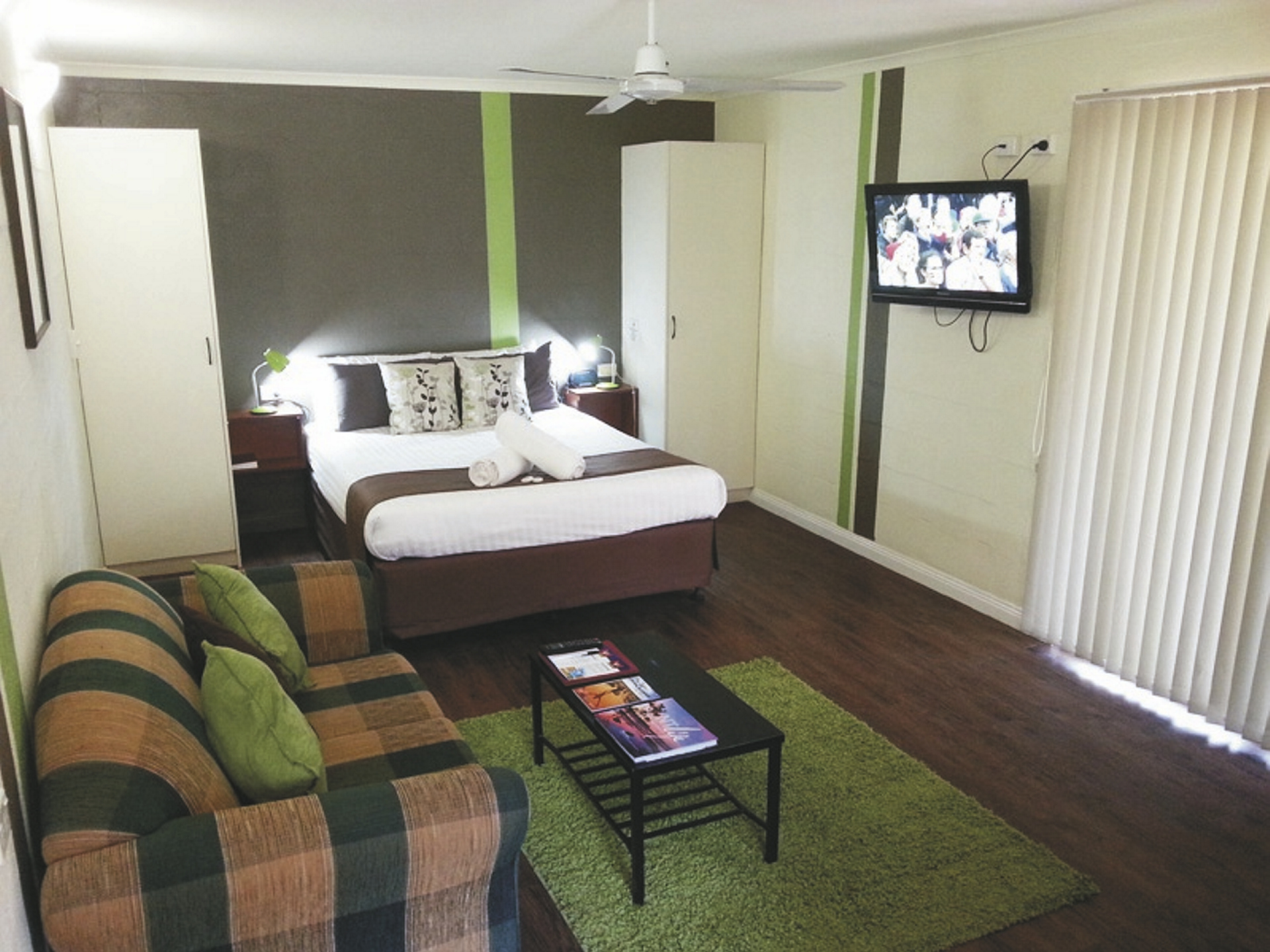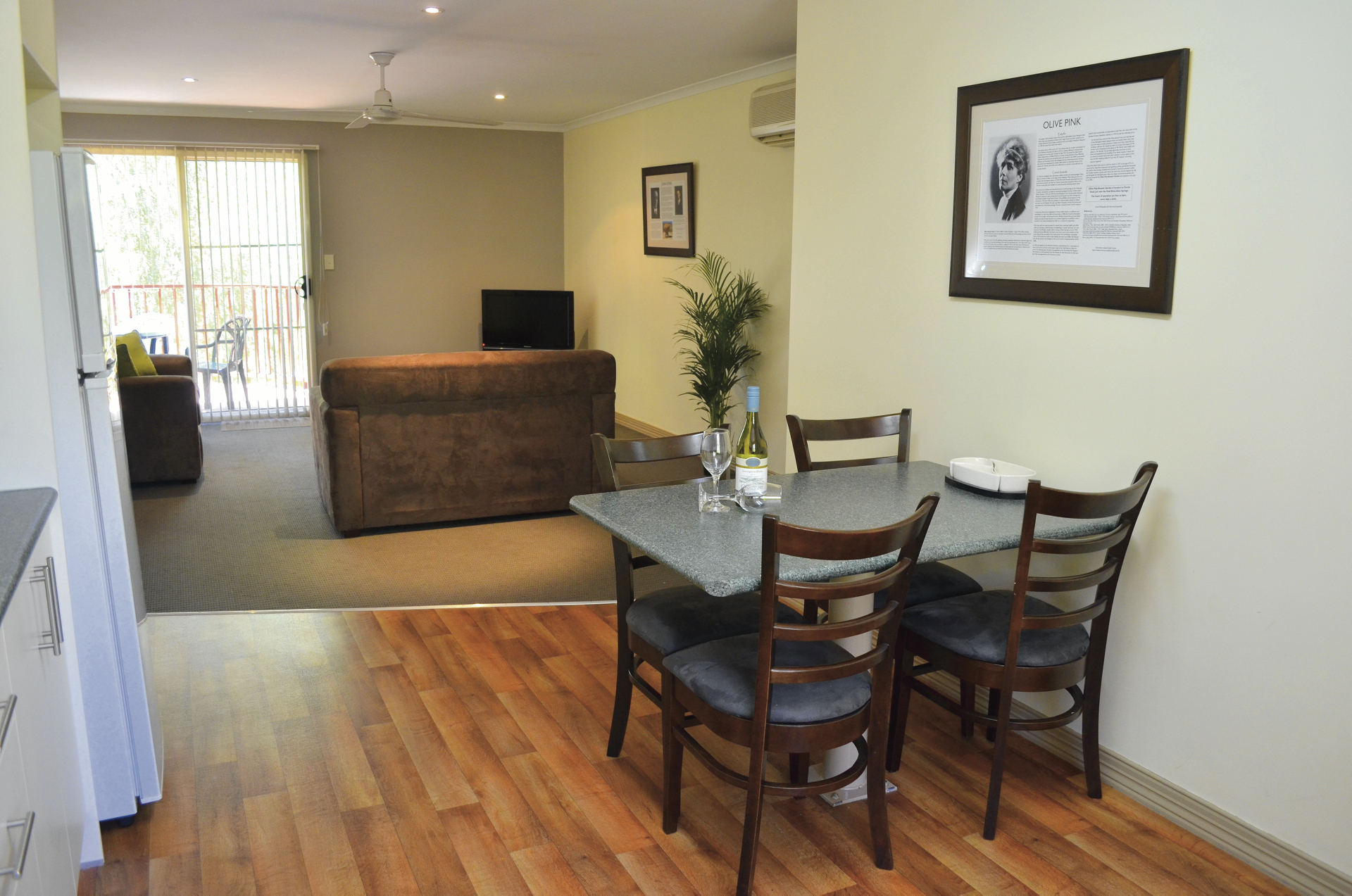 Preiswerte Studios und Apartments am Rand des Outback-Städtchens Alice Springs, mit Blick auf den Todd River.