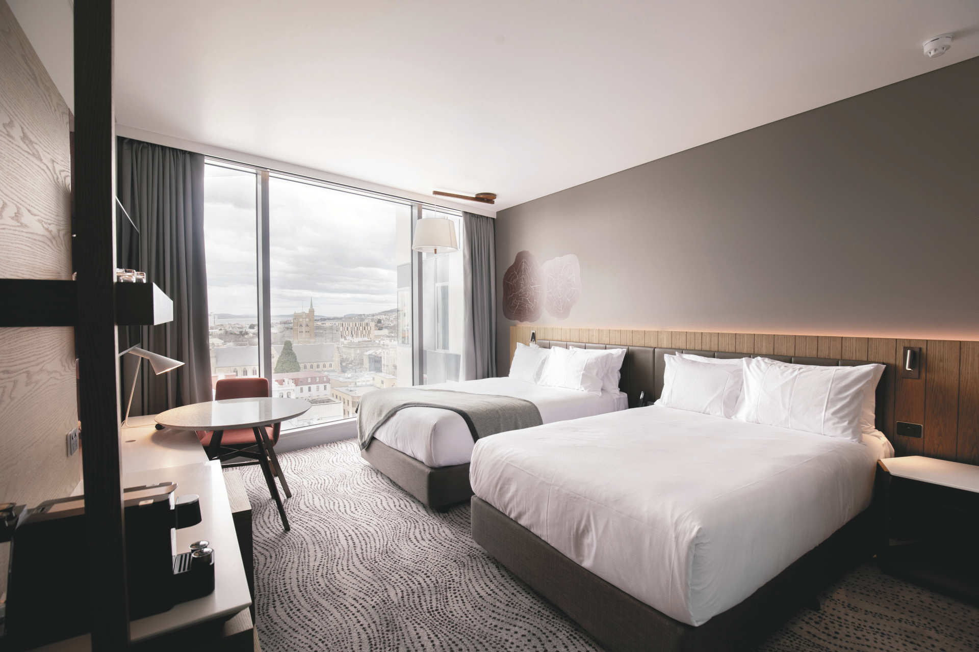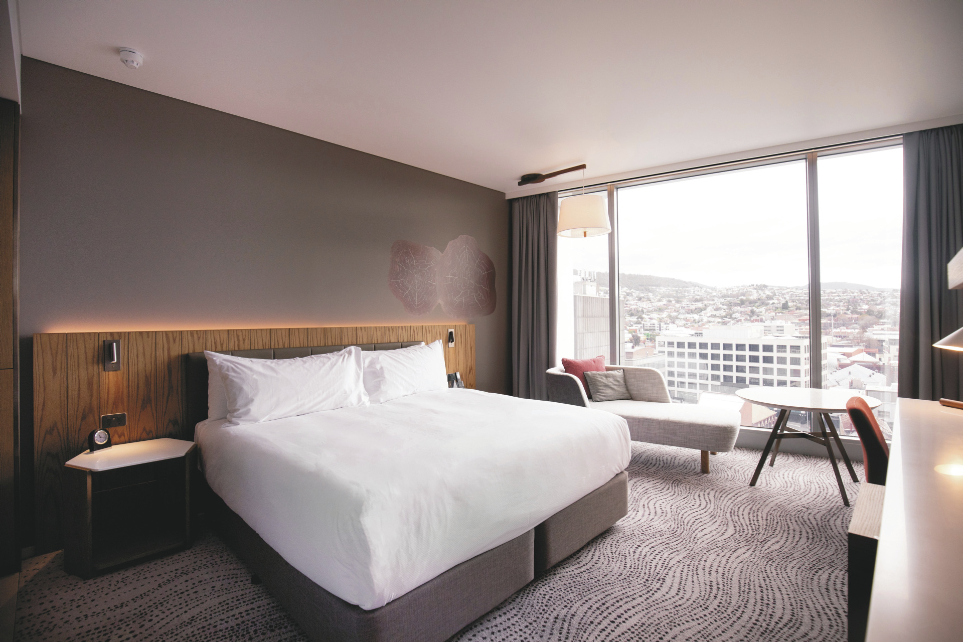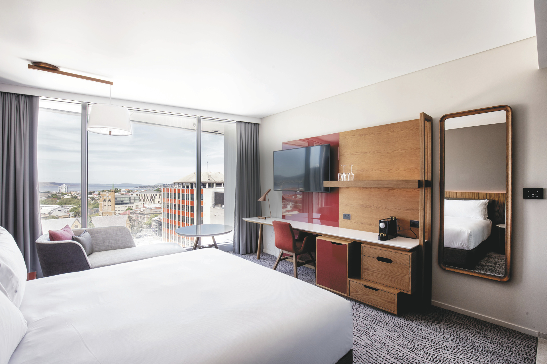 Das moderne Hotel mit einem eleganten Innendesign empfängt die Gäste in einer großzügigen Lobby und bietet u.a. eine 24-Stunden-Rezeption, Zimmerservice, eine Terrasse mit Blick auf den Mt. Wellington, einen Fitnessraum und kostenfreies WLAN. Den Tag ausklingen lassen können Sie bei einem Drink oder einem legeren Essen im The Deck oder im Core Restaurant and Bar (beide in der 4. Etage) oder in der Aura Lounge and Bar im obersten Stock mit tollem Blick auf die Stadt.