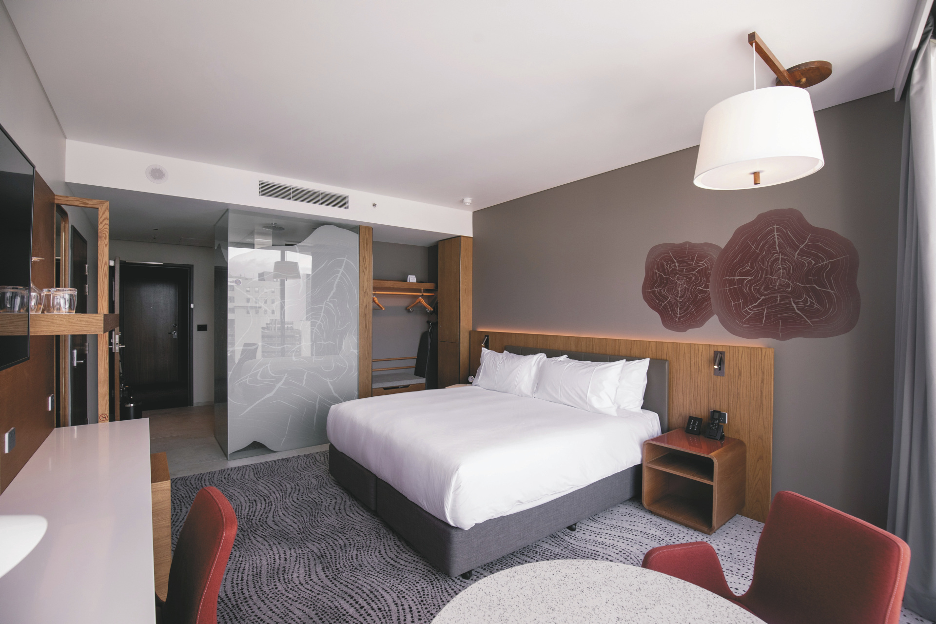 235 geräumige Zimmer auf den Etagen 5 - 11, mit bodentiefen Fenstern und Blick auf die Stadt und den Hafen. Alle komfortabel ausgestattet u.a. mit Heizung/Klimaanlage, Bad mit Dusche, Fön, Sitzgelegenheit, Zimmersafe, Minibar und Tee-/Kaffeekochgelegenheit. Für Gäste der Club-Zimmer gibt es eine exklusive Club-Lounge.