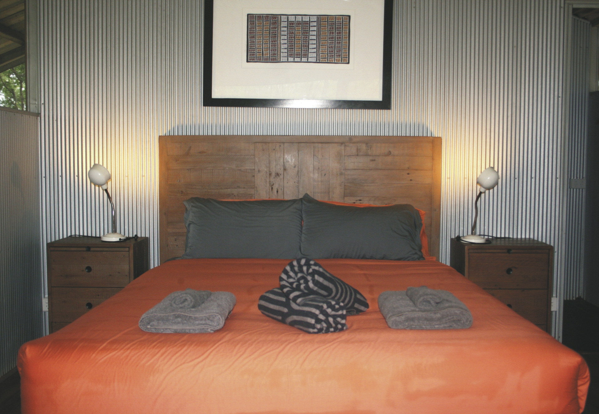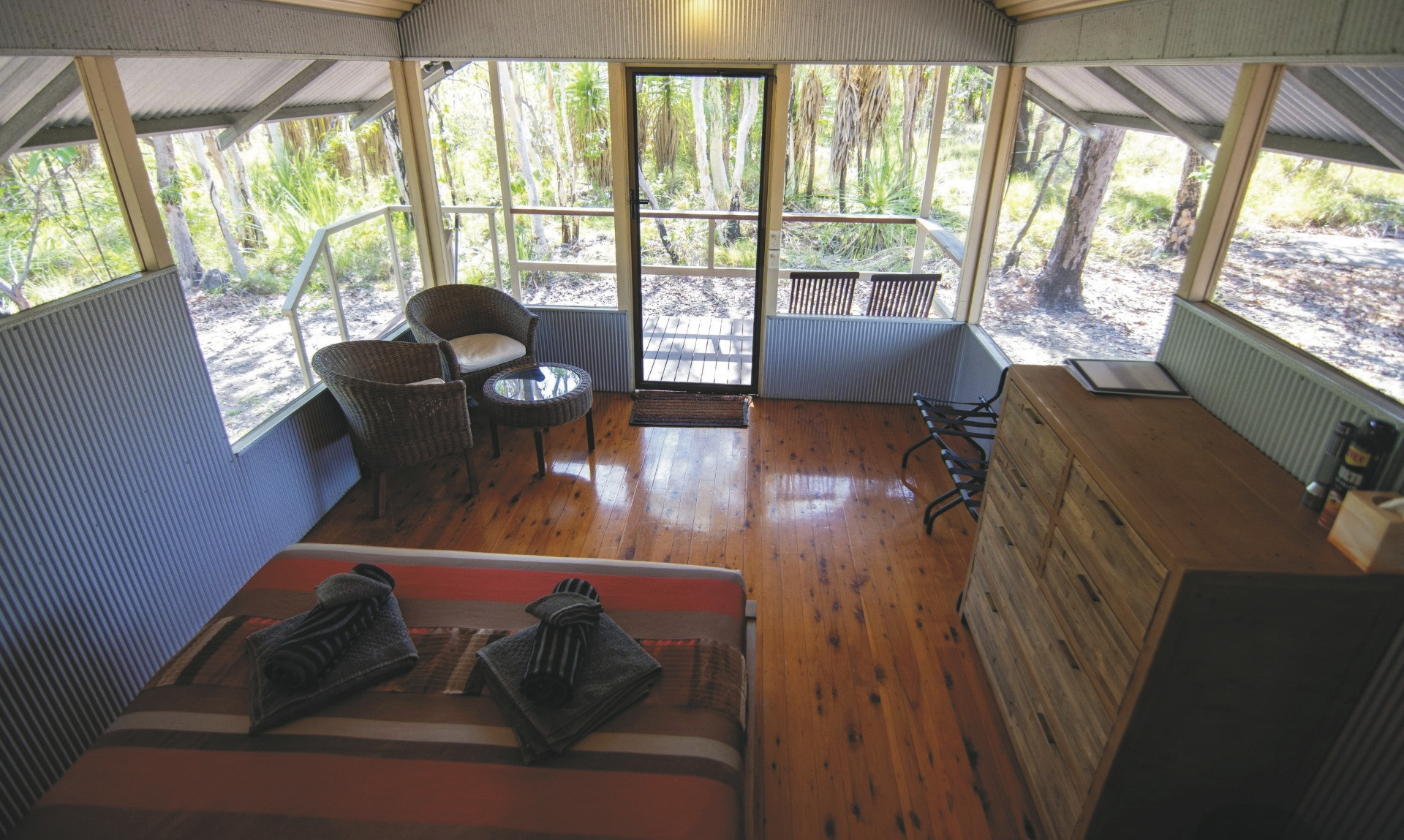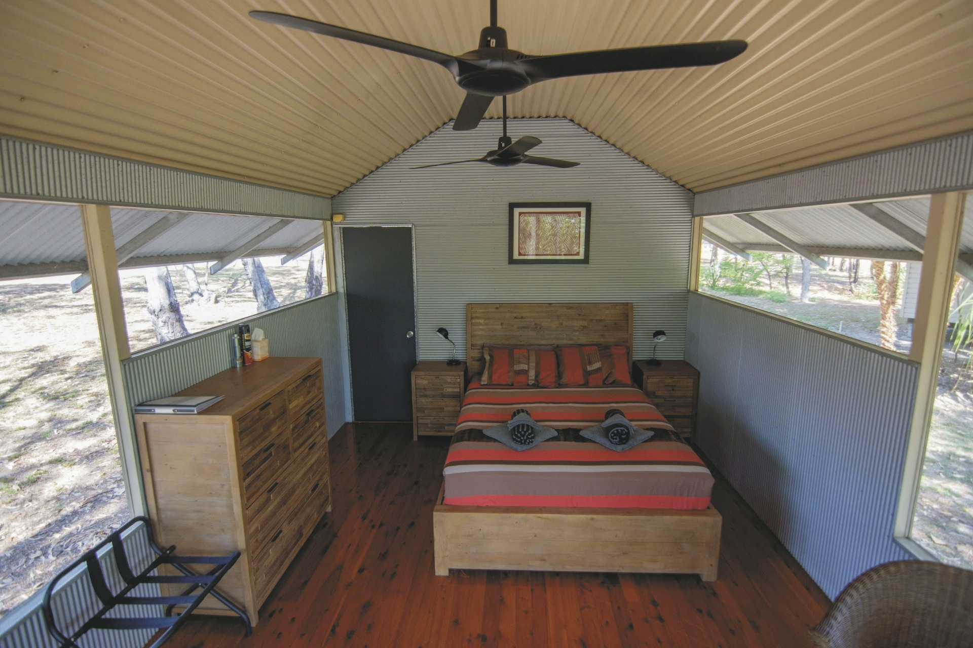 20 moderne Cabins in einem Halbkreis um das Haupthaus. Alle mit festem Holzfußboden, Dusche/WC, Stromanschluss und großflächigen Moskitonetzen an Vorderfront und Seitenwänden. Standard Cabins verfügen über zwei Einzelbetten, die etwas größeren Deluxe Cabins über ein Doppelbett sowie Stühle, Tisch und Kommode.