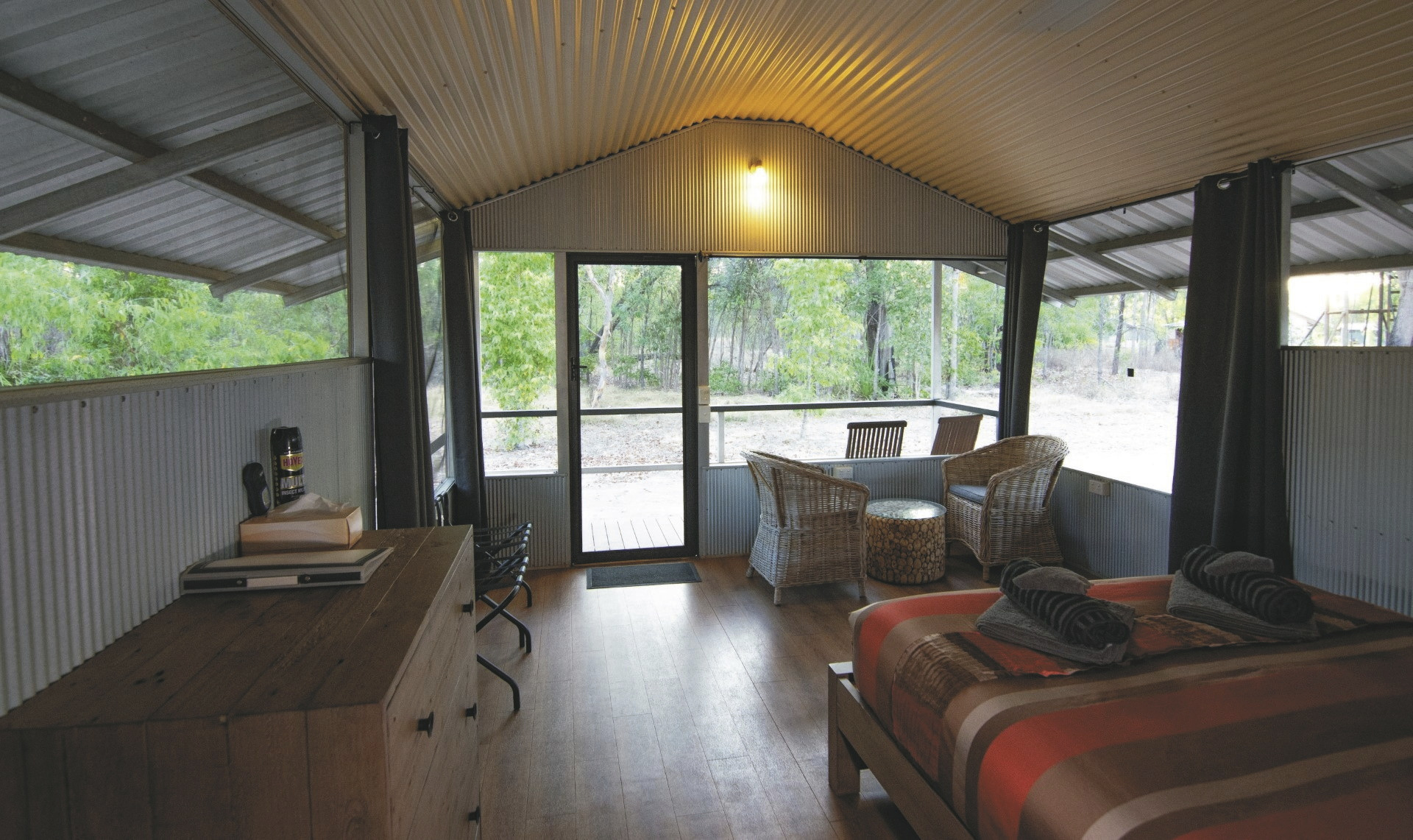 Mount Borradaile ist eine heilige Stätte der Aborigines. Die Lodge liegt in einem riesigen, exklusiv gepachteten Gebiet und ist von zerklüfteten Gebirgsketten, idyllischen Billabongs, Paperbark-Sümpfen und Monsunregenwäldern sowie der weltweit größten Sammlung großartiger, uralter Felszeichnungen, Besiedlungs- und Begräbnisstätten umgeben.Von der eigenen Landepiste werden die Gäste in betagten Geländewagen zum Camp gebracht. Das luftige Haupthaus beherbergt die Küche, eine Lounge mit kleiner Bibliothek, die Bar und das Restaurant. Gleich daneben liegt der einladende Pool. Eine große Auswahl an Aktivitäten, von Billabong-Bootsfahrten und 4WD-Abenteuern bis hin zum Besuch der weltberühmten Arnhemland-Felskunstgalerien, ist inbegriffen.